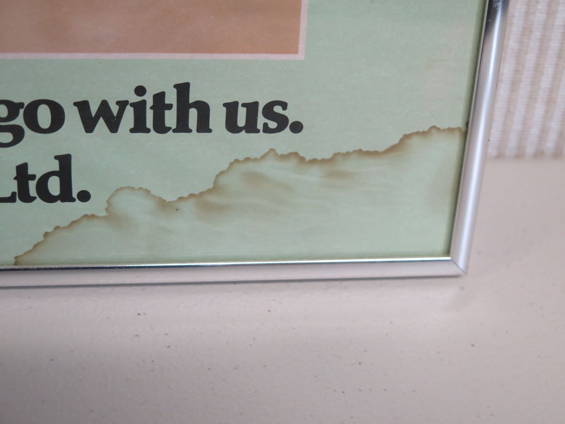 Jet-Away Hawaii Print, Framed 15"x23" (water damage)