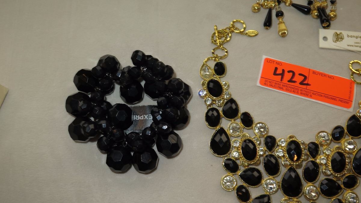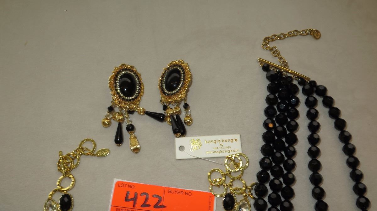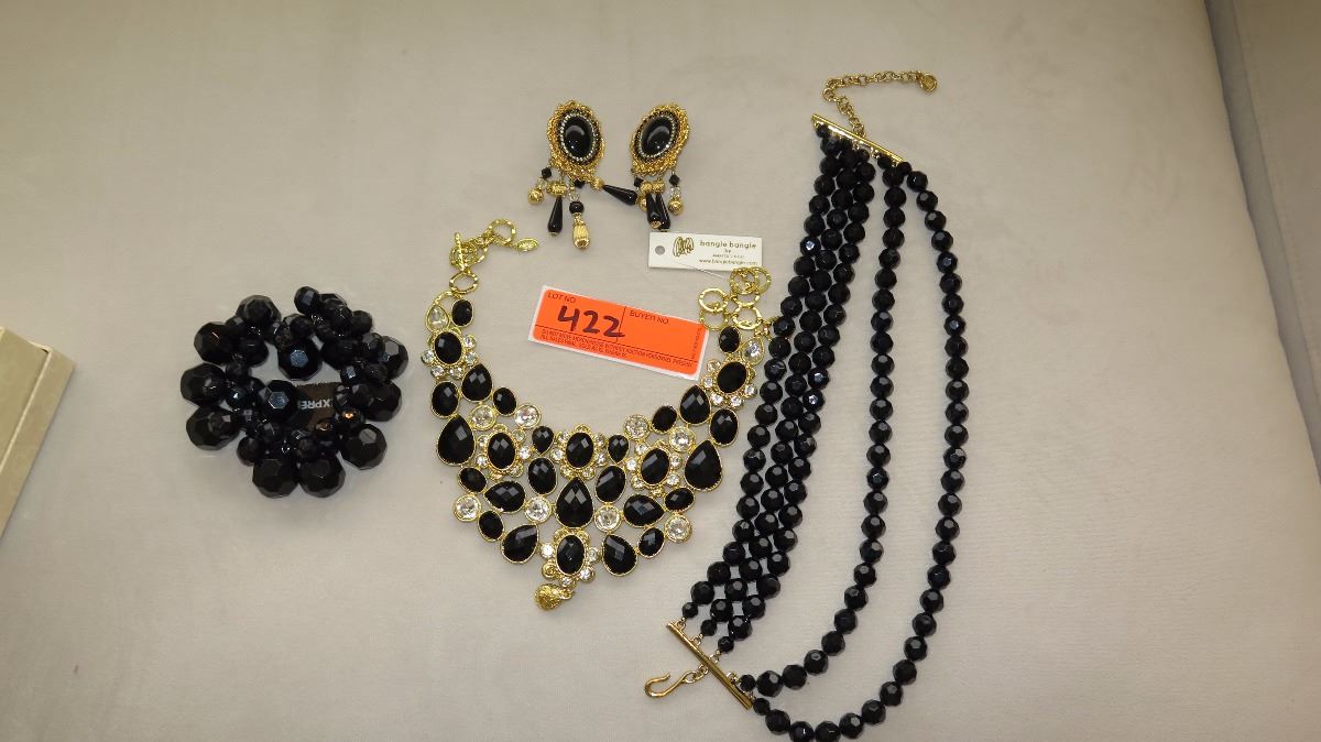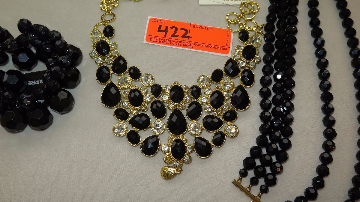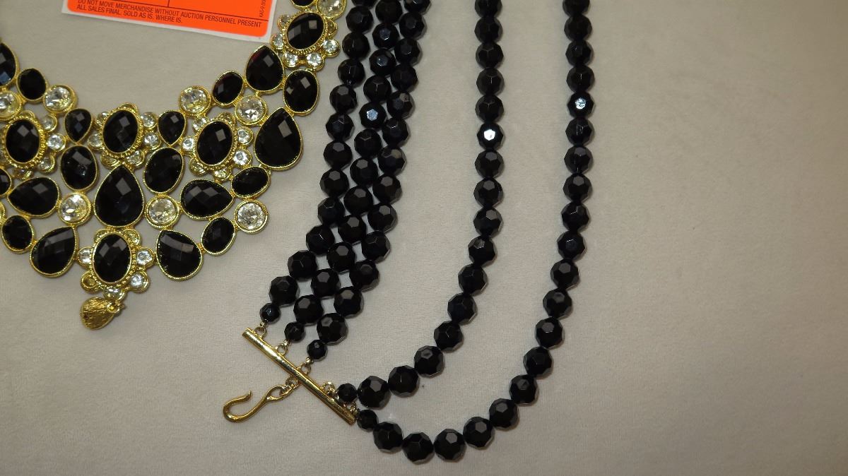 Jewelry: 2 Gold Tone Black-Bead Multi-Tiered Drape Necklaces, Black Bead Bracelet, Earrings
