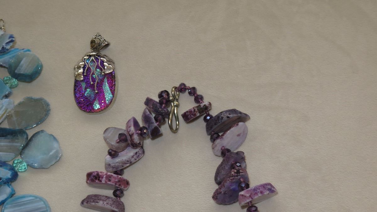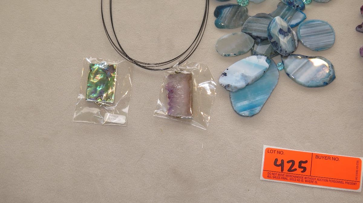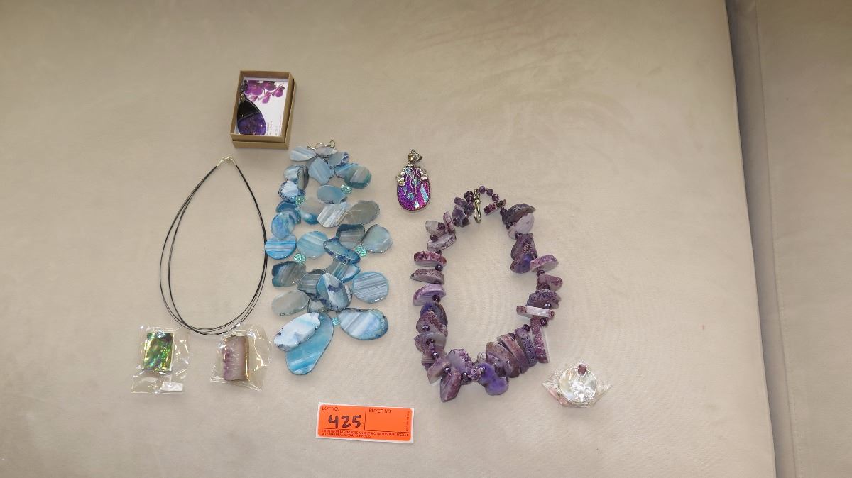 Jewelry: 2 Natural Polished Stone Necklaces, Rope Chain, Amethyst Pendant & 3 Misc. Pendants