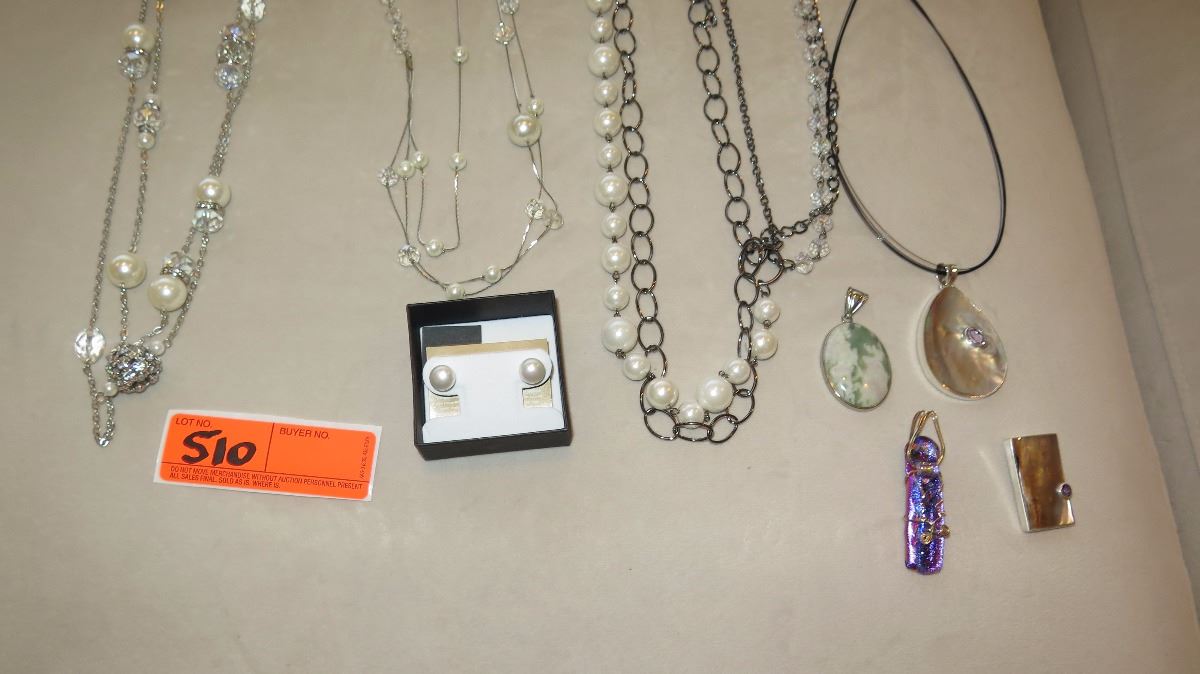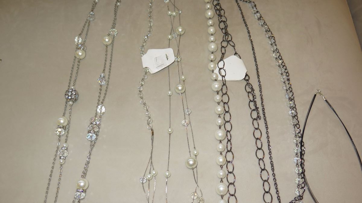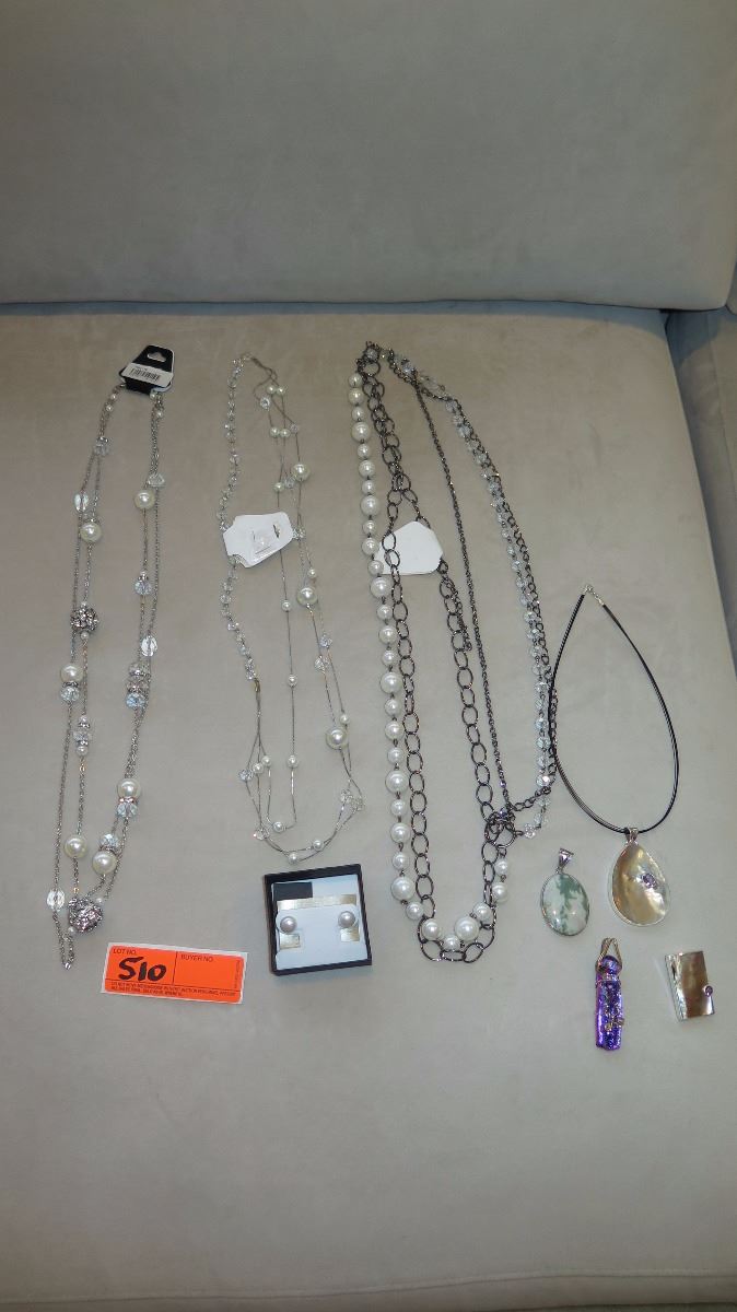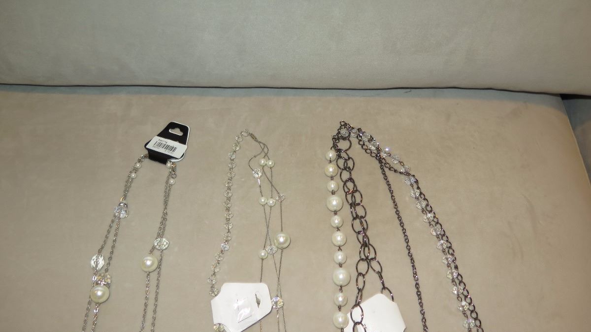 Jewelry: 3 Misc. Pearl/Bead Necklaces, Rope Chain w/4 Pendants