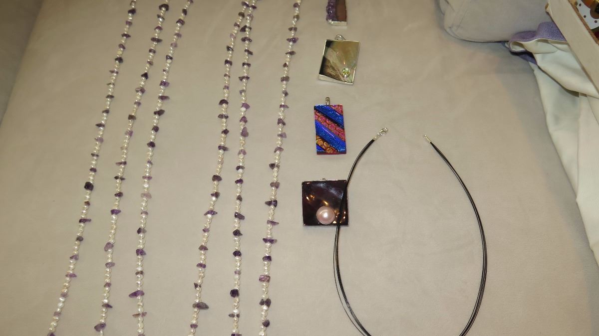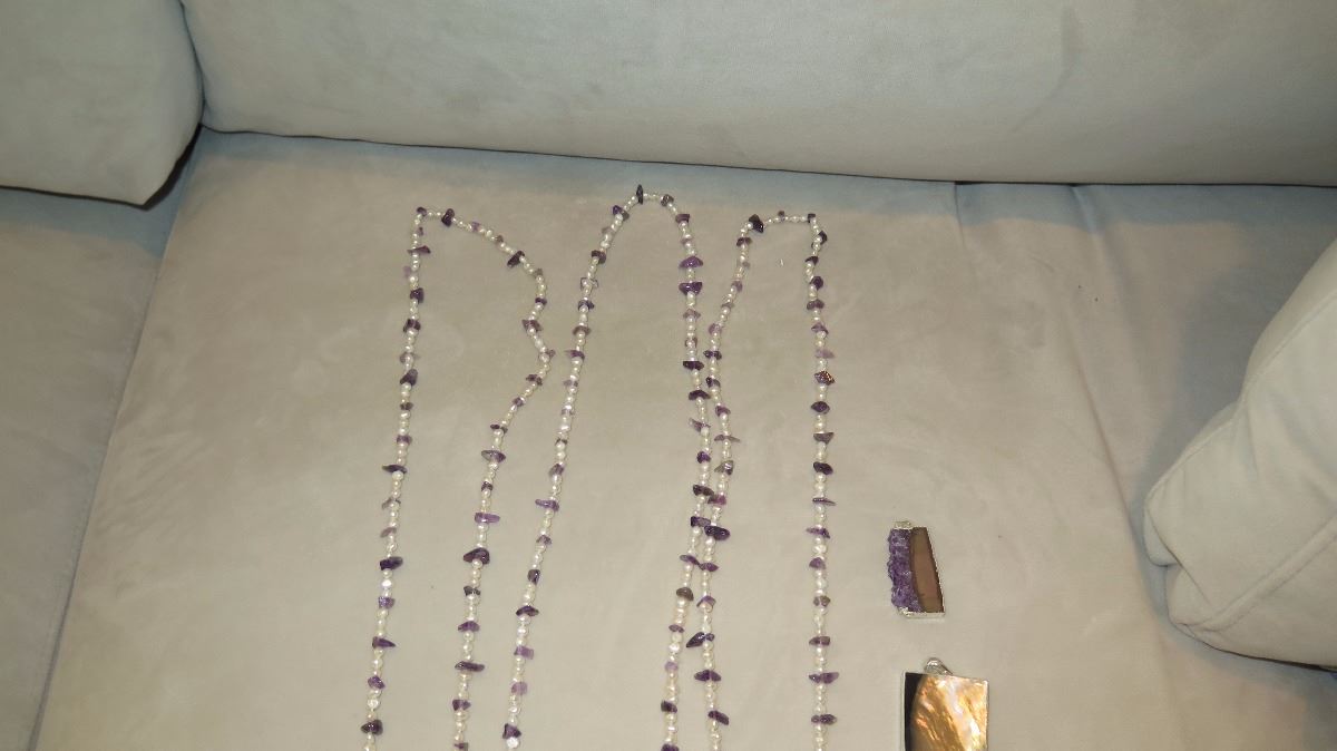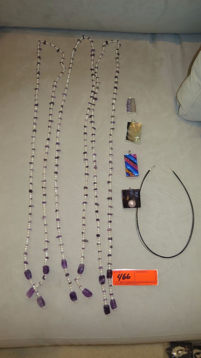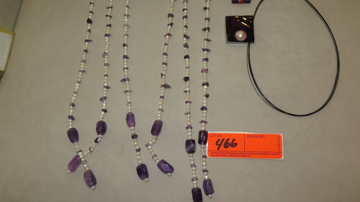 Jewelry: 3 Strands Amethyst/Pearl Open Necklaces, Rope Chain w/Amethyst Pendant, 3 Misc Pendants