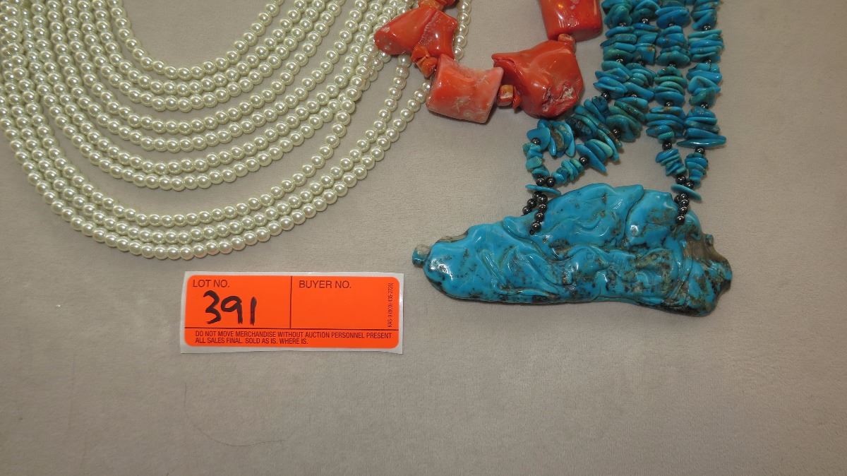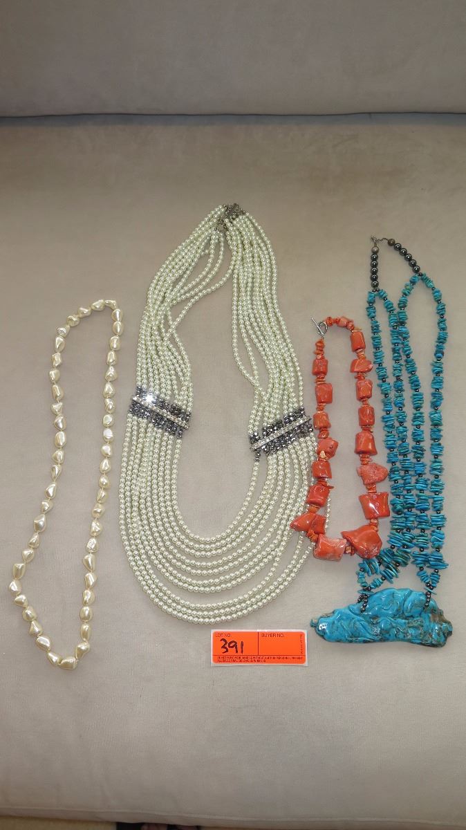 Jewelry: 4 Misc. Turquoise, Pearl Necklaces, etc.
