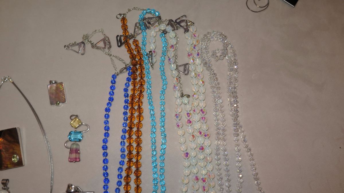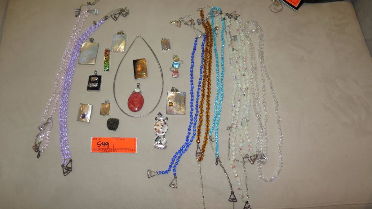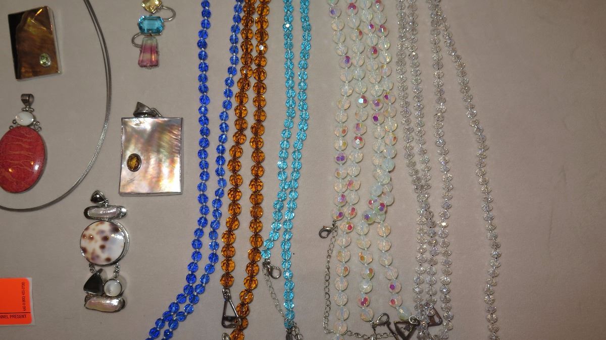 Jewelry: 7 Misc. Bead Necklaces, Rope Chain w/12 Pendants