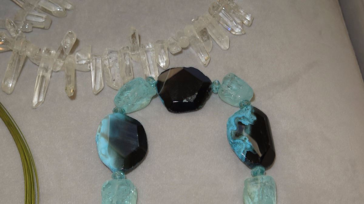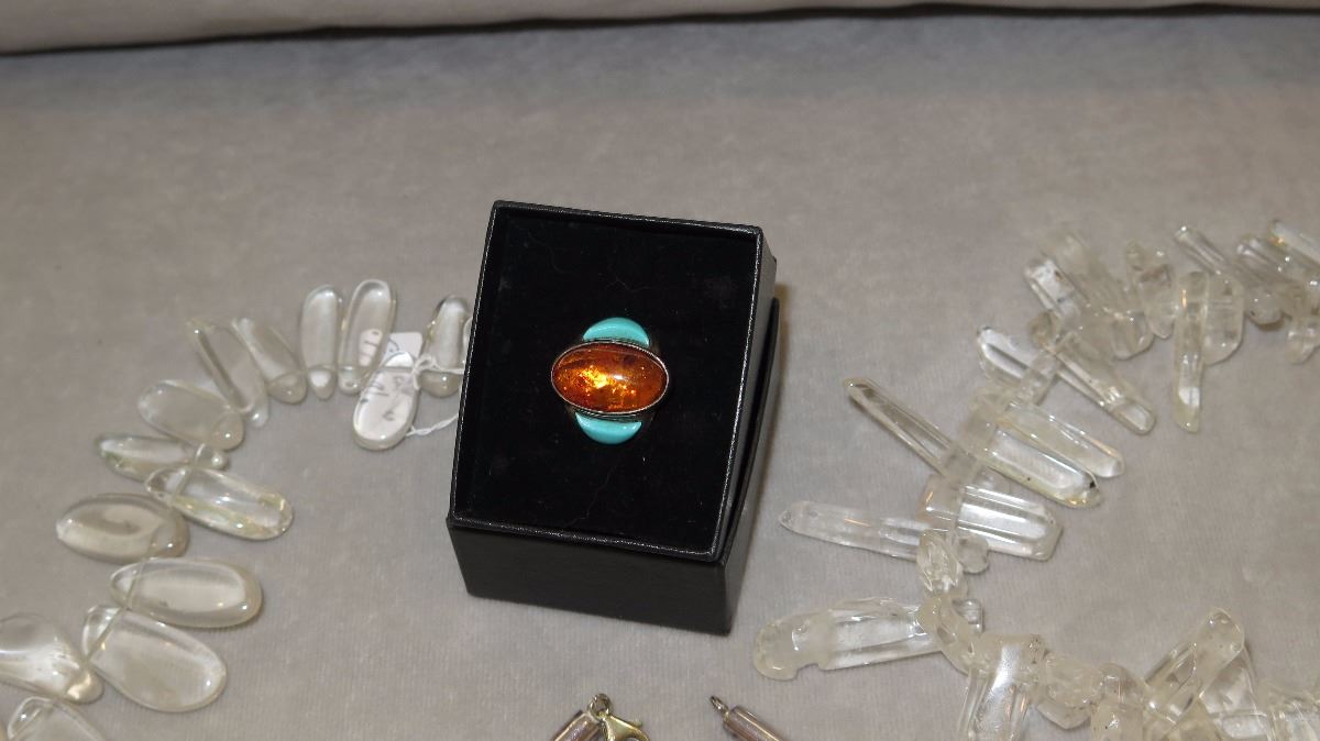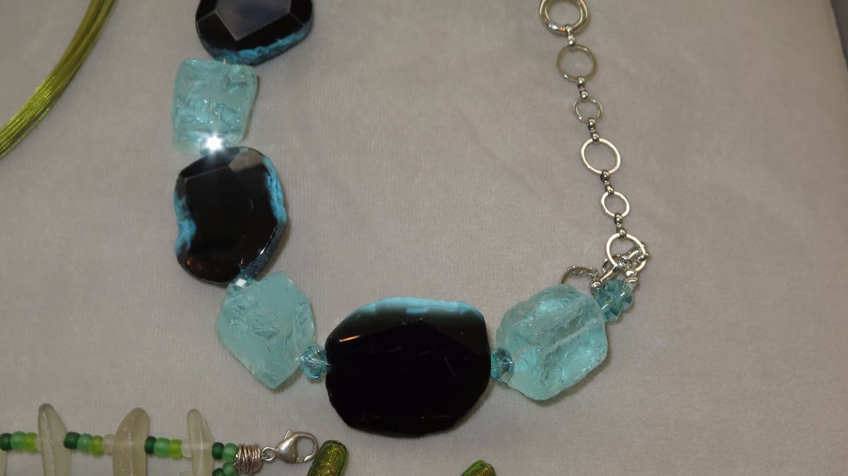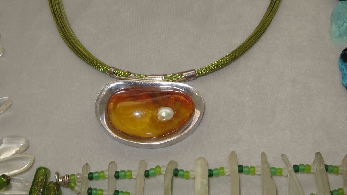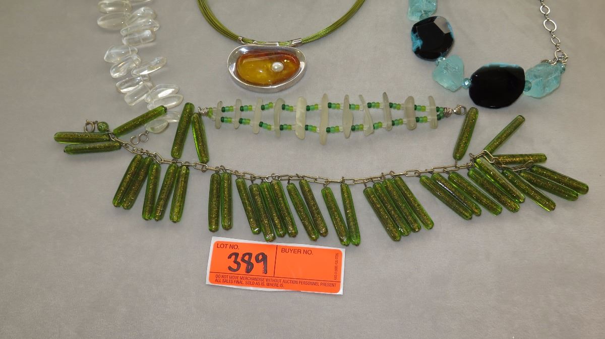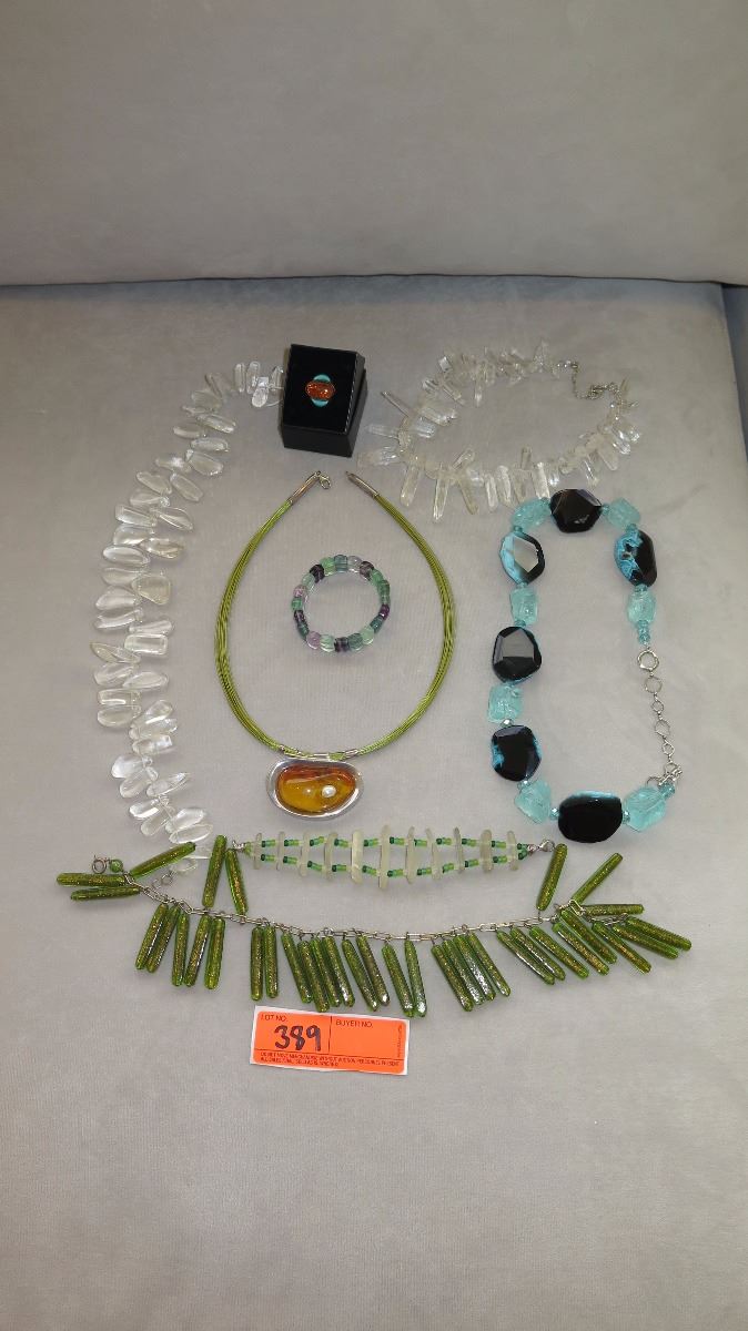 Jewelry: 7 Misc. Glass Necklaces, Bracelets, Amber Pendant