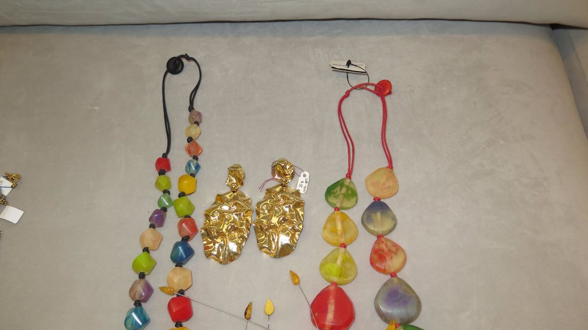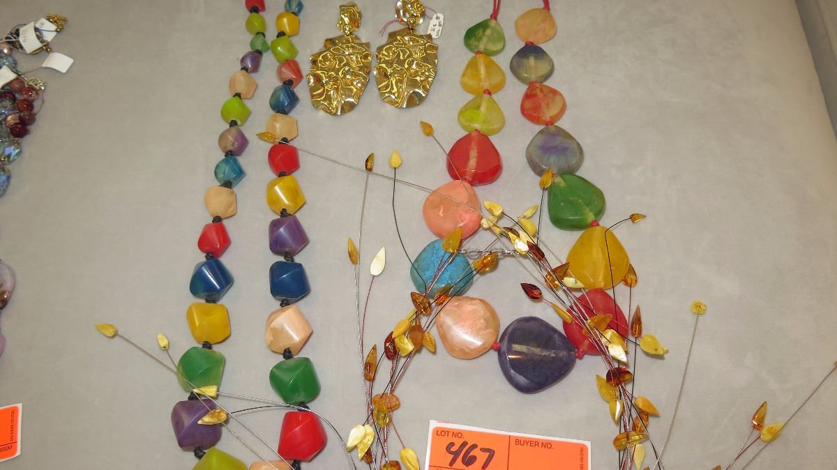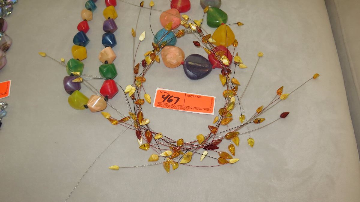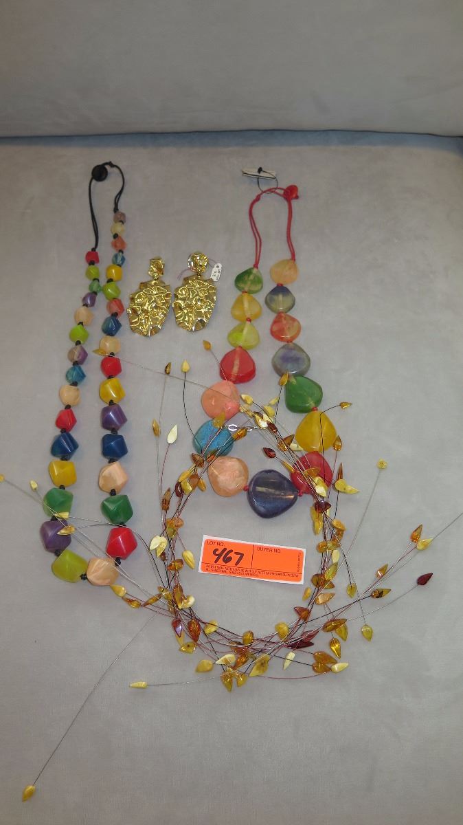 Jewelry: Amber-Hued Bead Necklace, 2 Multi-Colored Necklaces, Earrings