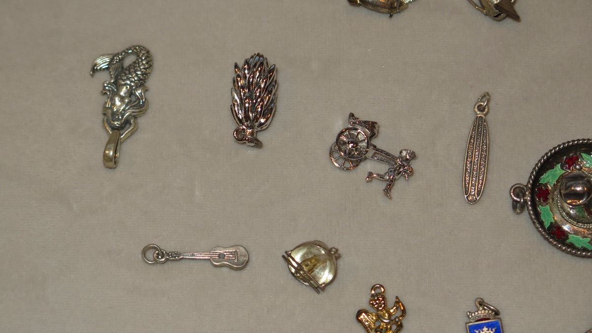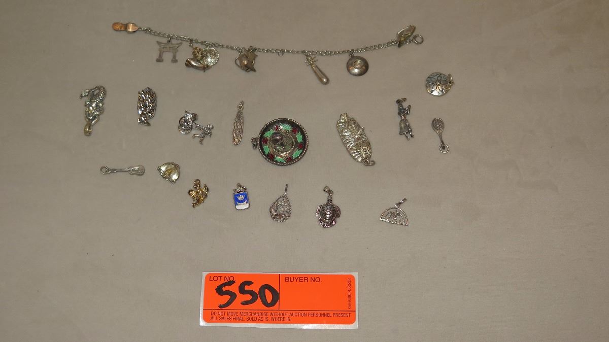 Jewelry: Antique Charm Bracelet - w/16 Additional Charms (Hawaiiana, etc)