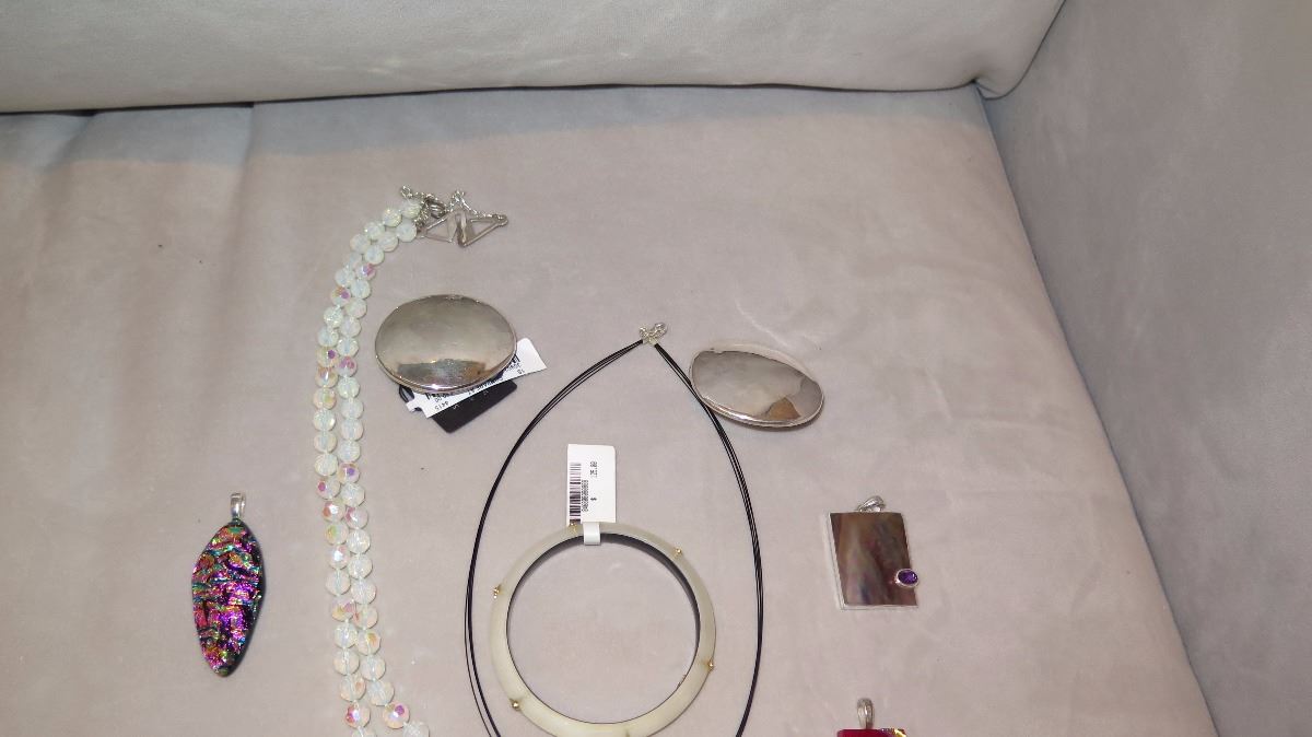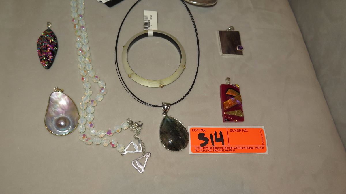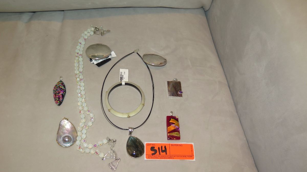 Jewelry: Clear Bead Necklace, Rope Chain w/5 Pendants, Bracelet, Earrings