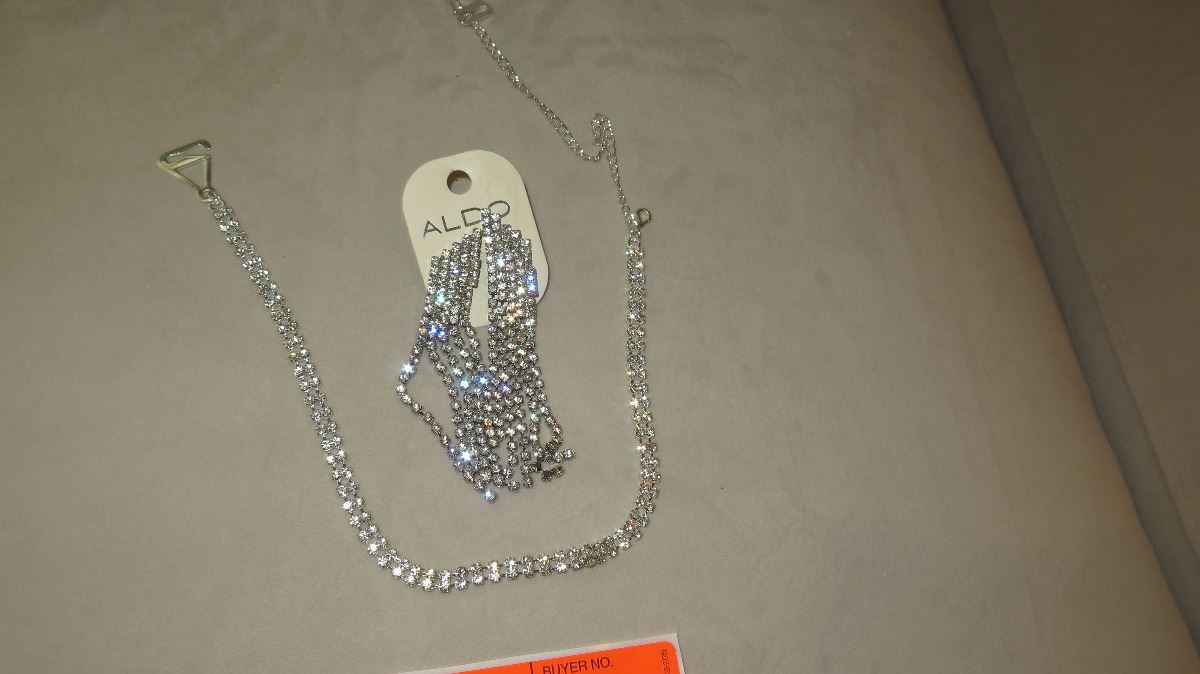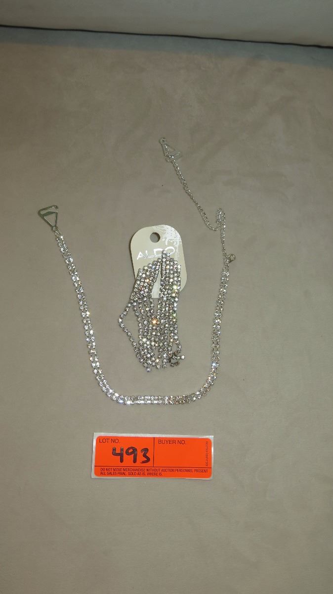 Jewelry: Dainty Rhinestone Necklace, Rhinestone Cascade Earrings
