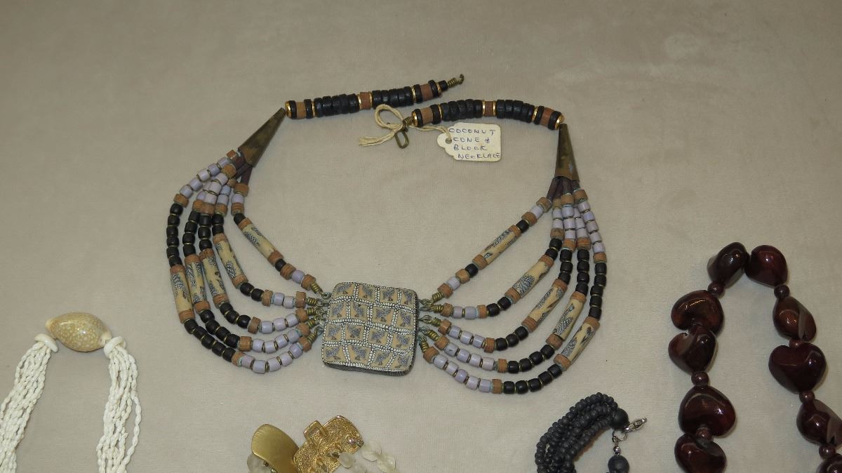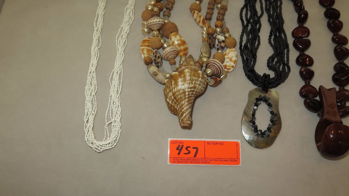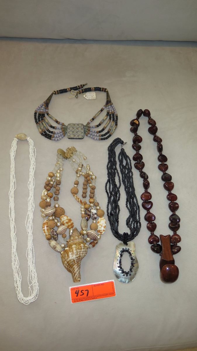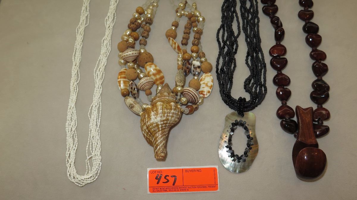 Jewelry: Multi-Strand Niihau Momi Shell Necklace and 4 Misc. Shell/Bead Necklaces