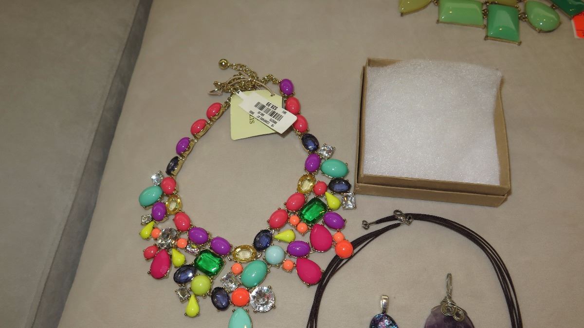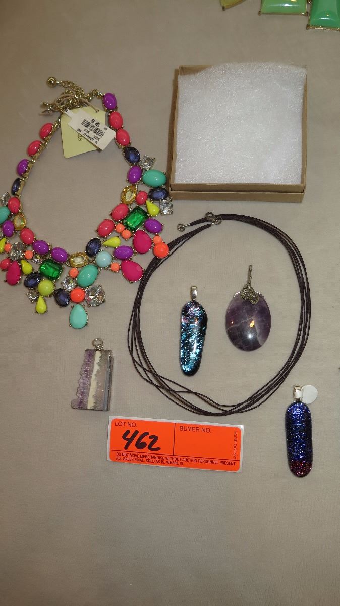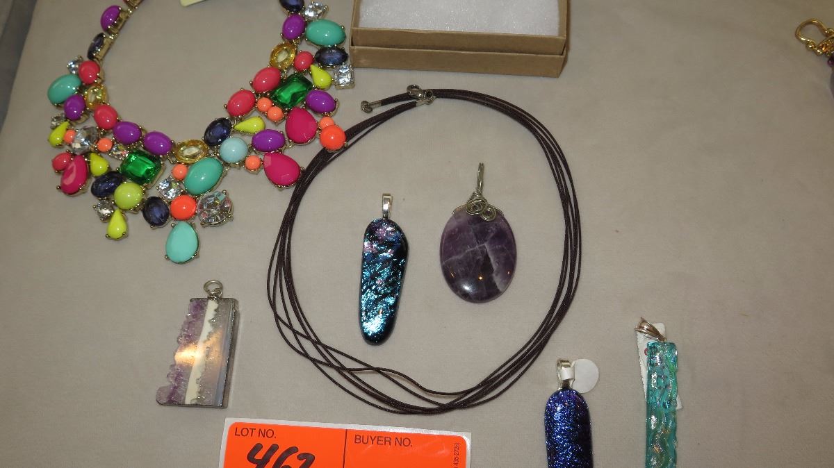 Jewelry: Multi Tier Beaded Drape Necklace, Rope Chain w/Amethyst Pendants, 3 Glass Pendants