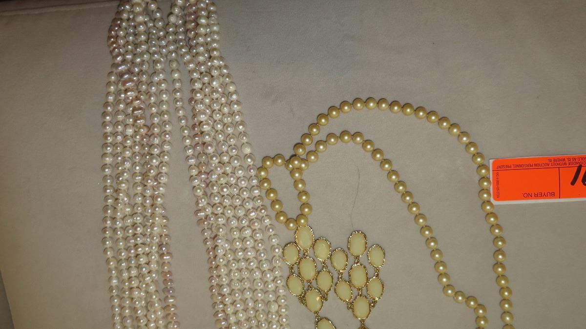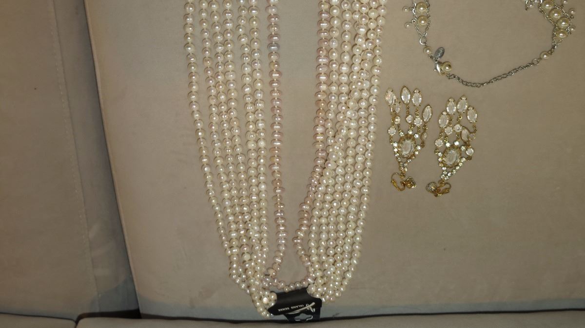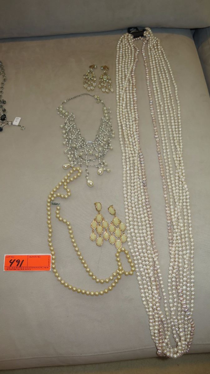 Jewelry: Multiple Strand White Pearls, Pearl Drape Necklace, 2 Pairs Earrings