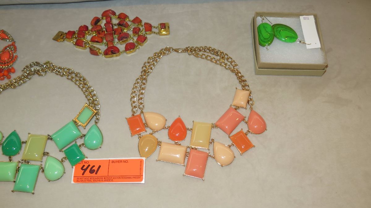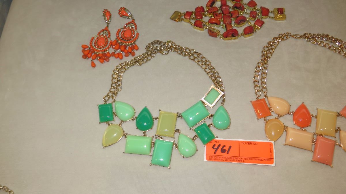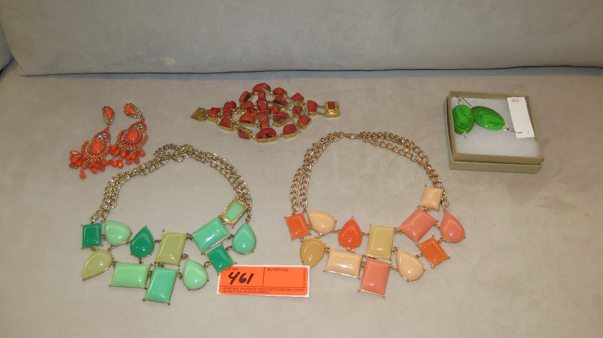 Jewelry: Orange and Green-Hued Necklaces (2), Earrings (2 prs), Bracelet