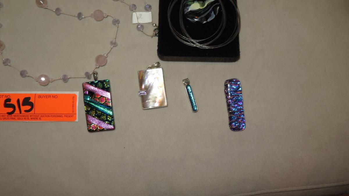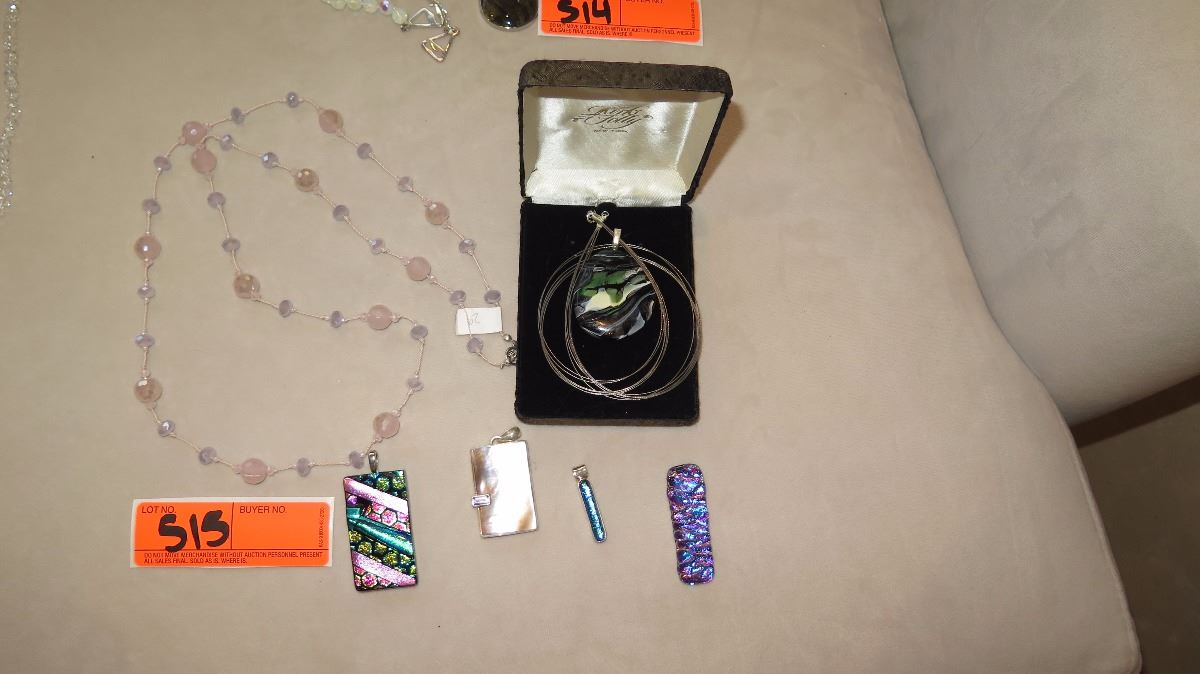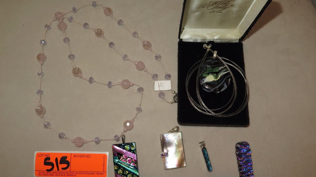 Jewelry: Pink Bead Necklace, Rope Chain w/5 Glass & Mother of Pearl Pendants