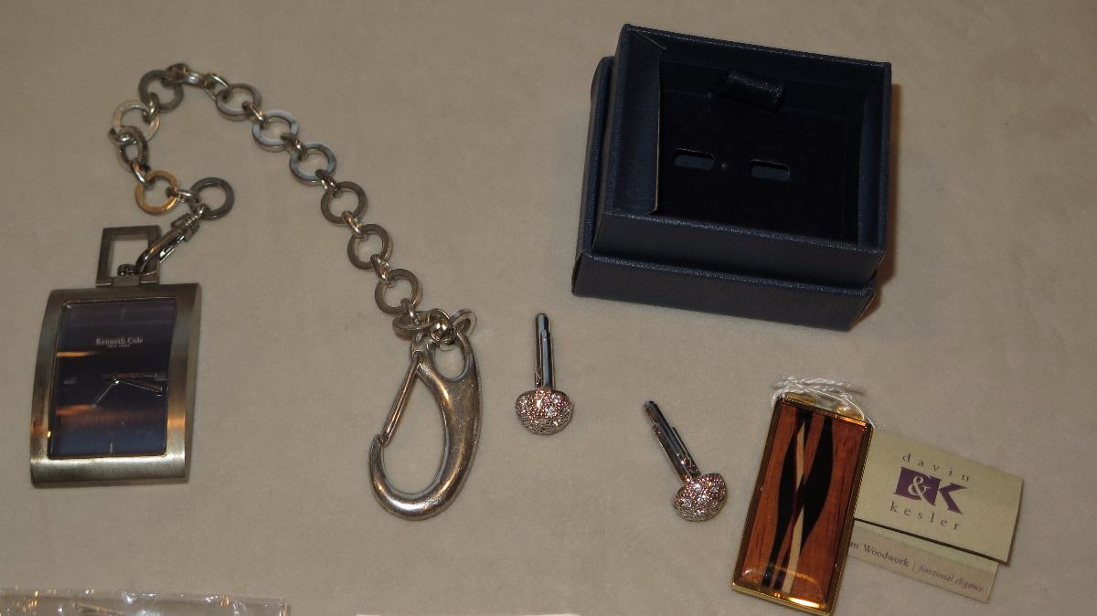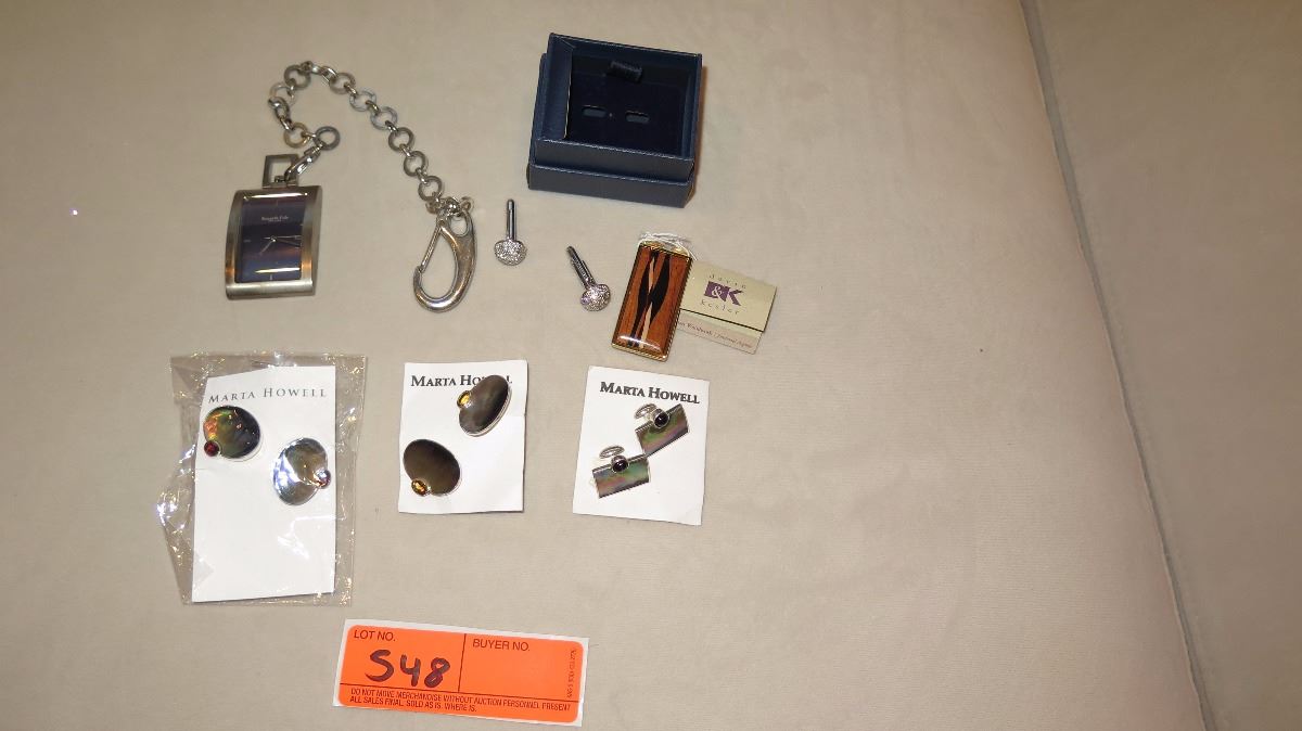 Jewelry: Pocket Watch Keychain, 4 Pairs Cuff Links, Money Clip