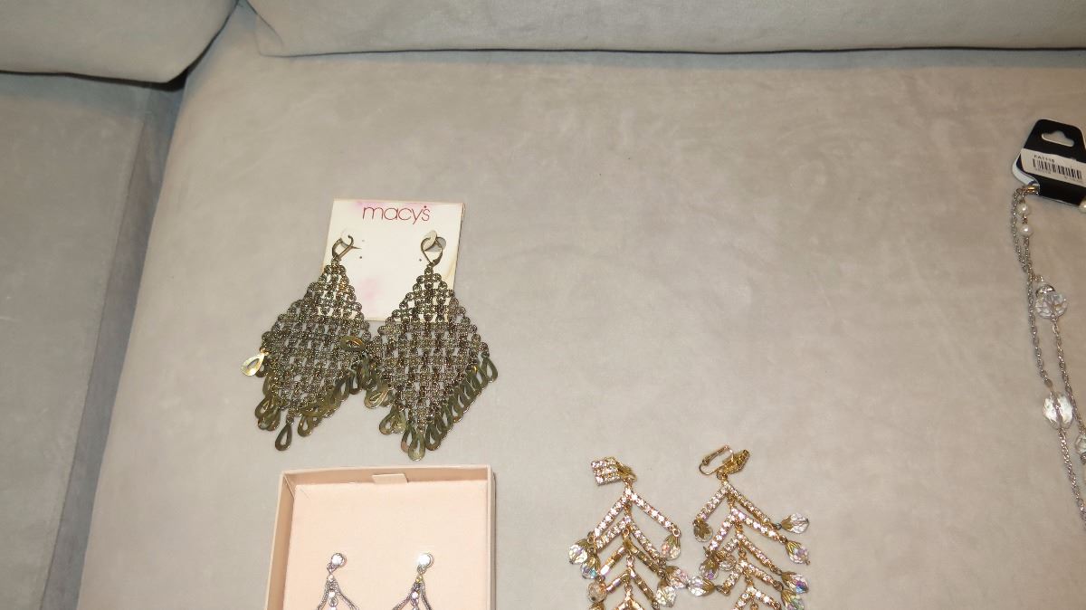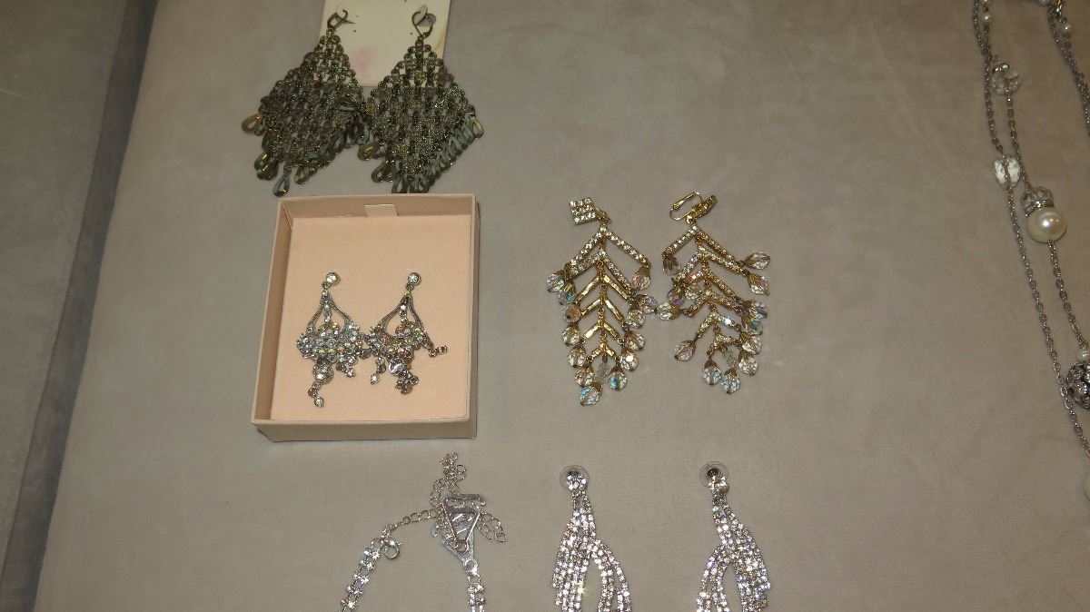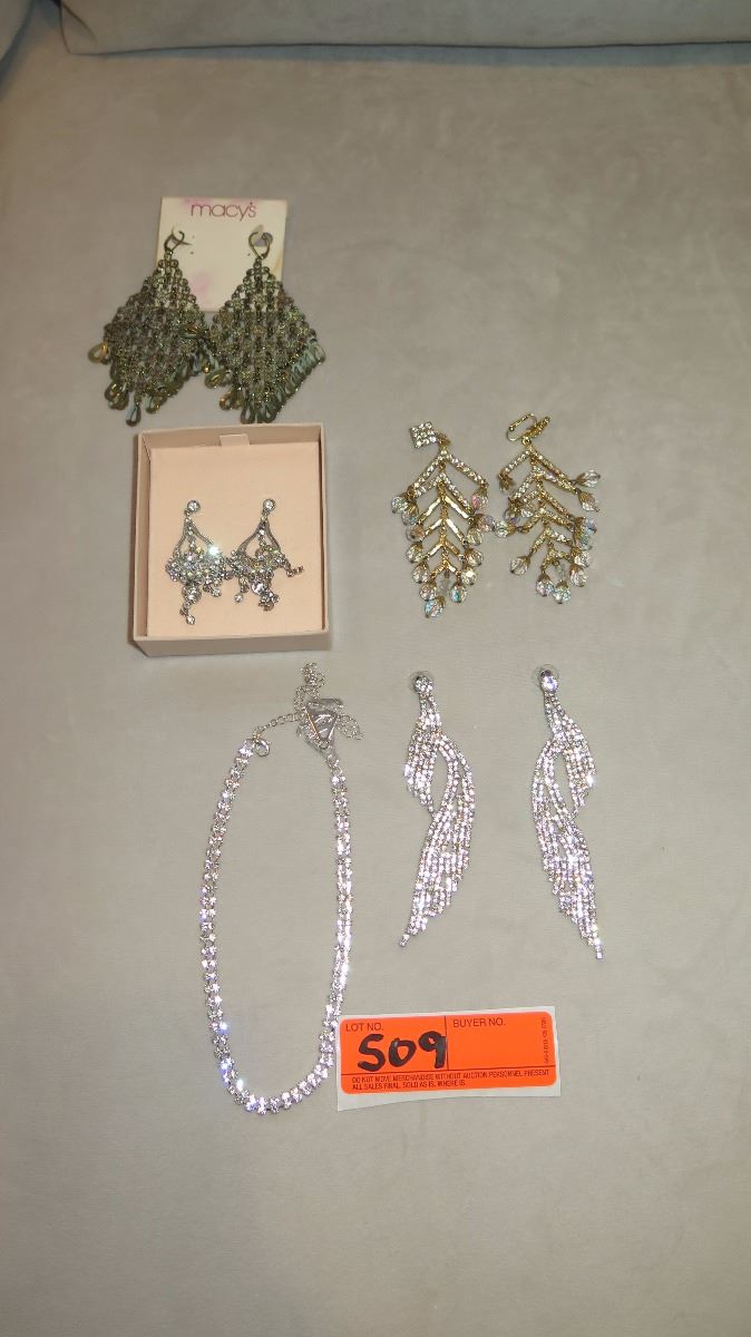 Jewelry: Rhinestone Necklace, 4 Cascade Rhinestone Earrings
