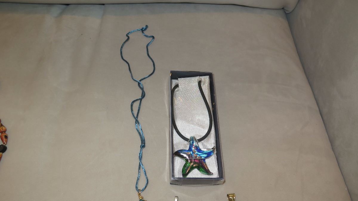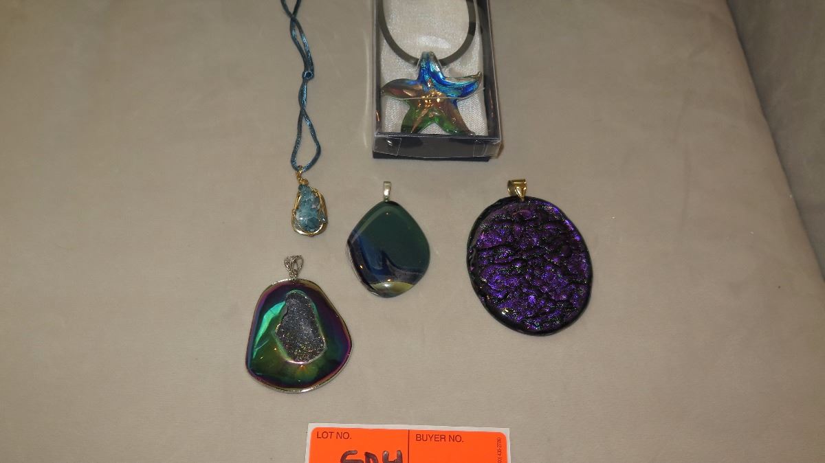 Jewelry: Satin Rope Necklaces, Glass Starfish Pendant & 4 Misc. Pendants