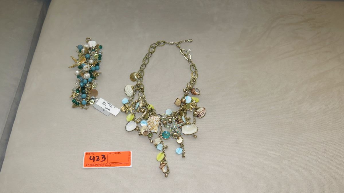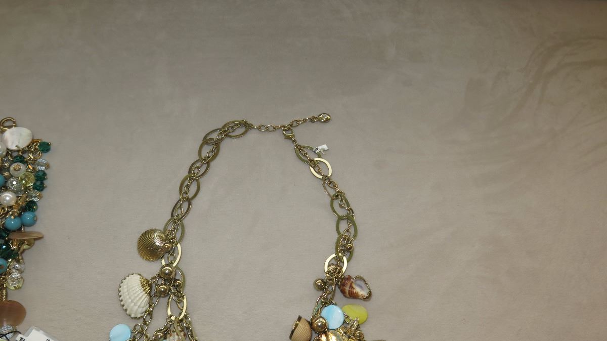 Jewelry: Seashells Motif Cluster Drape Necklace and Bracelet - Natural Shells, Gold-Toned (Charms-Style)