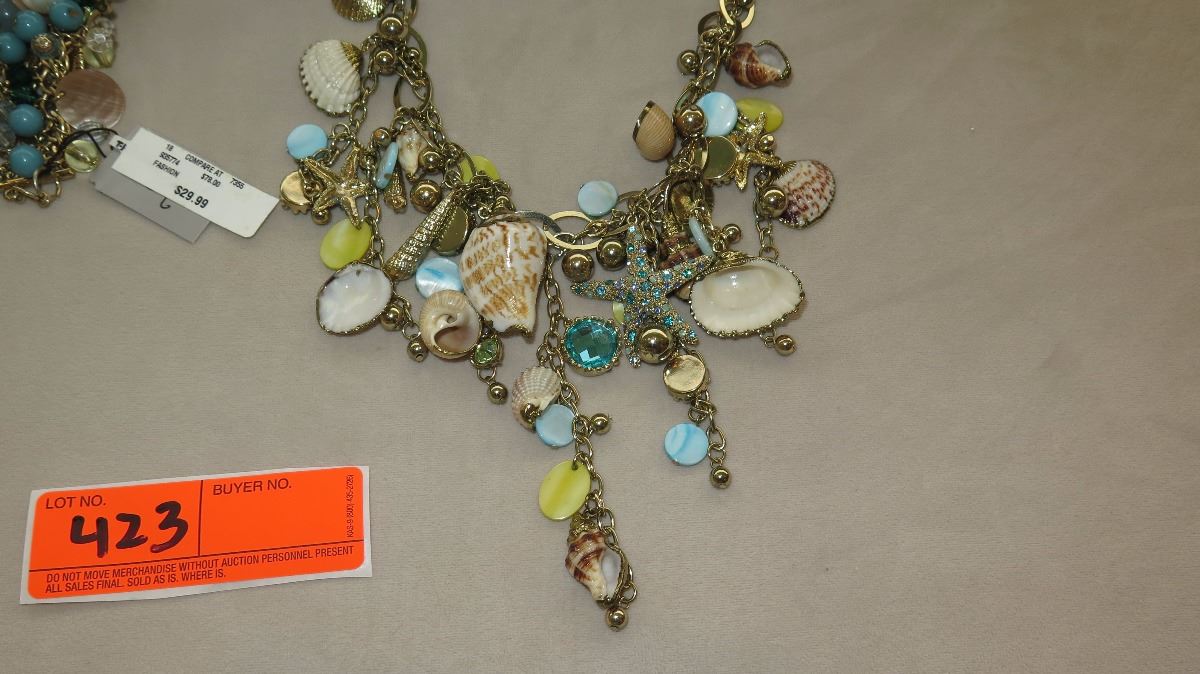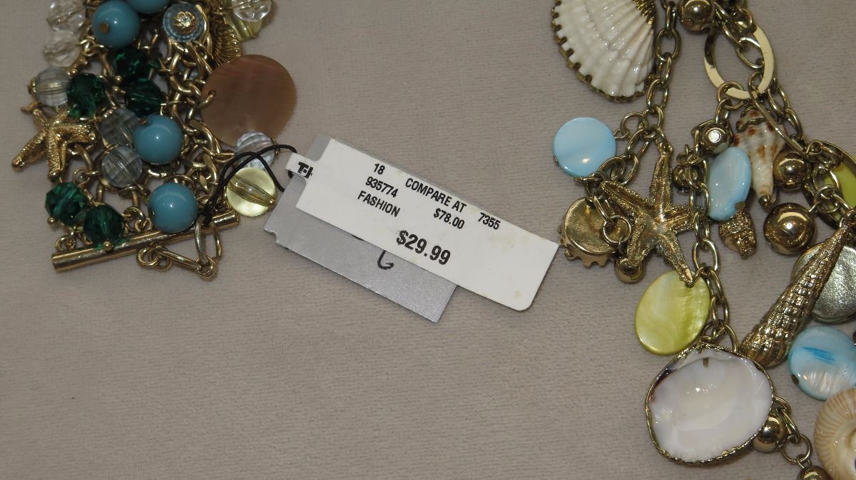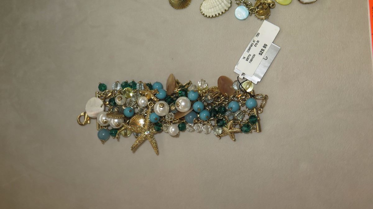Jewelry: Seashells Motif Cluster Drape Necklace and Bracelet - Natural Shells, Gold-Toned (Charms-S
