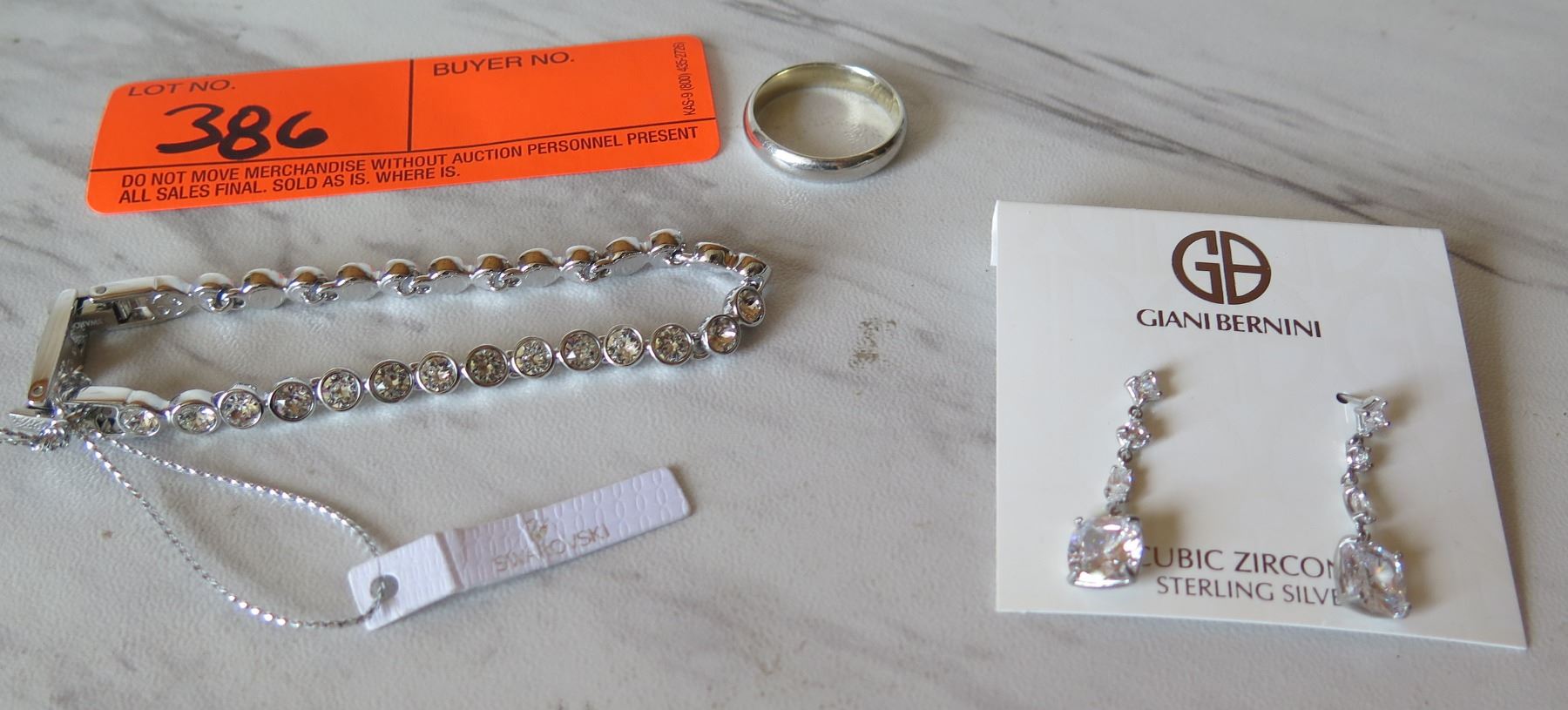 Jewelry - Swarovsky Tennis Bracelet w/Tag, Giani Bernini Earings w/Tag, Men's Silver Ring. Everything in the auction is being sold “as is” with no guarantees or warranties. All sales final. Returns/refunds/exchanges will not be allowed. You are bidding on what you see in the pictures in their present condition. If you do not see an AC adapter, power cord/cable, batteries, accessories, manuals, original box it’s because we don’t have it. We have not personally used any of these items and unsure of functionaltiy of electronics, tools, equipment, gear, musical instruments, sporting goods items, bikes, mopeds, etc.