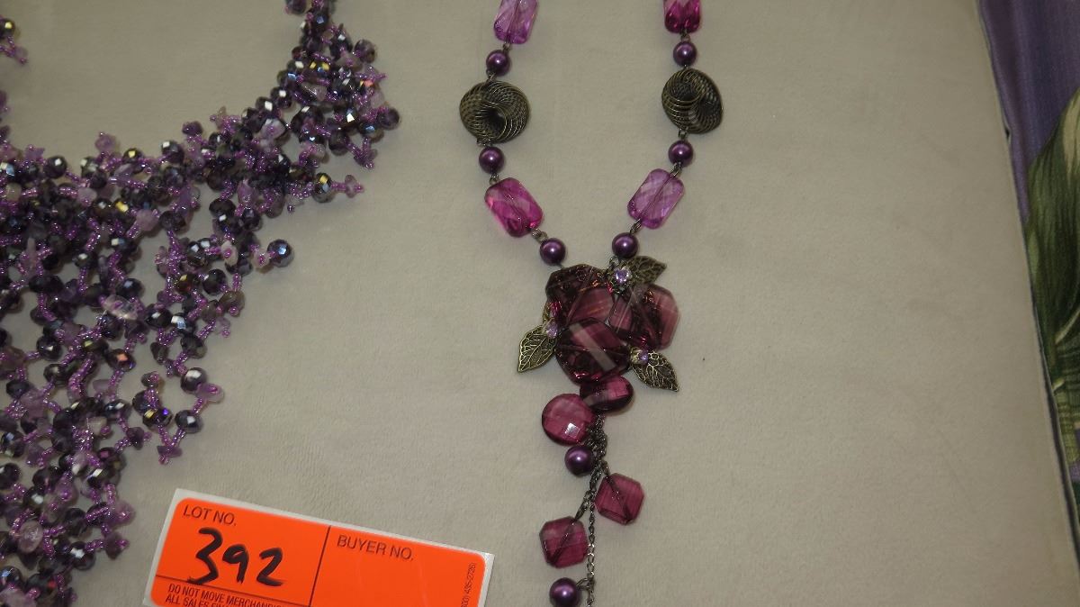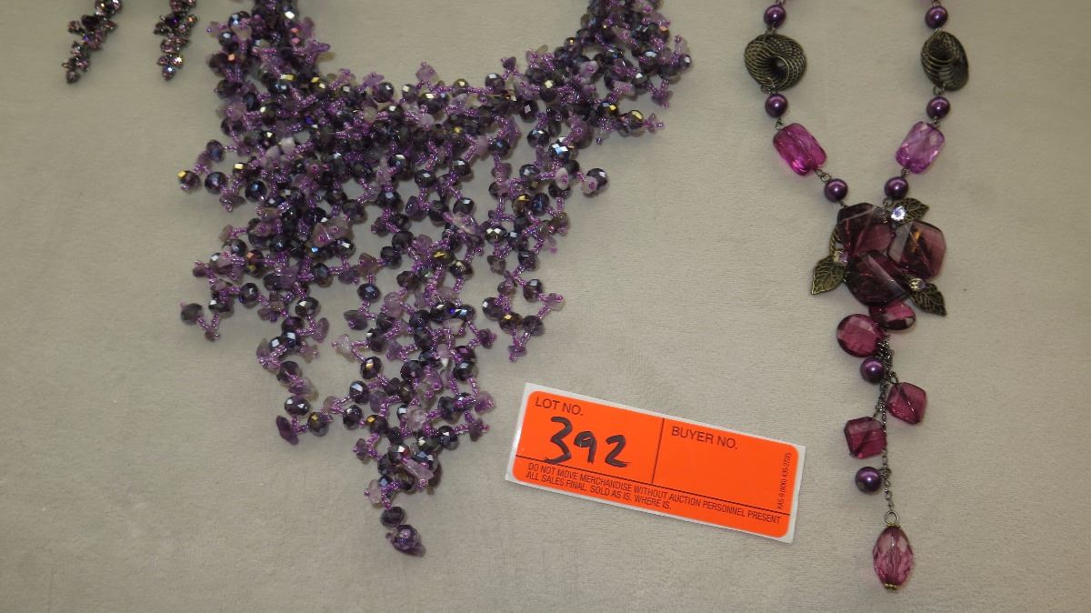 Jewelry: Violet Beaded Waterfall Drape Necklace, Purple Rhinestone Earrings, Dangle Necklace, 2 Bra