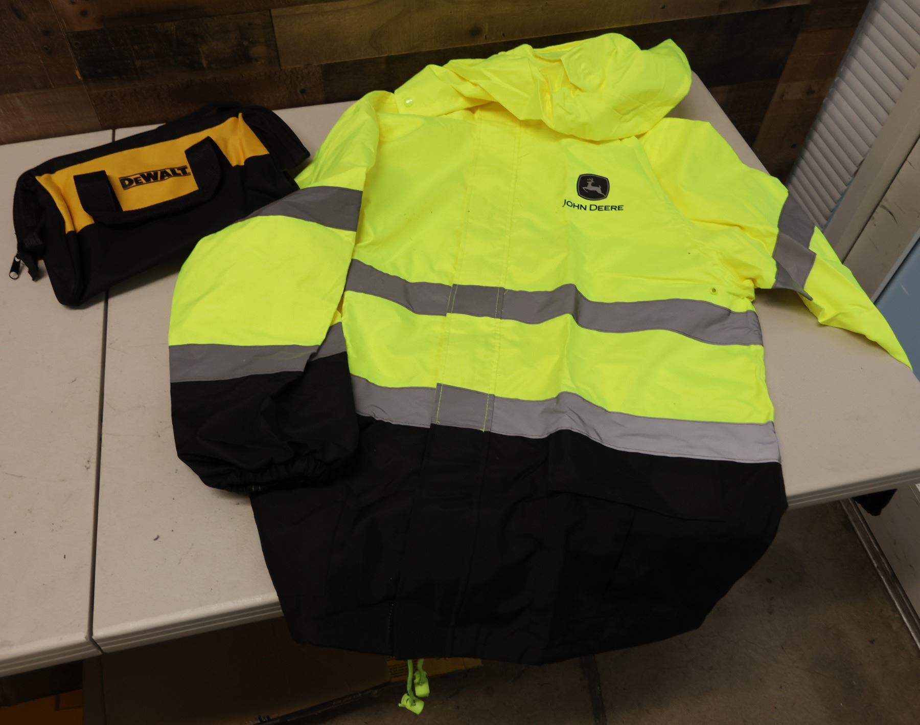 John Deere JD44530-XLB High-Visibility Rain Jacket Size XL & DeWalt Case