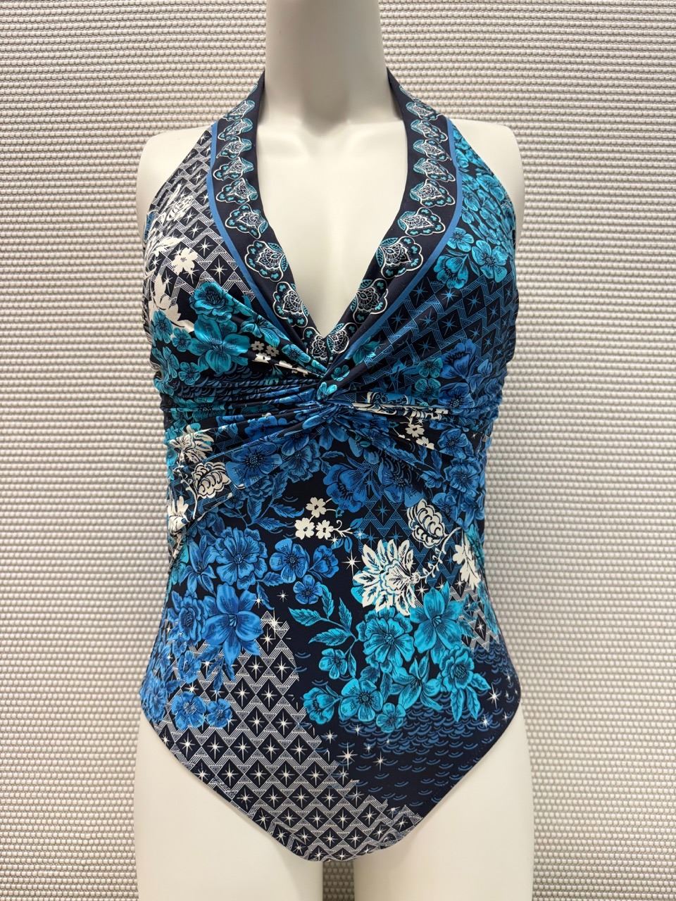 Johnny Was Blue/Black Sady One Piece Swimsuit, Size M, Resort Retail $198.