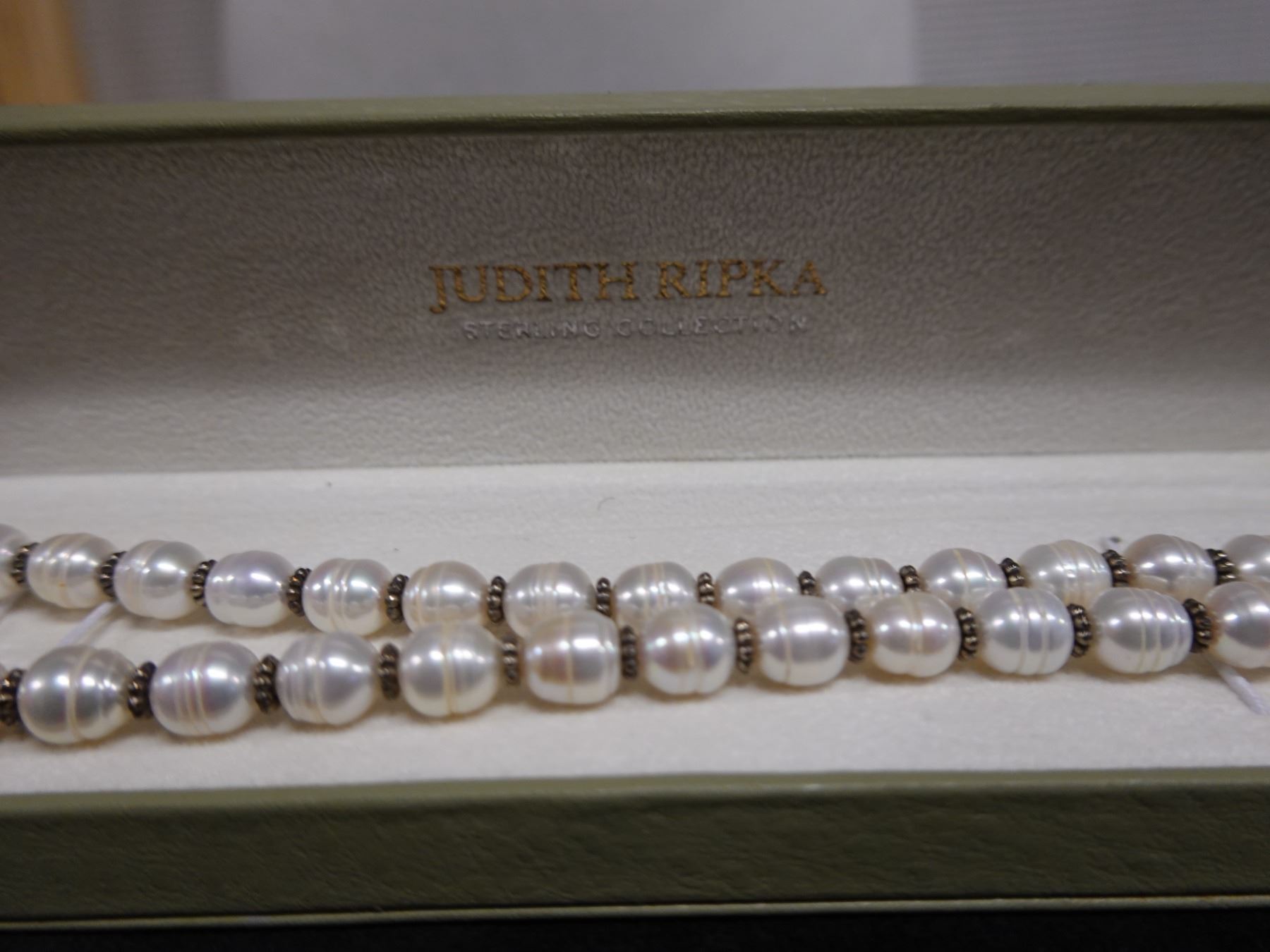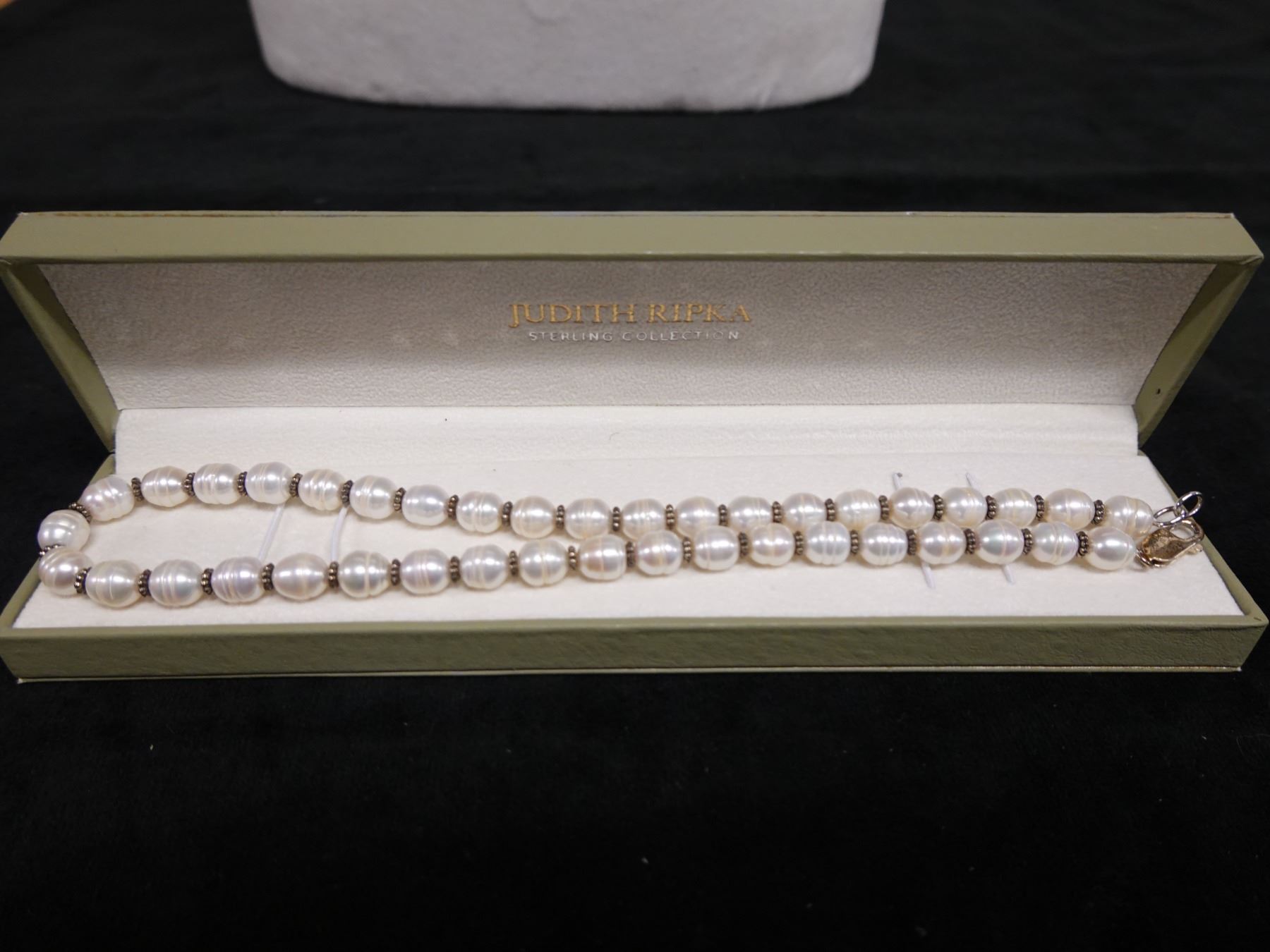 Judith Ripka Sterling Silver 925 Necklace w/ Pearl Beads 18" L