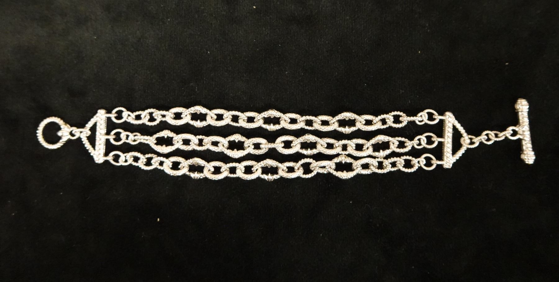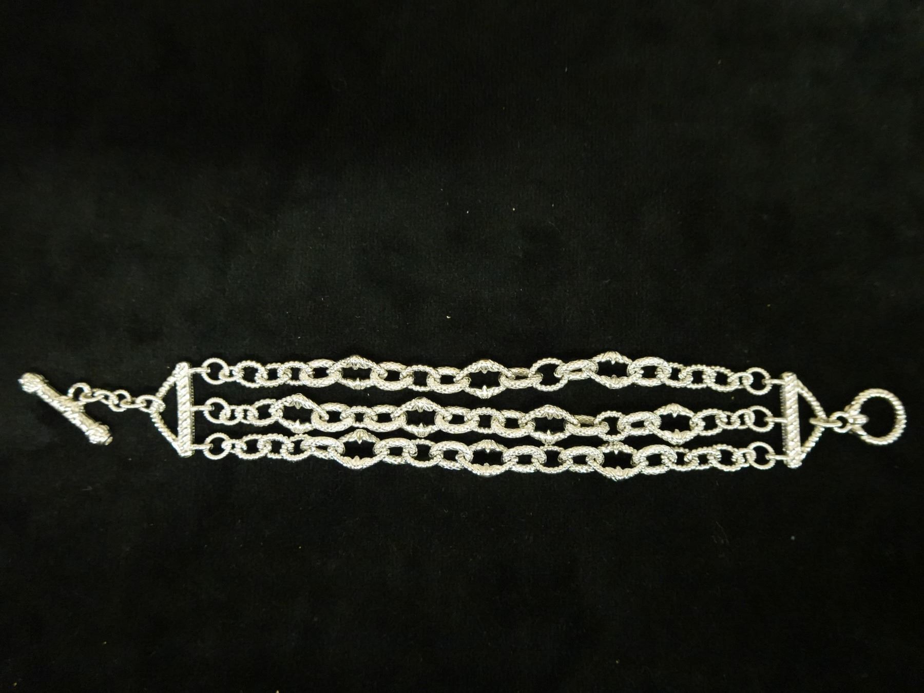 Judith Ripka Sterling Silver 925 Triple Strand Bracelet w/ Cubic Zirconia, 8" L