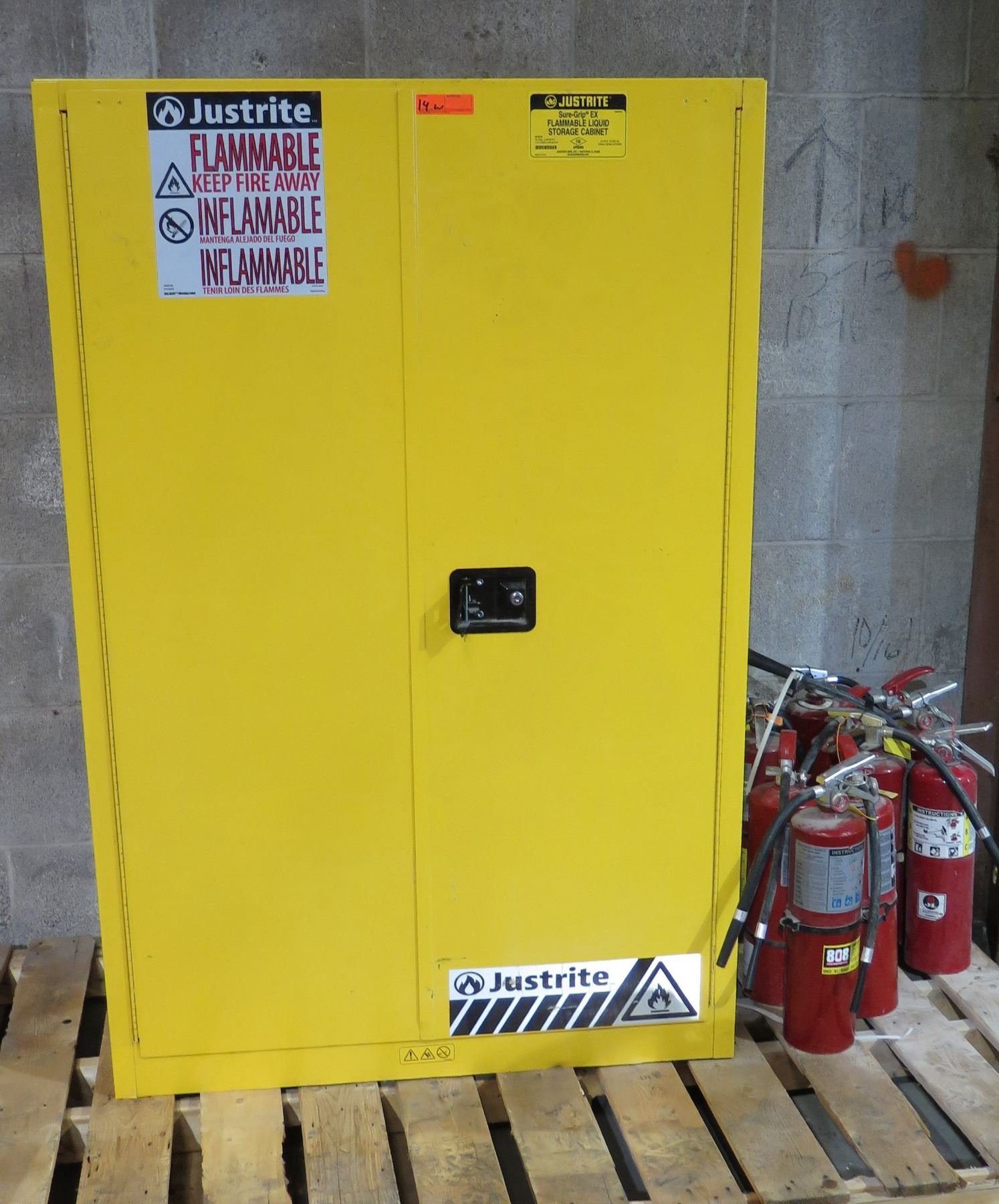 Justrite Sure-Grip EX Flammable Liquid Storage Cabinet & Contents: Gas Cans, etc