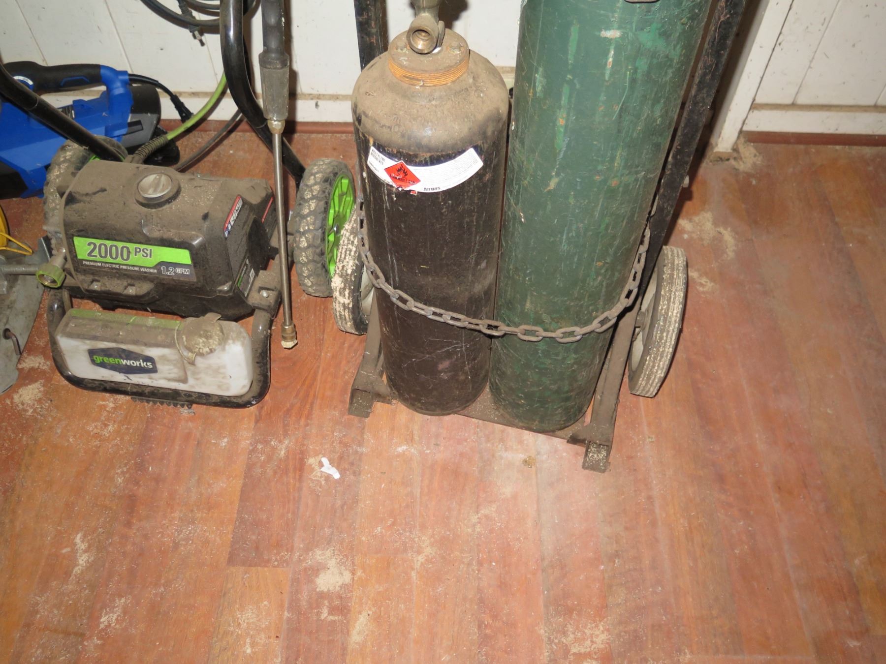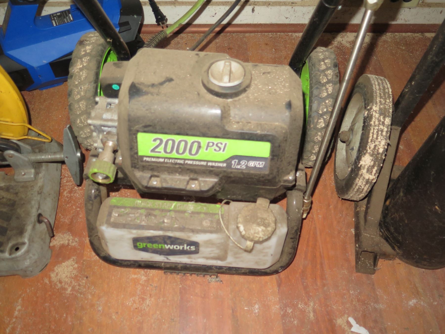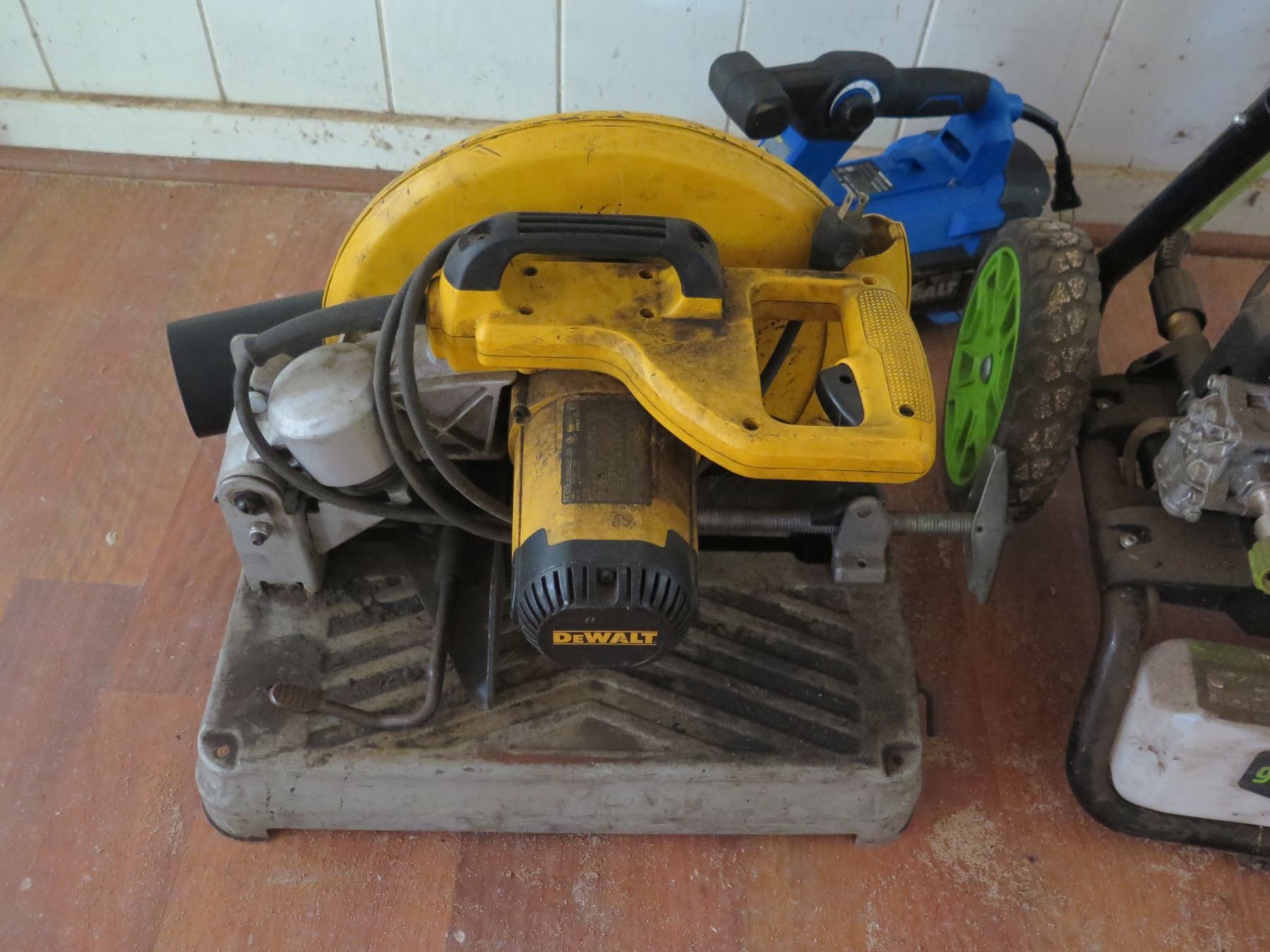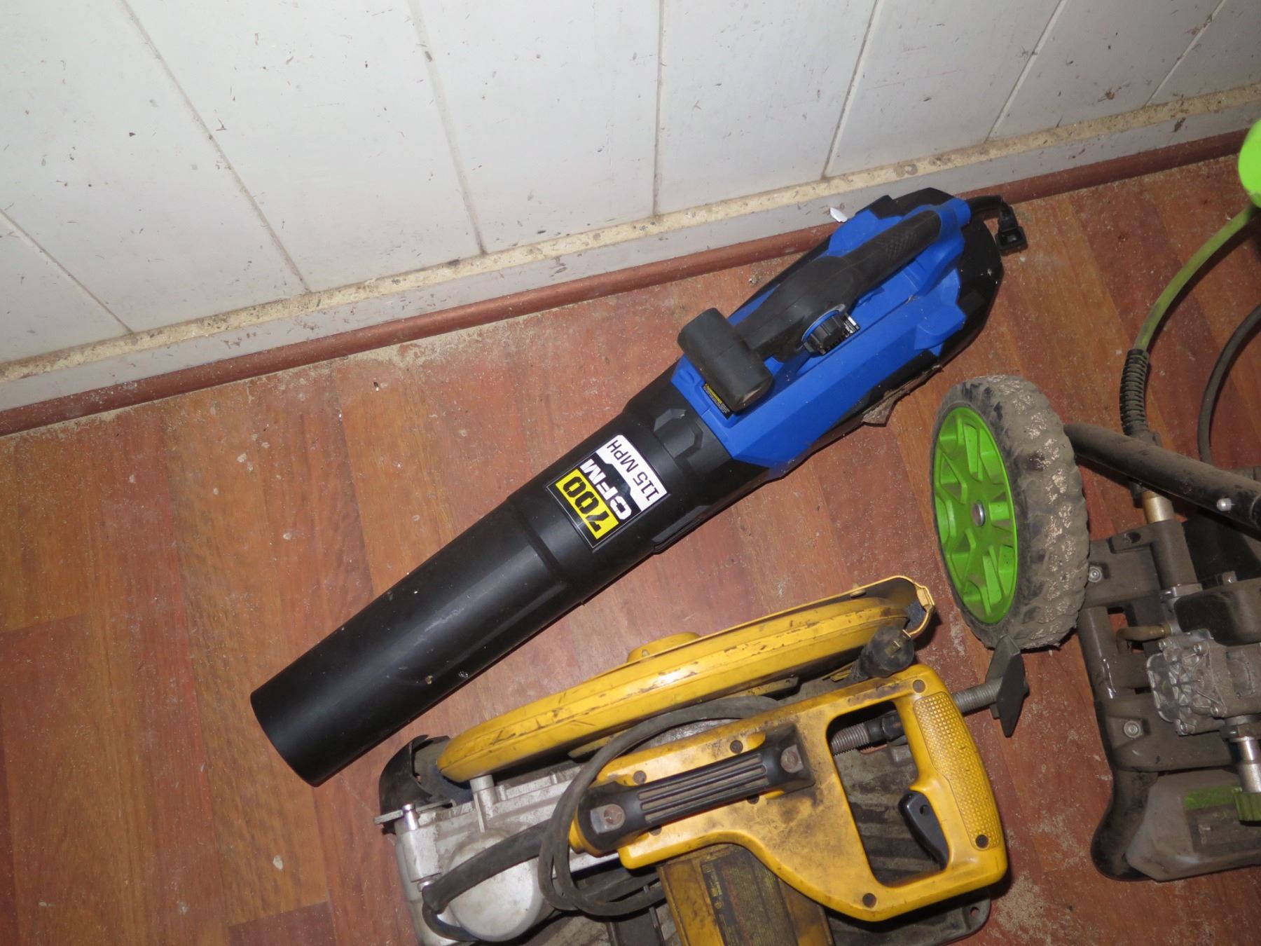 DeWalt D28715 Chop Saw, GreenWorks 2000 PSI Pressure Washer, Tanks, Blower, etc. All are untested. Sold as is. These are in Kailua.