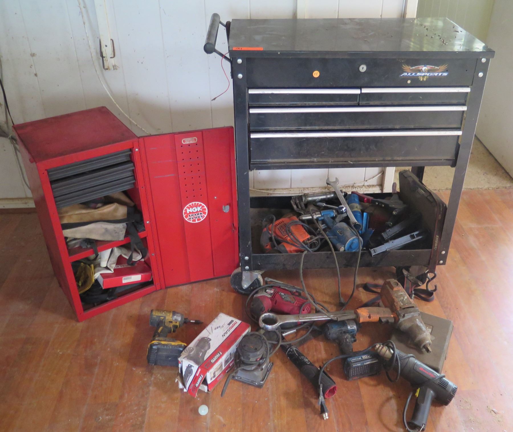 Qty 2 Tool Storage Boxes & Contents: Misc Power & Hand Tools, Hardware, etc. This is in Kailua.