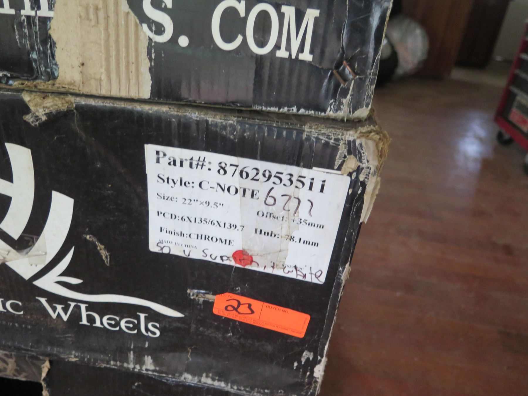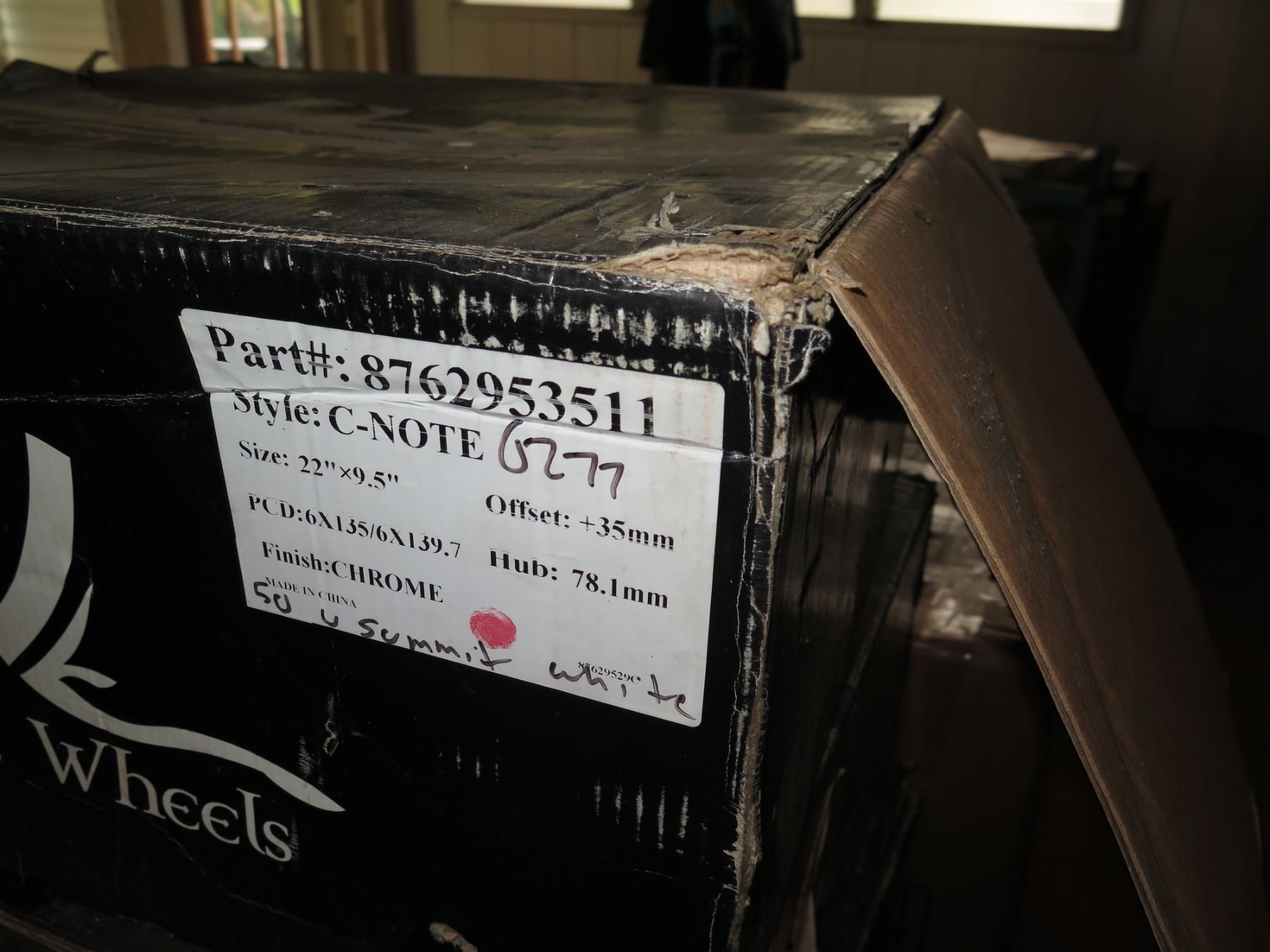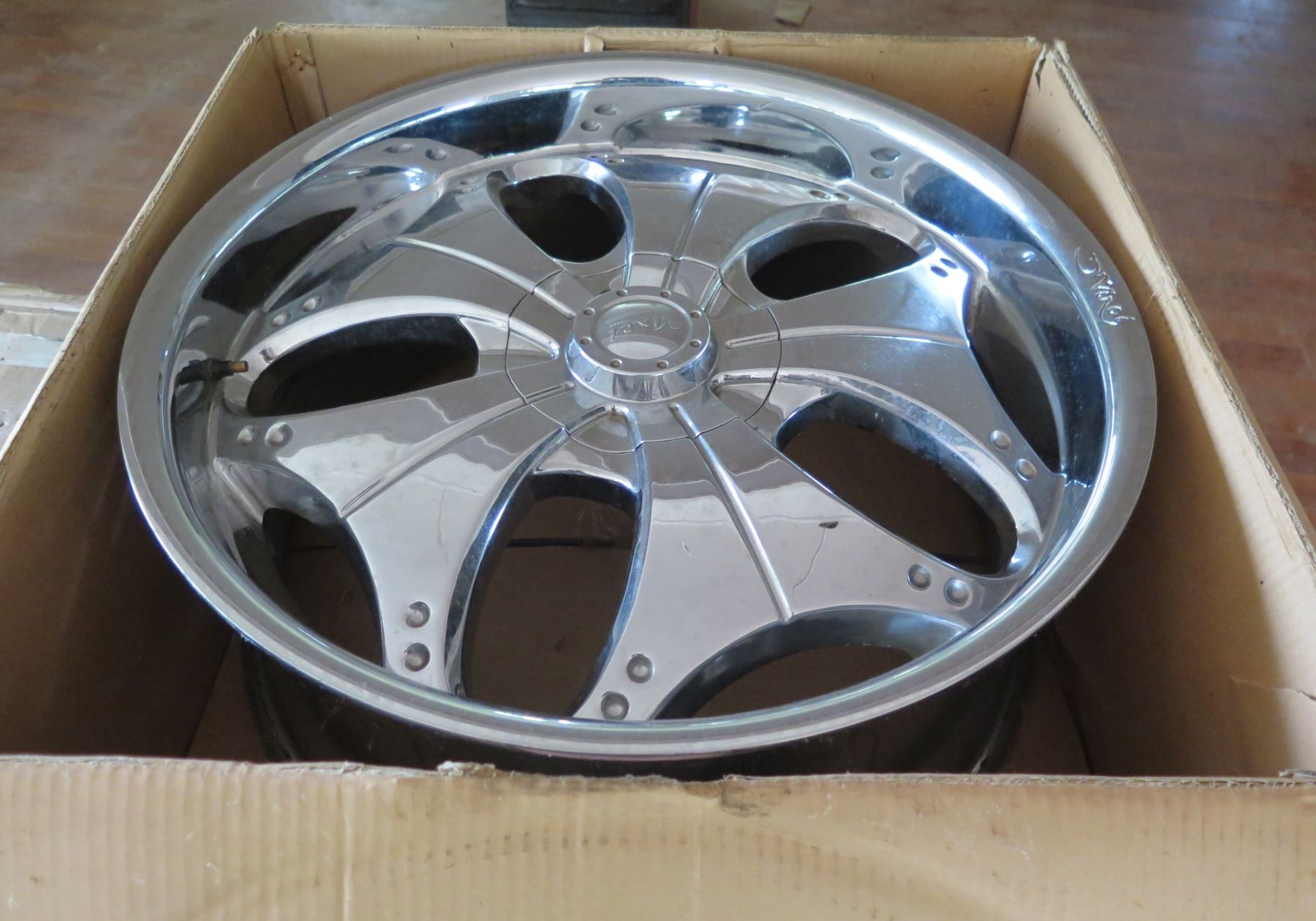 Qty 4 Hipnotic Wheels Vinci C-Note Chrome Rims 22"x9.5". This is in Kailua.