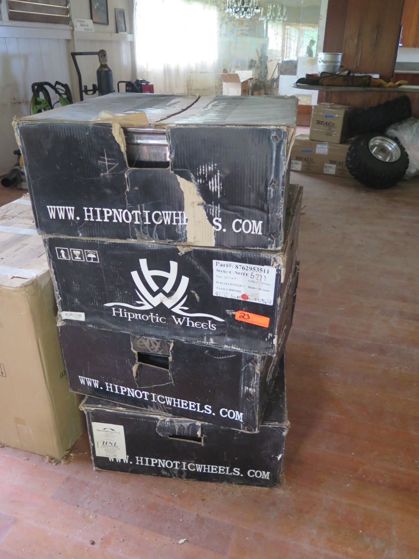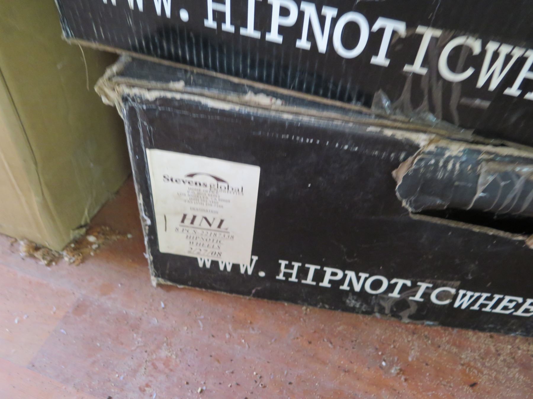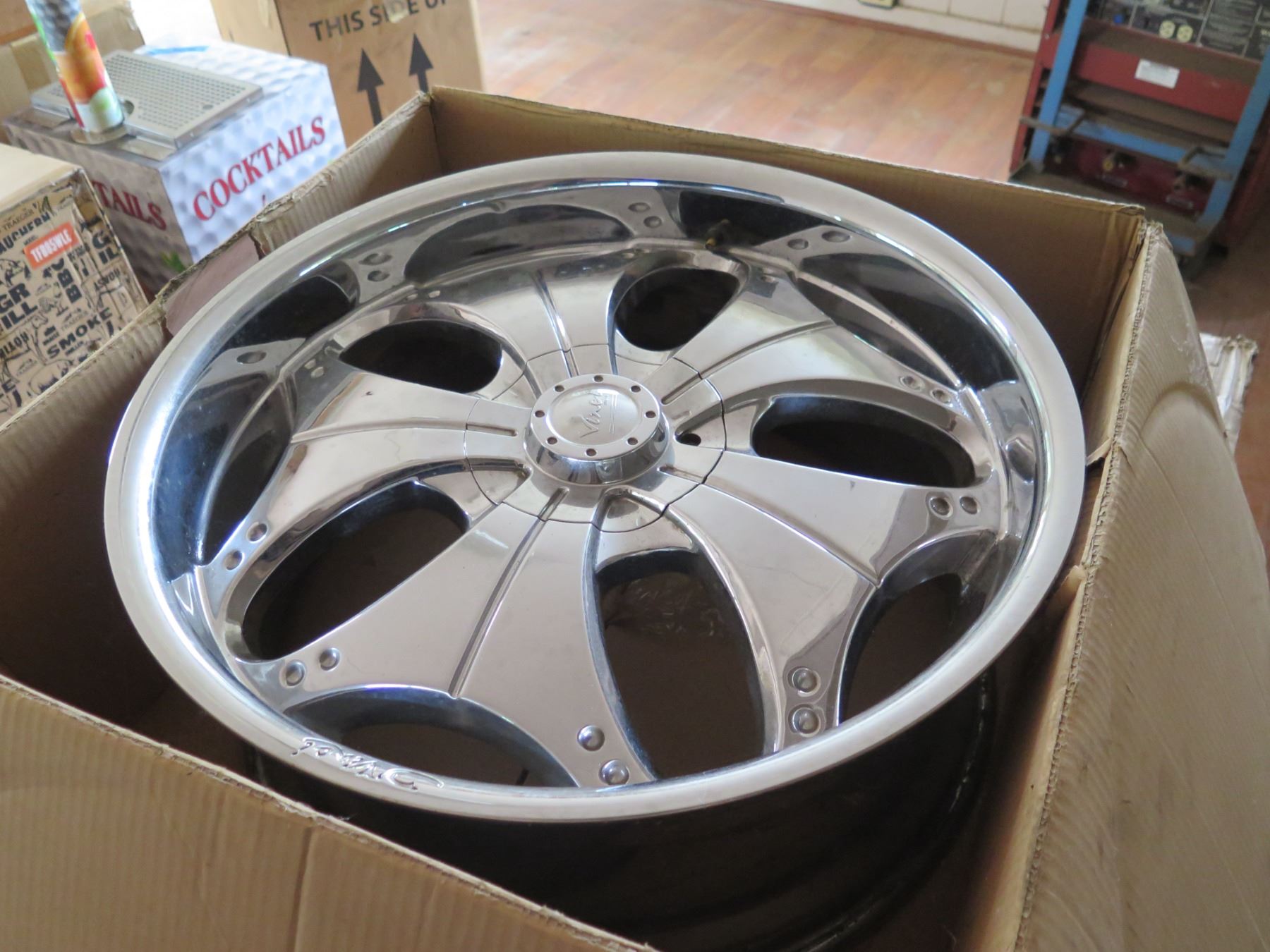 Qty 4 Hipnotic Wheels Vinci C-Note Chrome Rims 22"x9.5". This is in Kailua.