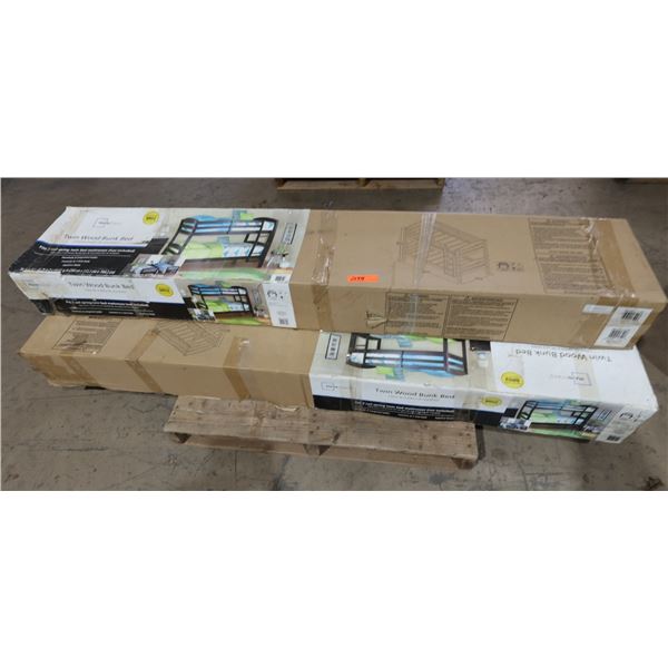 Qty 3 Twin Wood Bunk Beds w/ Guardrails & Integrated Ladder New in Boxes