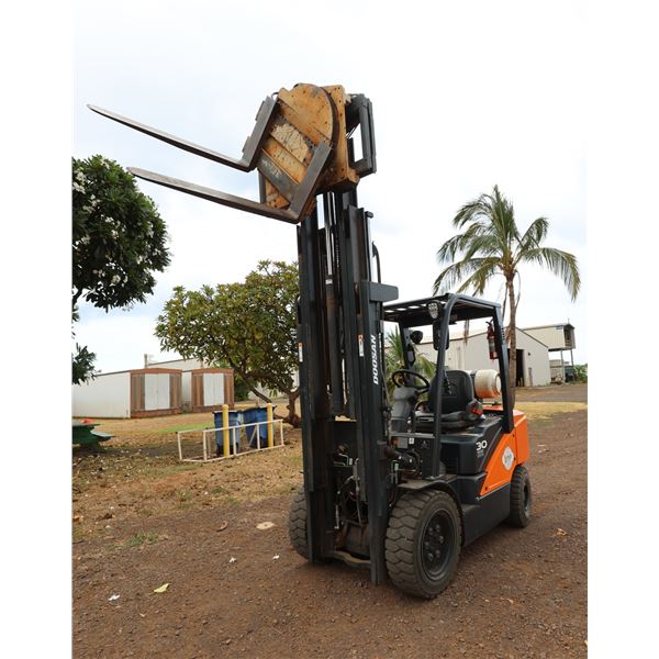 Doosan G30N-7 Forklift 133 Hours w/ Rotating Forks (Starts & Runs - see video)