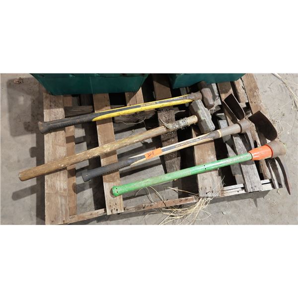 Contents of Pallet: Multiple Pickaxes, Sledgehammers, etc