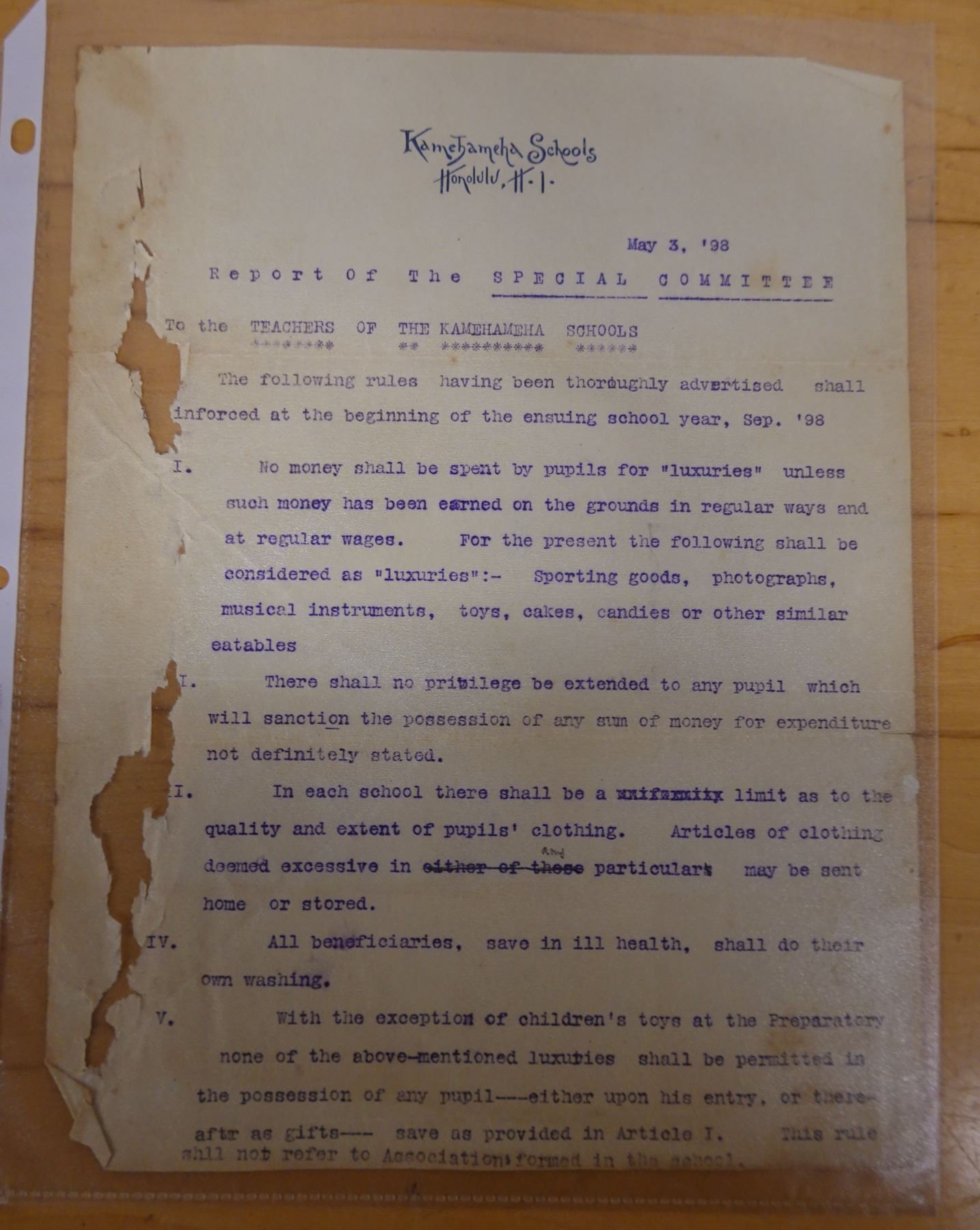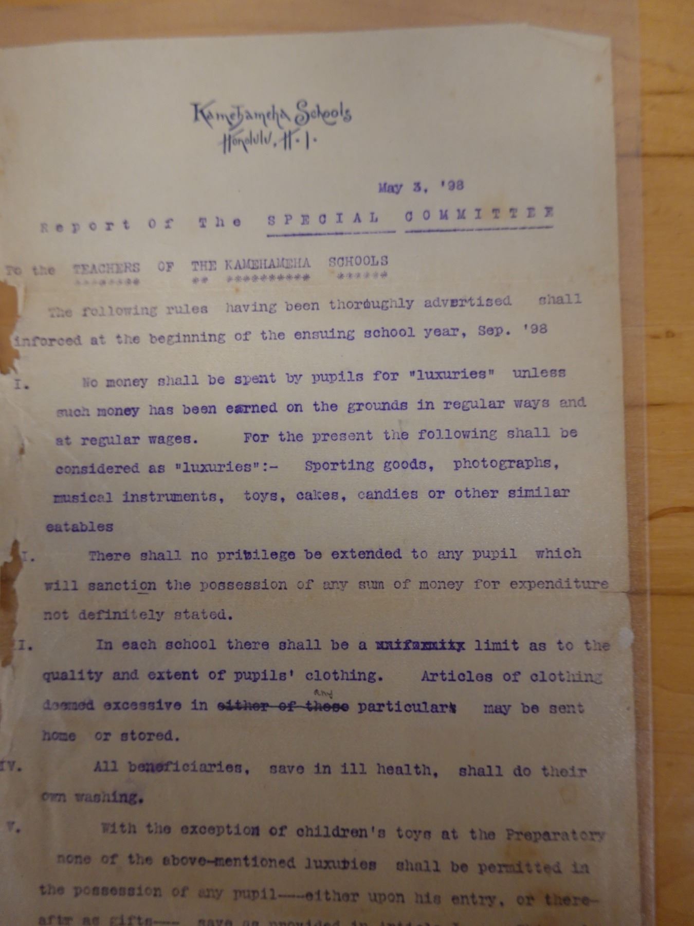 Kamehameha Schools Reports of the Special Committee of Teachers Dated 5/3/1989, 8.5" x 10"