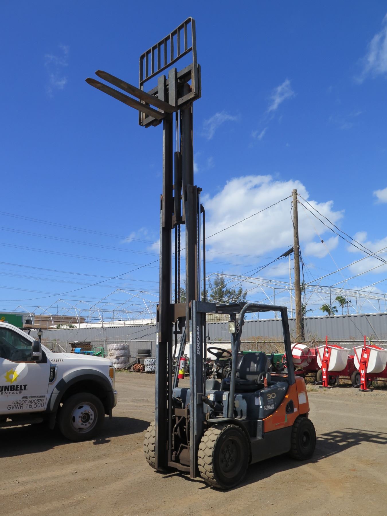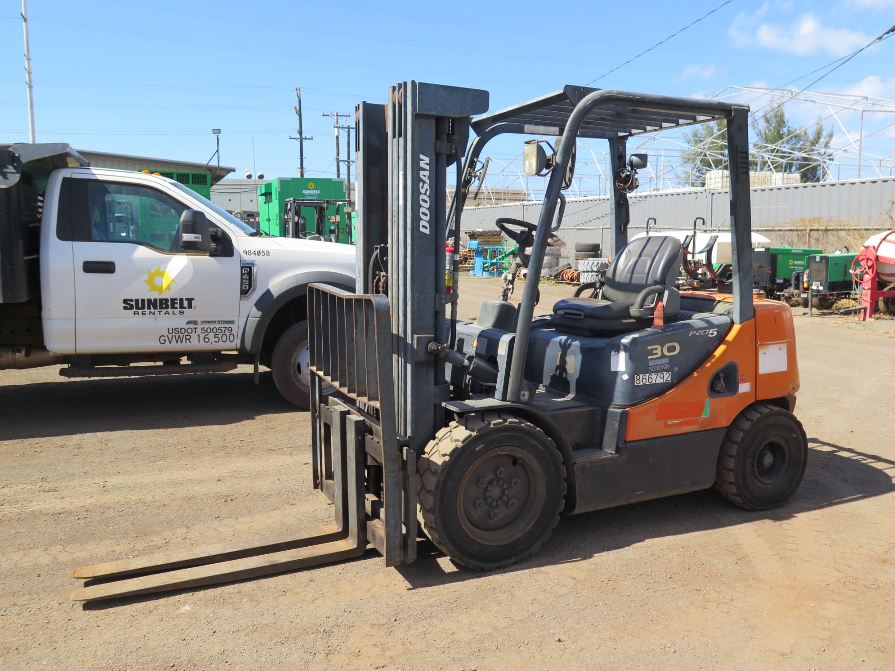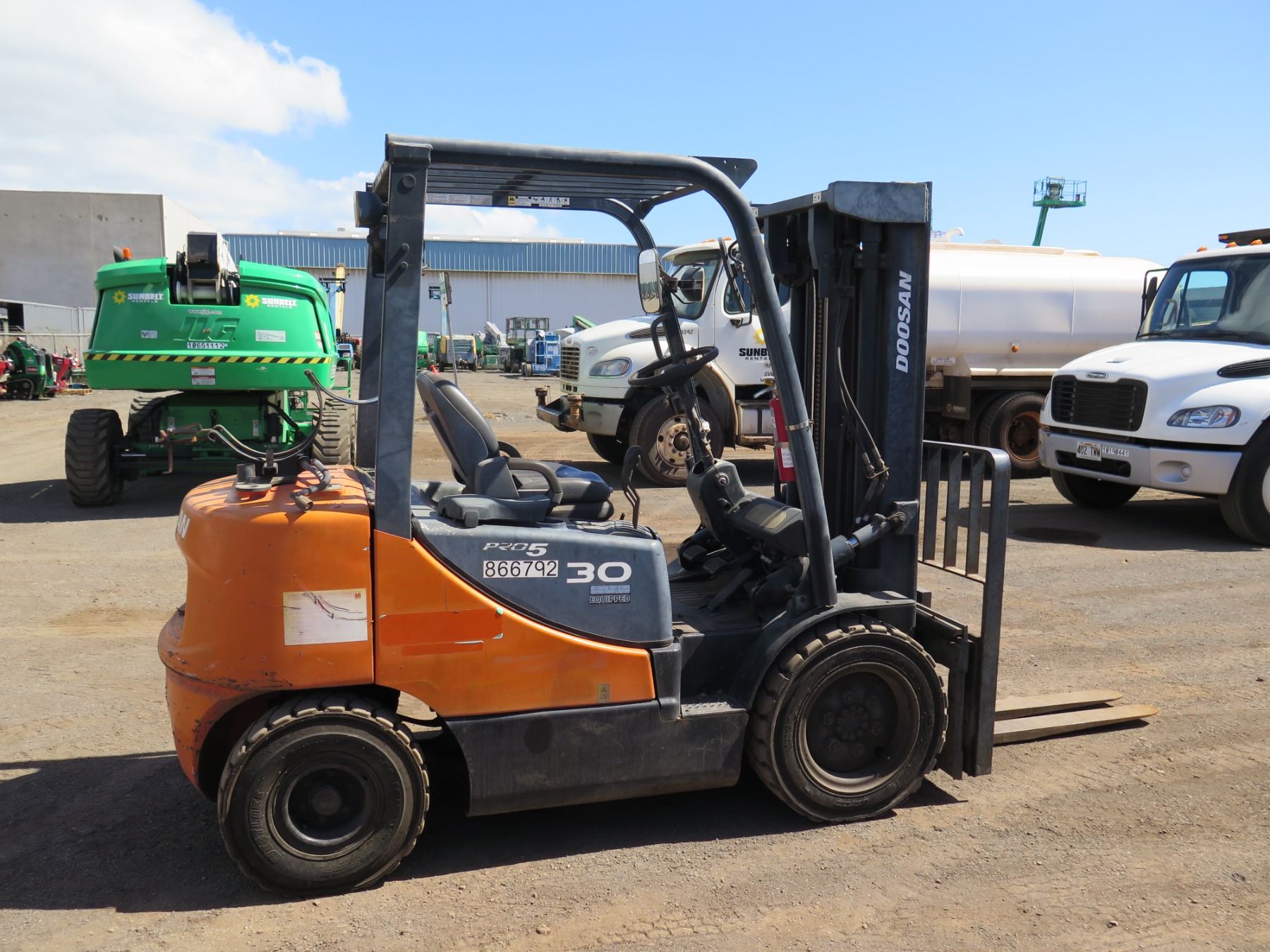 2014 Doosan G30E-5 Forklift Needs Repair (Starts & Runs). Does not drive forward or backward. Deficiencies may exist that are not listed in the item description. The absence of any deficiencies does not mean that none exist. All items are being sold "As Is" with no express or implied warranty of any kind.