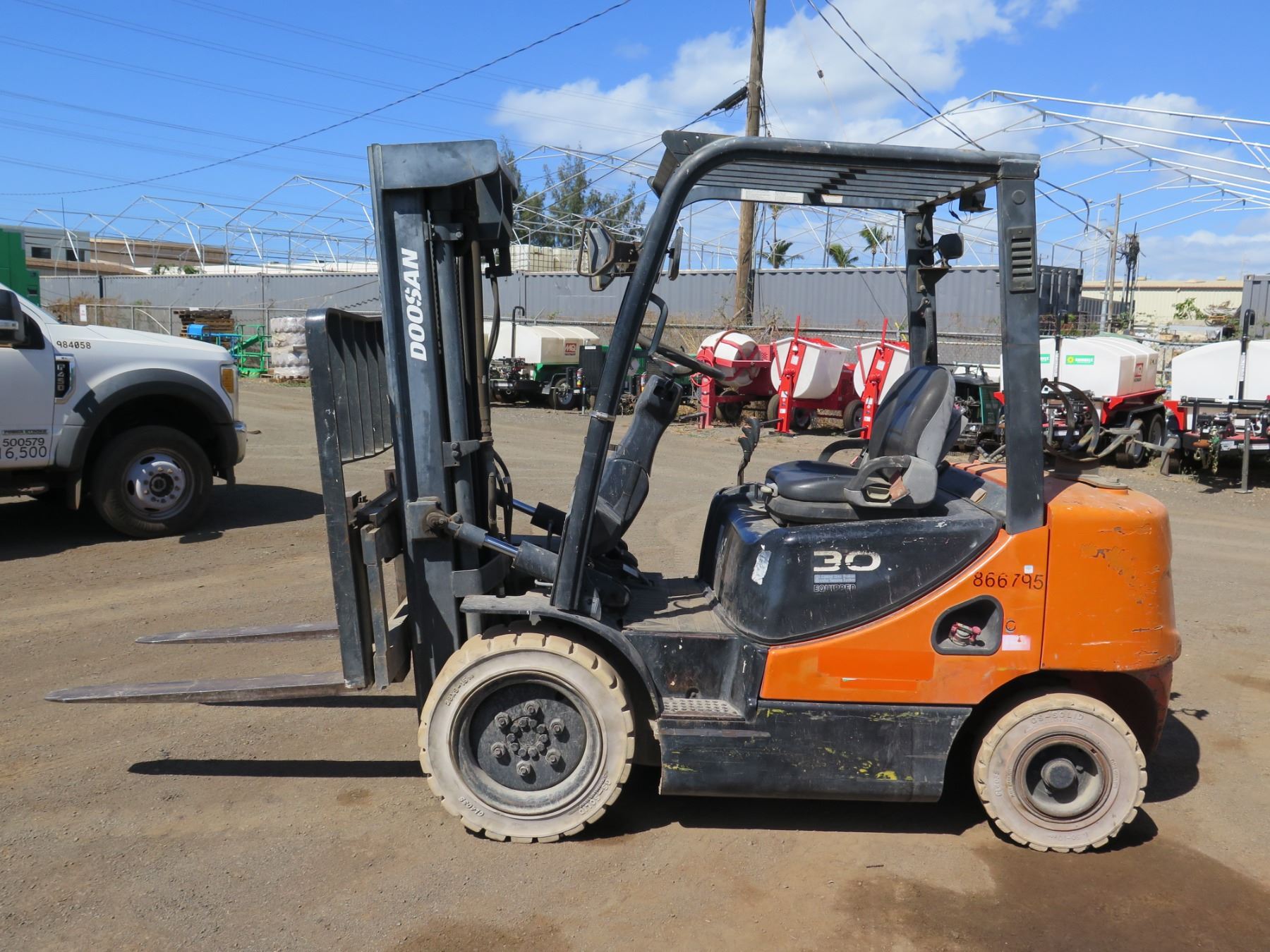 2014 Doosan G30E-5 Forklift. Starts & Runs - See Video. Deficiencies may exist that are not listed in the item description. The absence of any deficiencies does not mean that none exist. All items are being sold "As Is" with no express or implied warranty of any kind.
