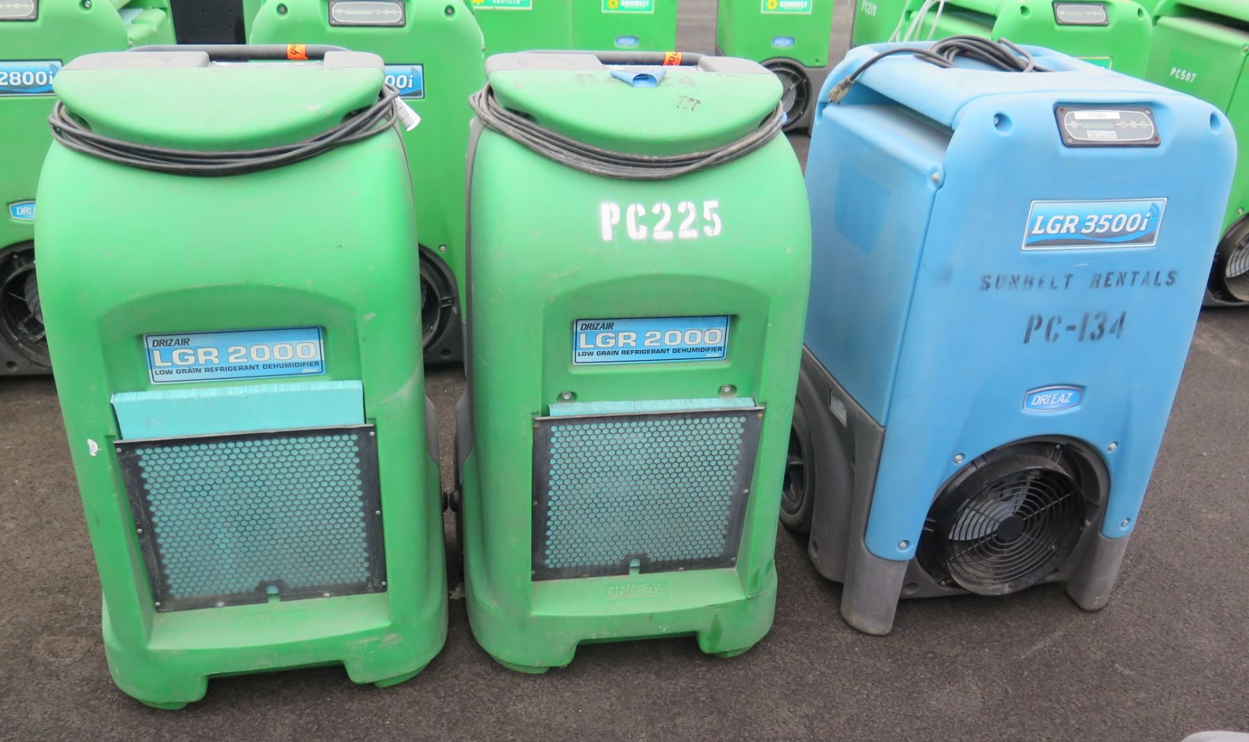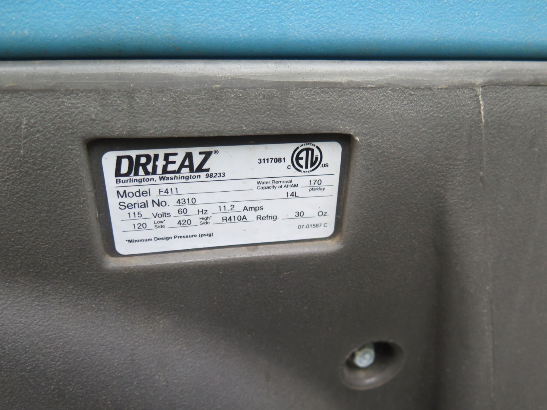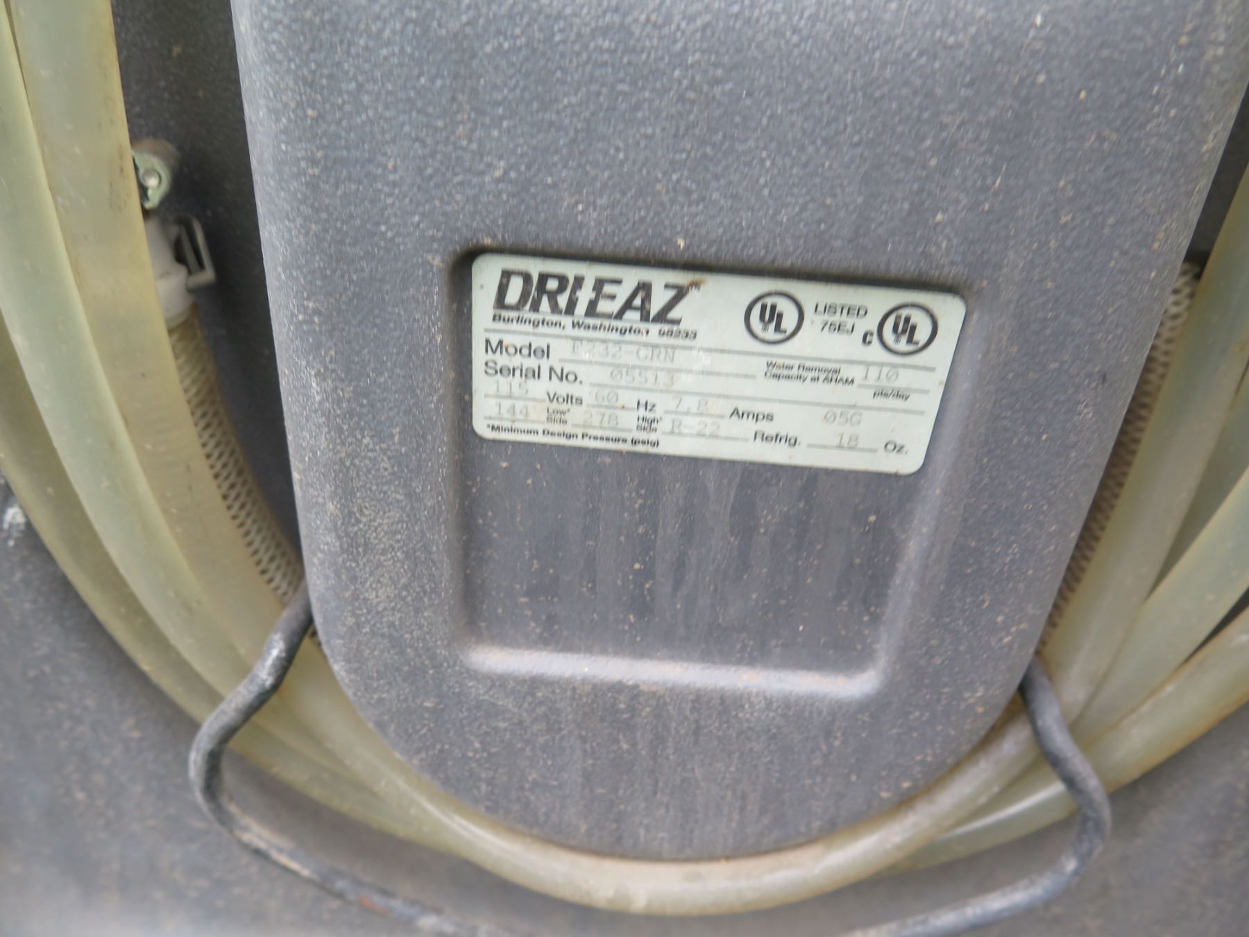 Qty 3 Dri-EAZ Industrial Dehumidifiers: 2 @ model F232-GRN & 1 model F411, Needs Repair. Seller reports that these turn on and have the appearance of working, but do not seem to remove moisture out of the air efficiently after running for 45 minutes to an hour.