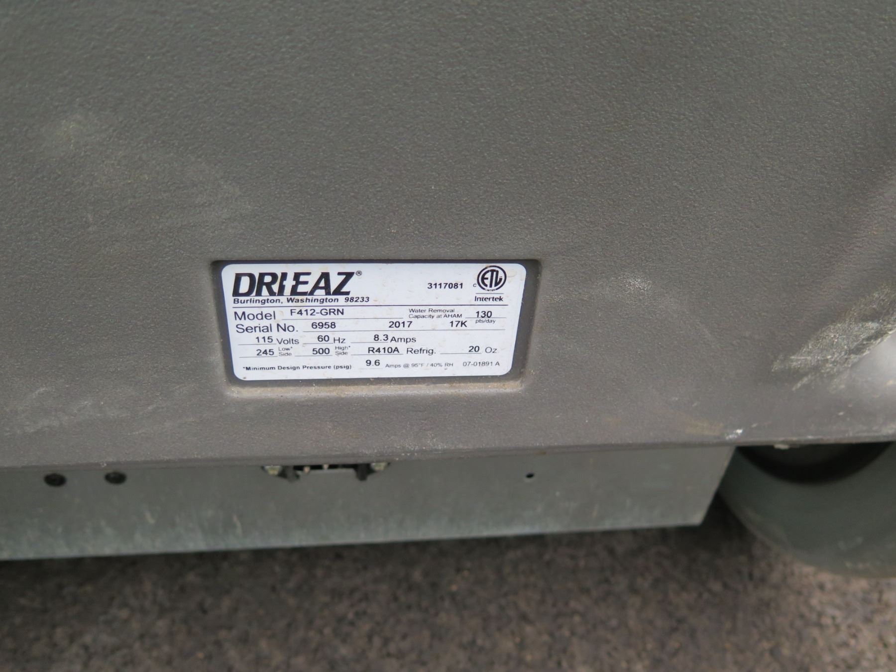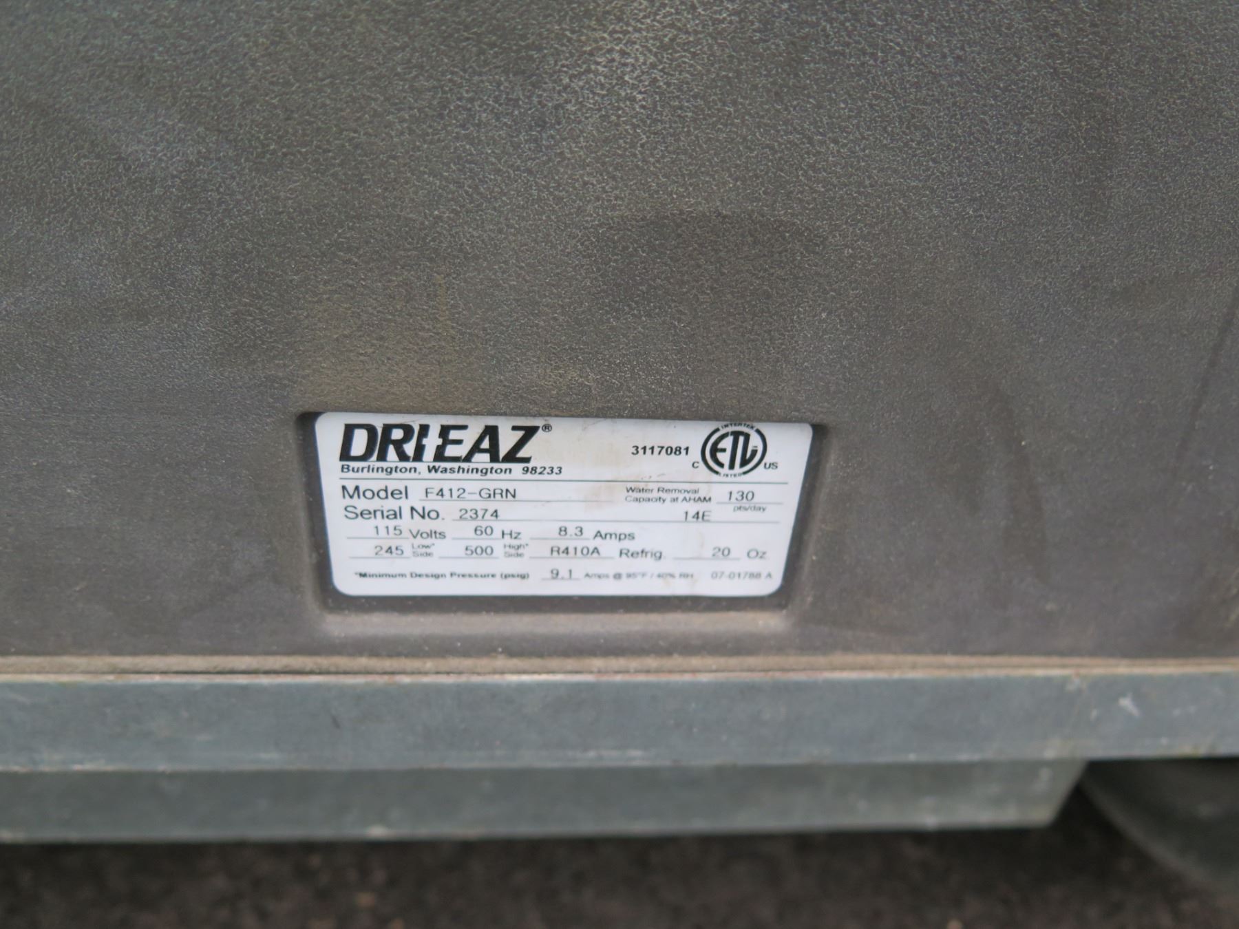 Qty 4 Dri-EAZ Model F412-GRN Industrial Dehumidifiers, Needs Repair.