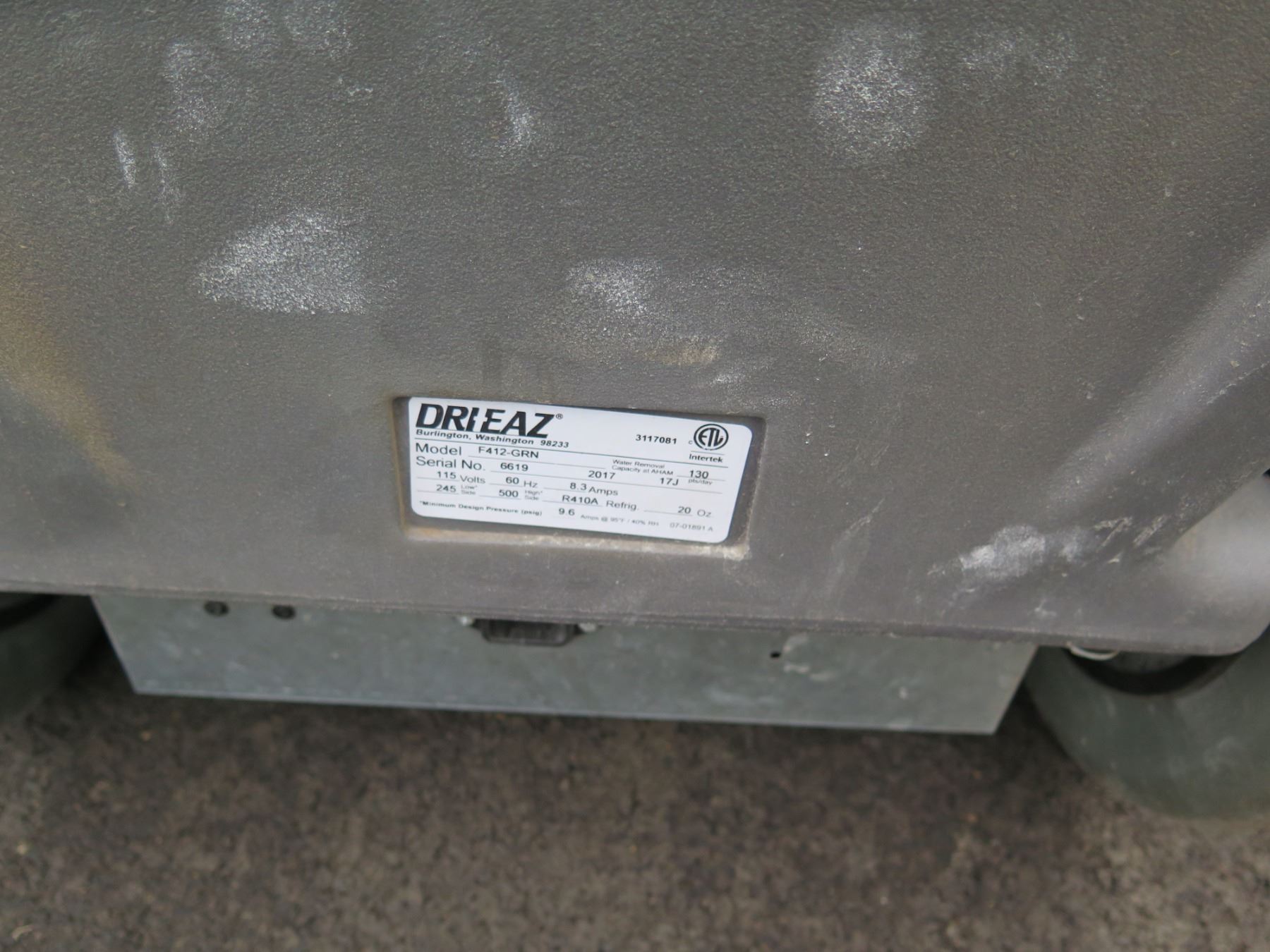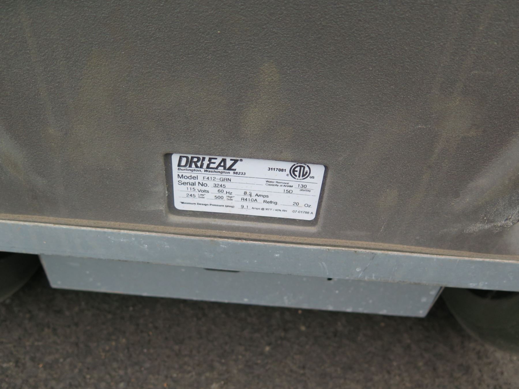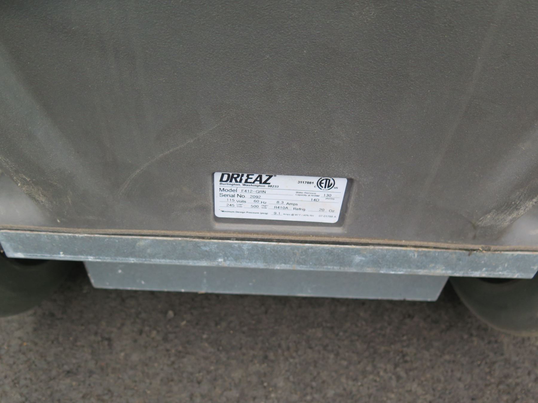 Qty 5 Dri-EAZ Model F412-GRN Industrial Dehumidifiers, Needs Repair. Seller reports that these turn on and have the appearance of working, but do not seem to remove moisture out of the air efficiently after running for 45 minutes to an hour.