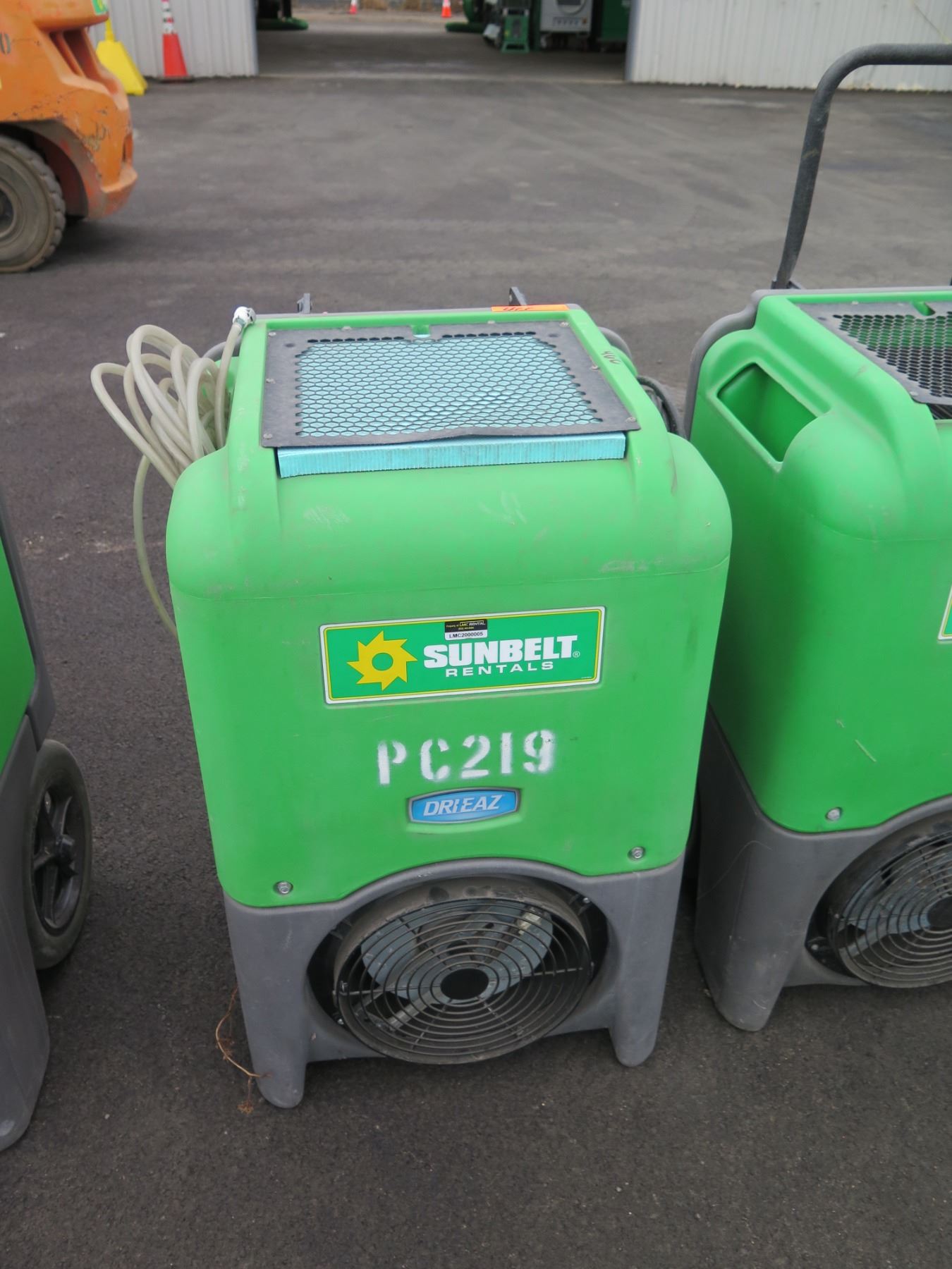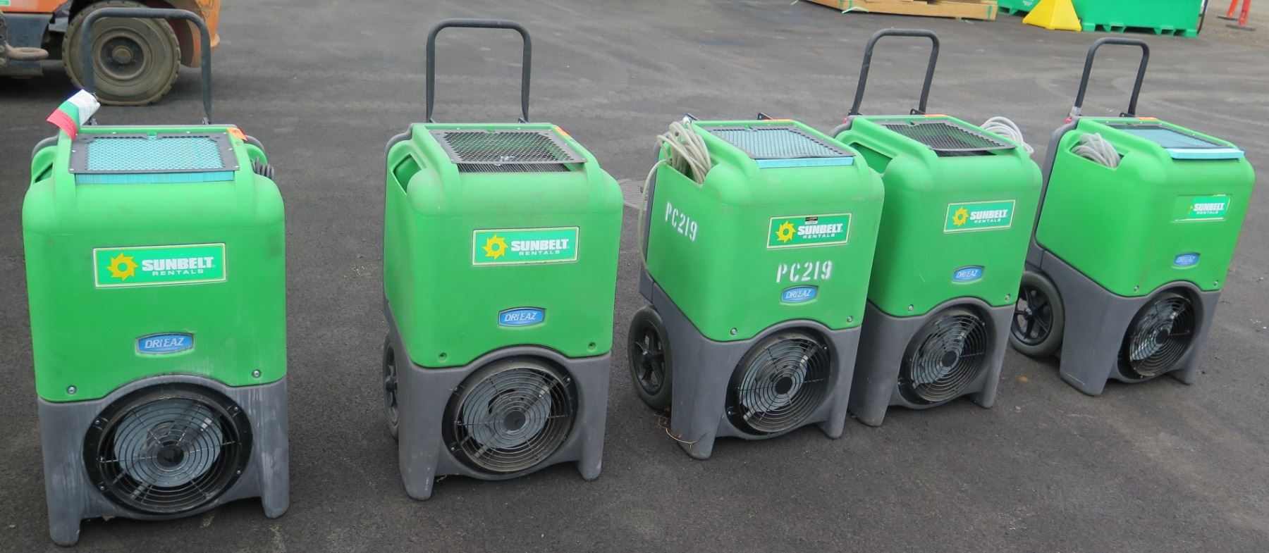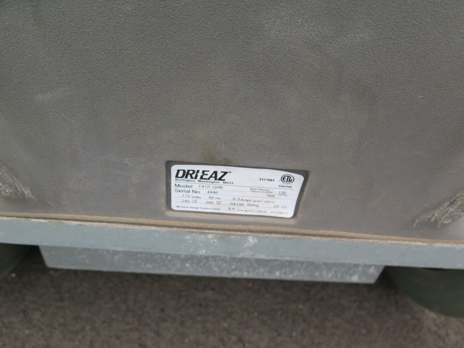 Qty 5 Dri-EAZ Model F412-GRN Industrial Dehumidifiers, Needs Repair. Seller reports that these turn on and have the appearance of working, but do not seem to remove moisture out of the air efficiently after running for 45 minutes to an hour.