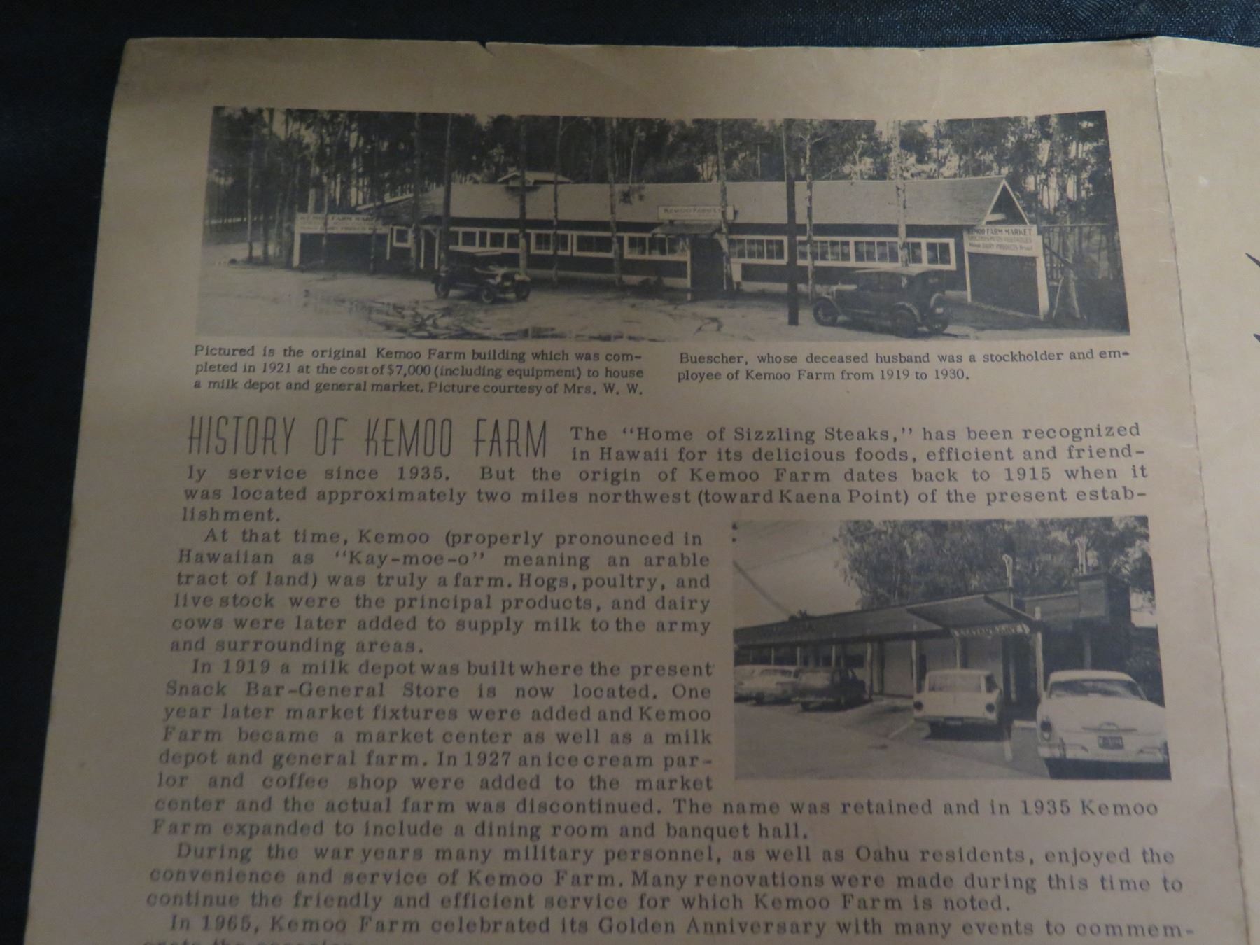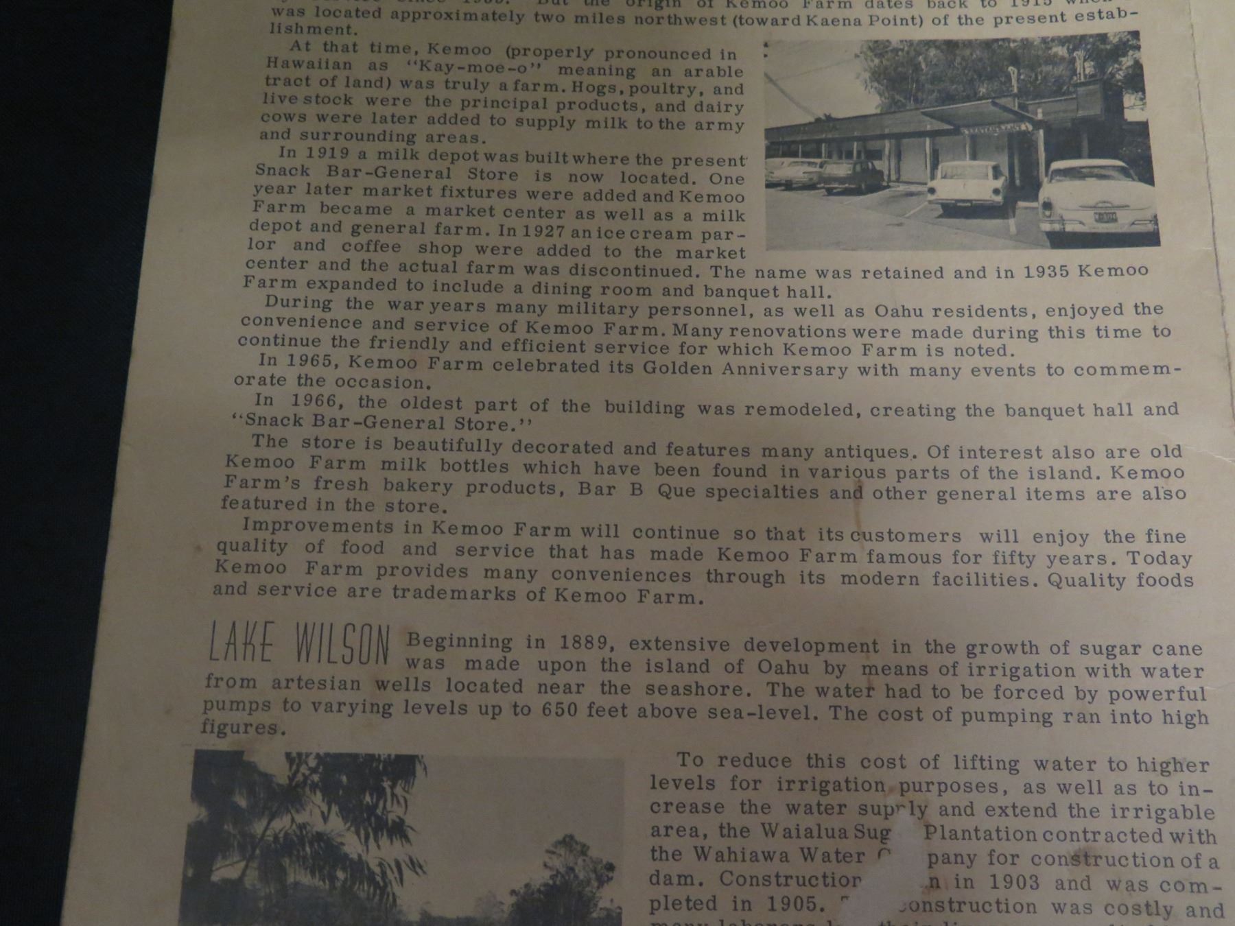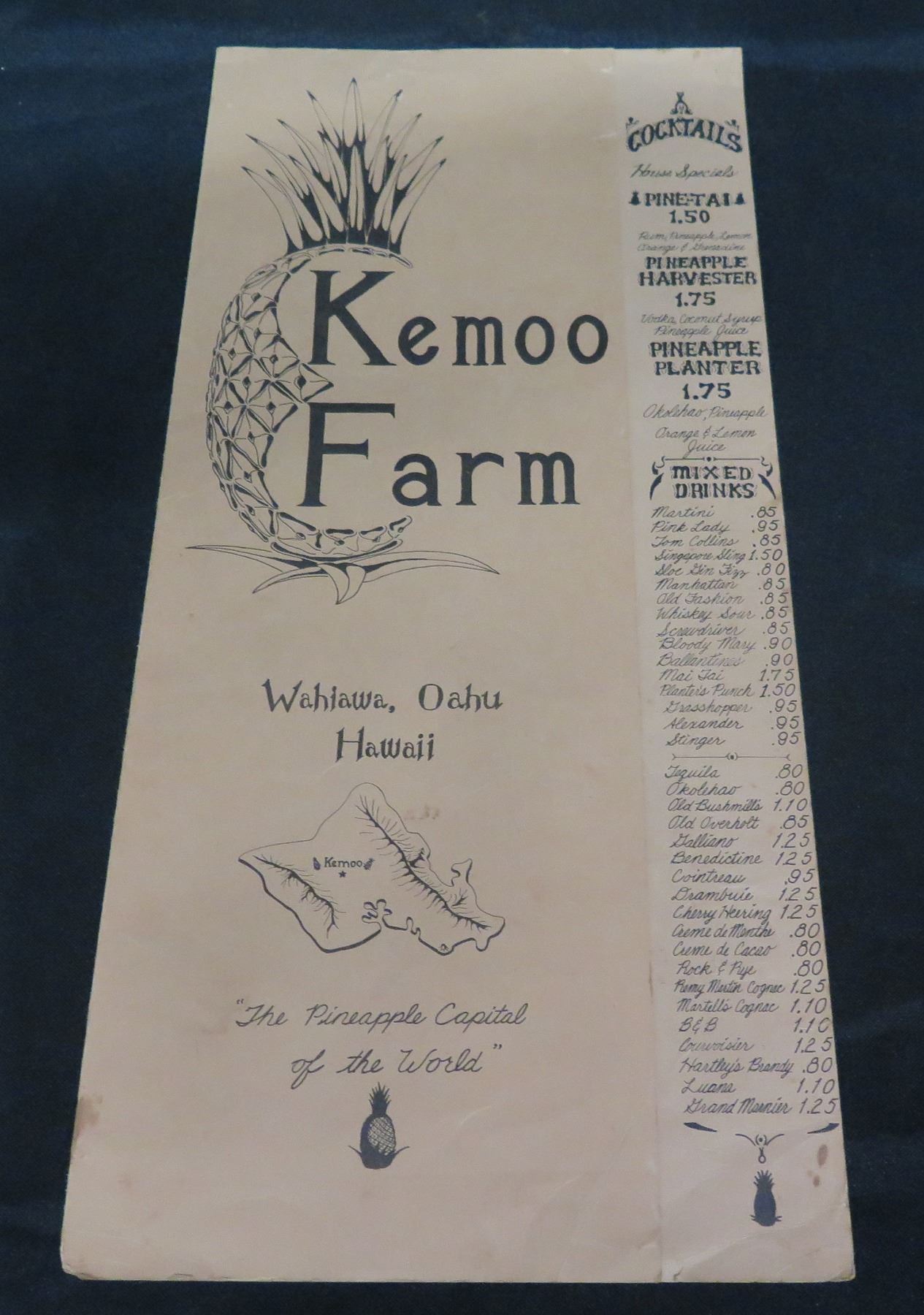 Kemoo Farm Wahiawa Pineapple Capital of the World Menu & Bio 13"x16"