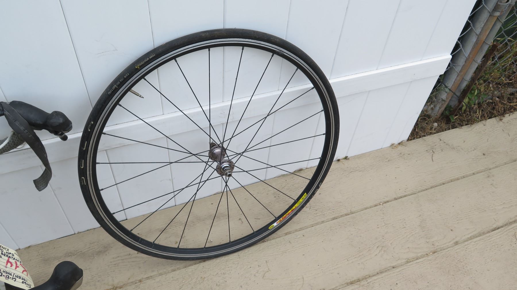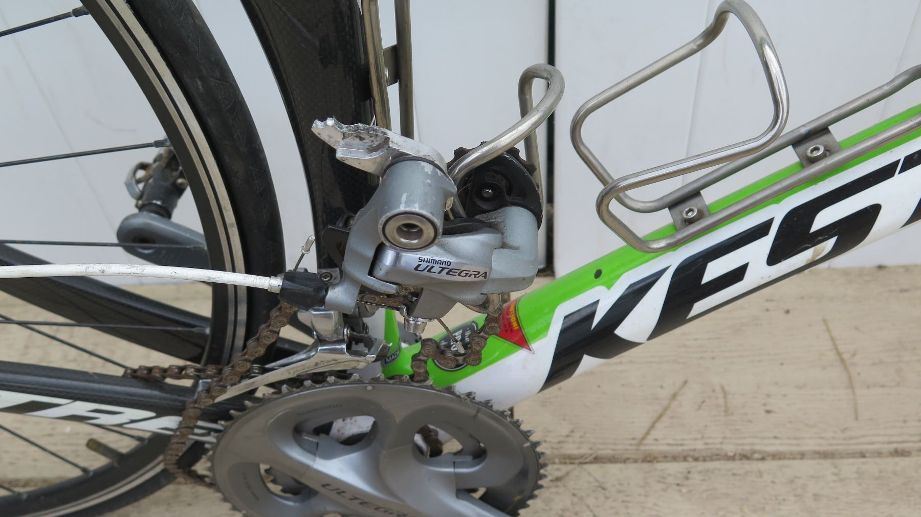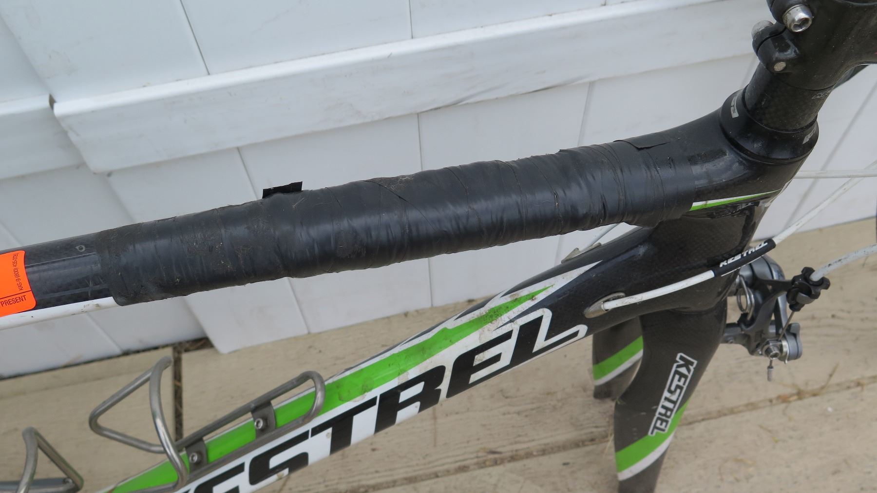 Kestrel Black Green Men's Bike w/ Front Wheel Removed.