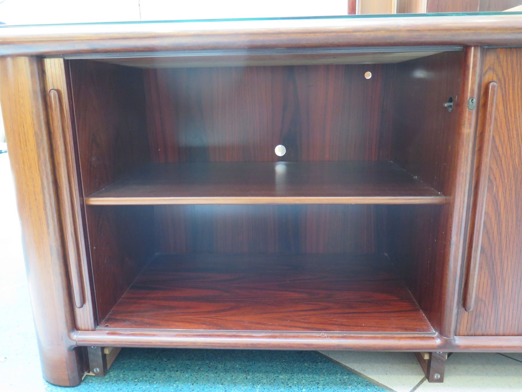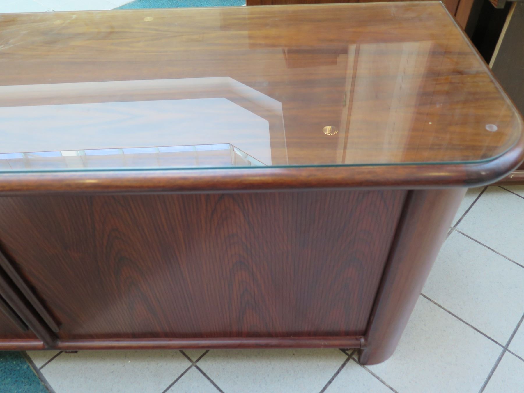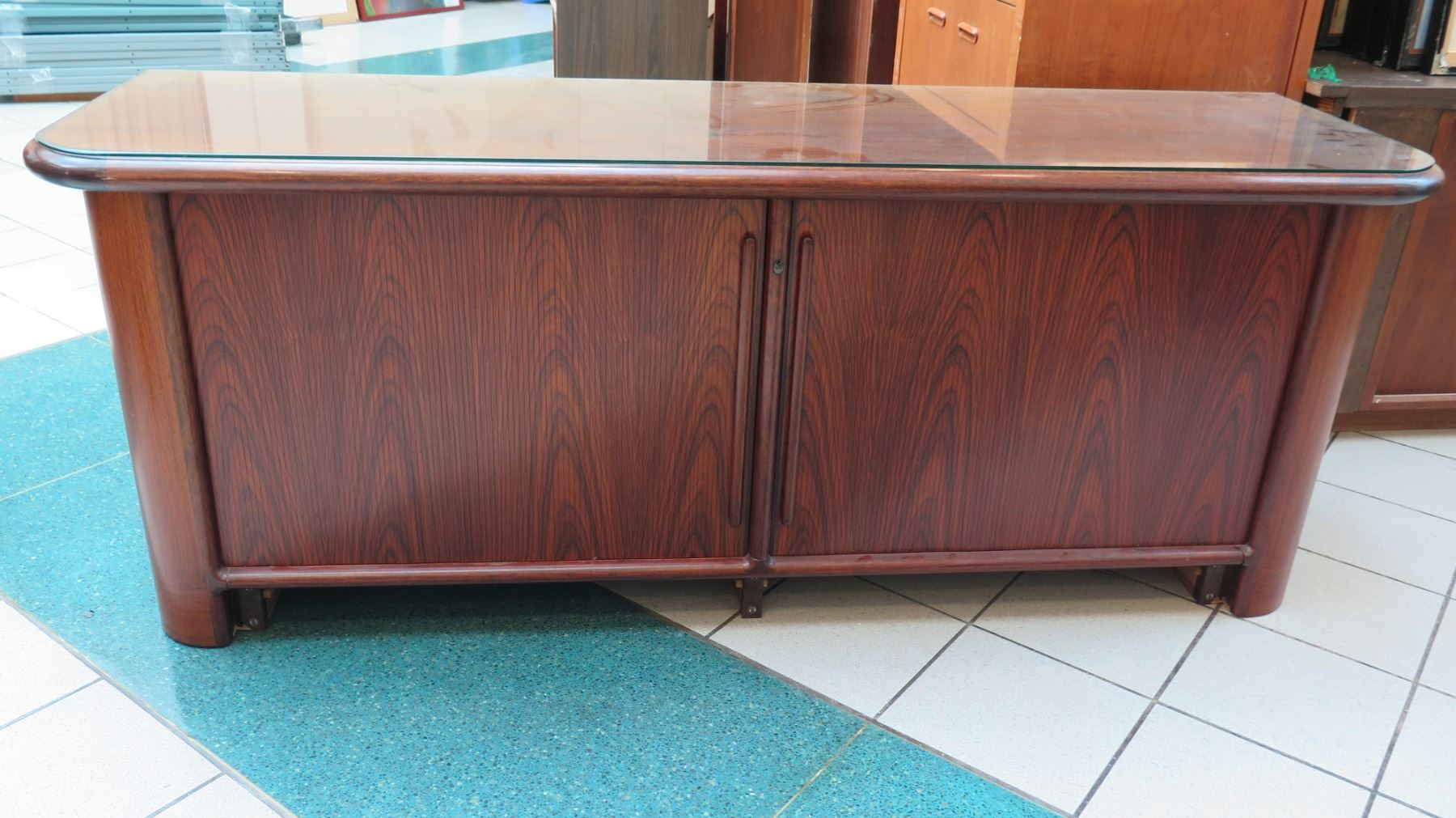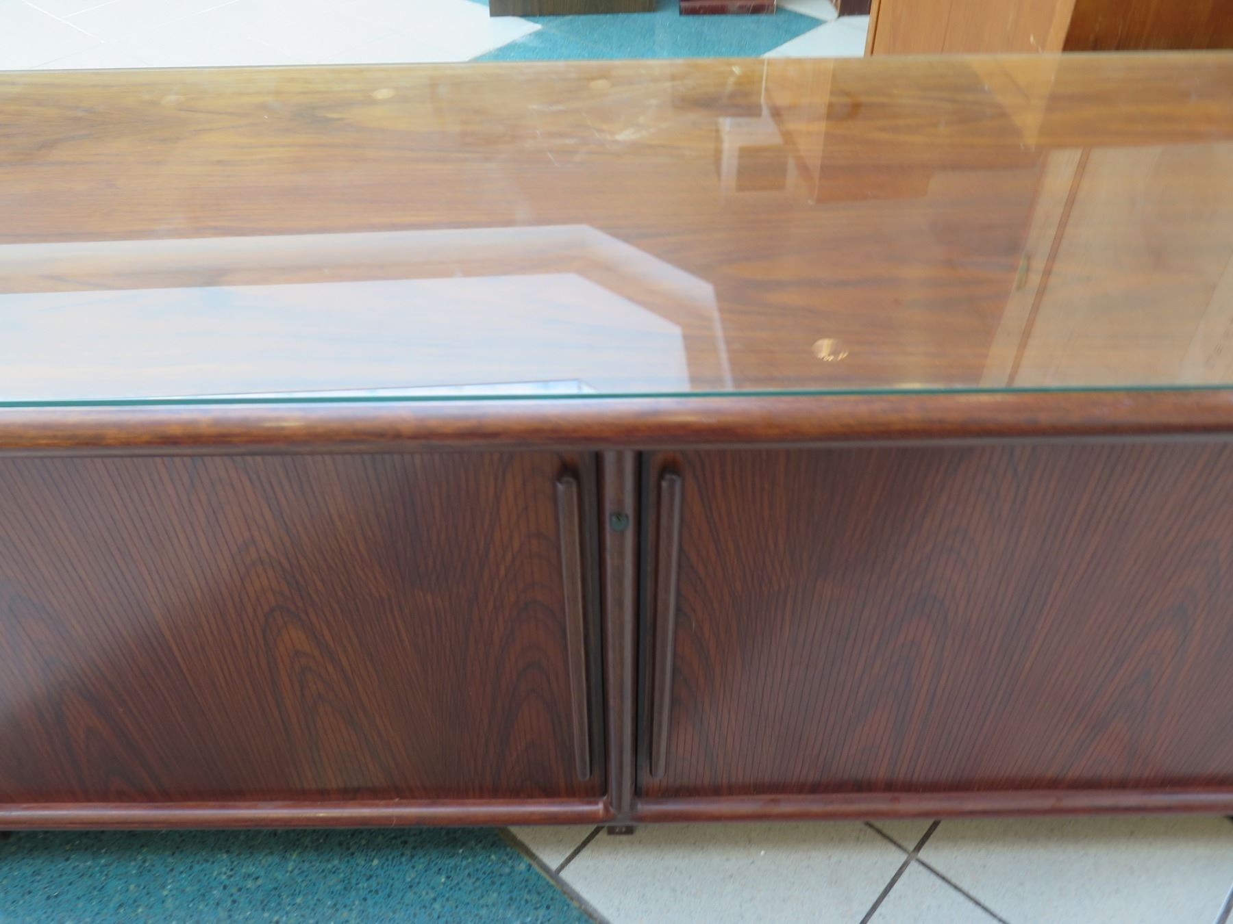 Kibaek Mobelfabrik Wooden Side Cabinet w/ Sliding Doors & Glass Top 77"x22"x30"