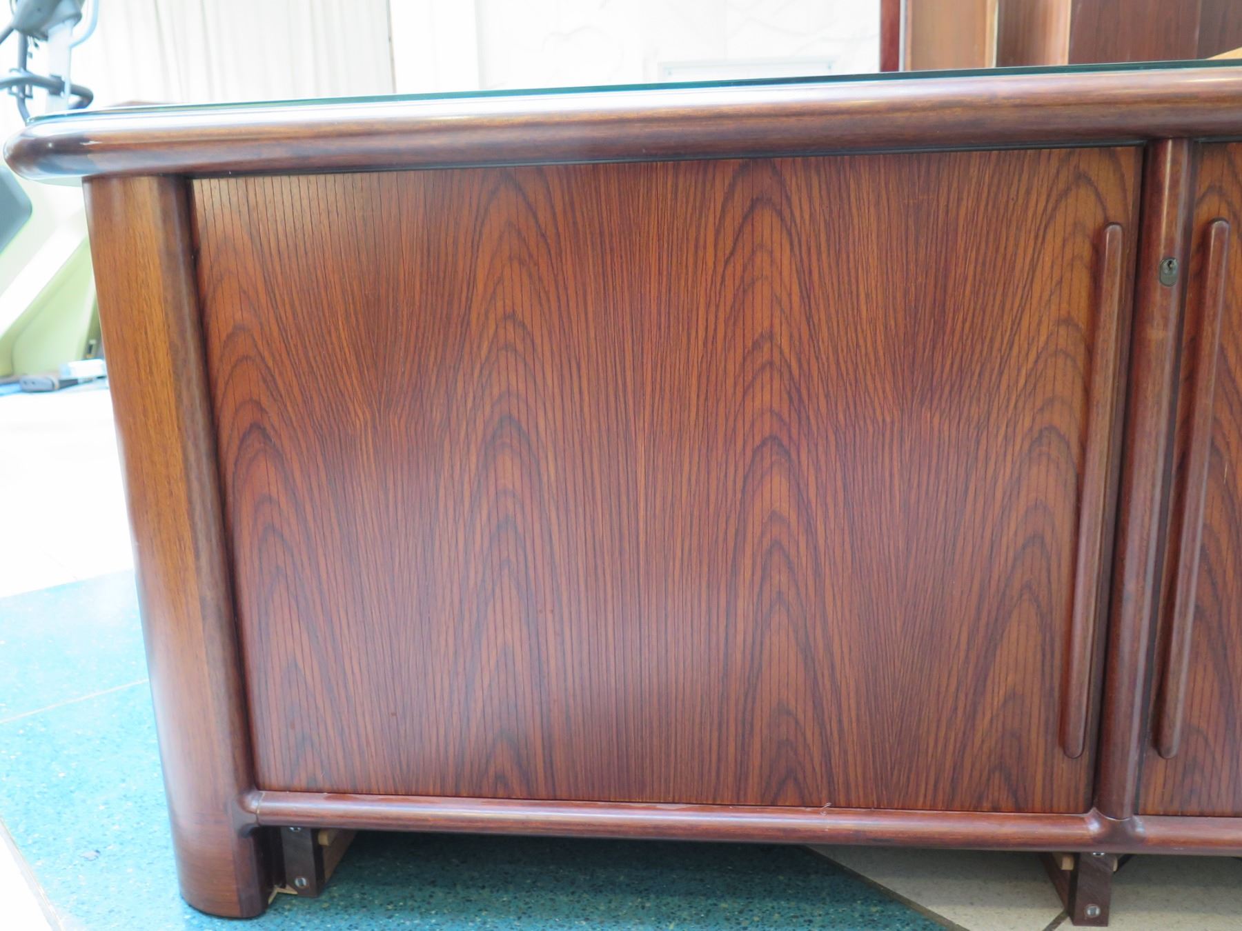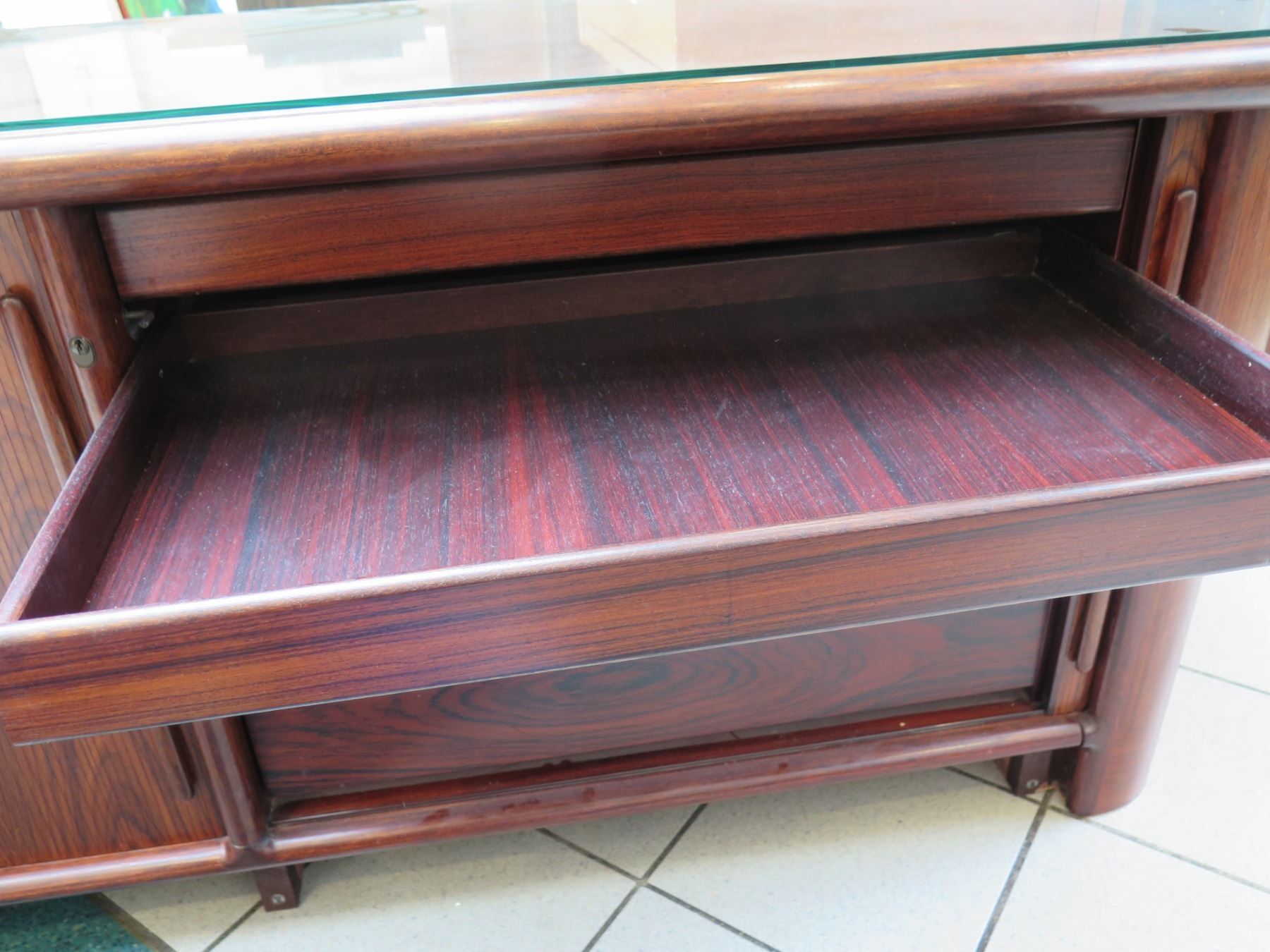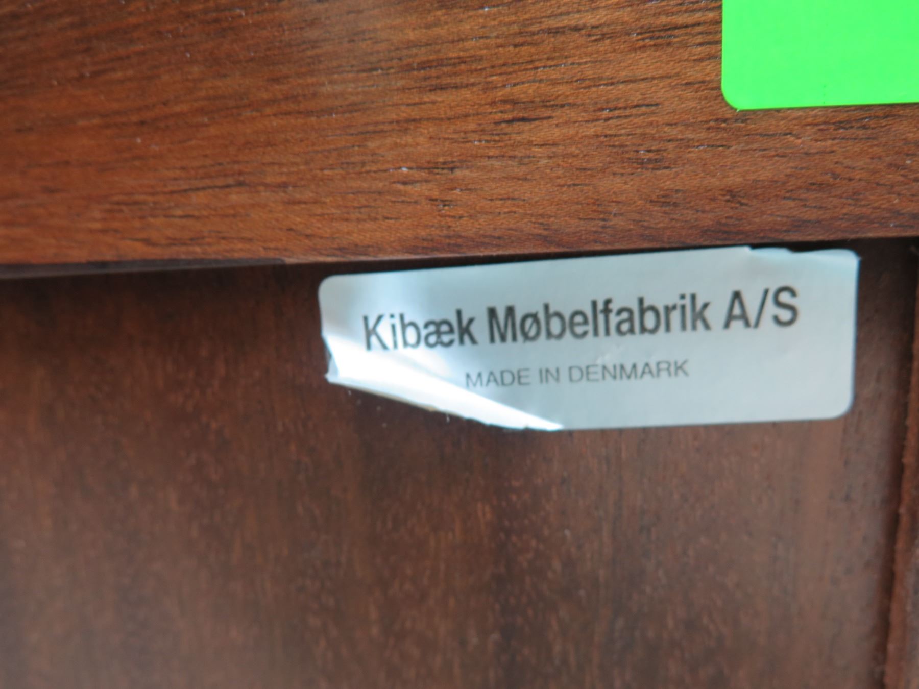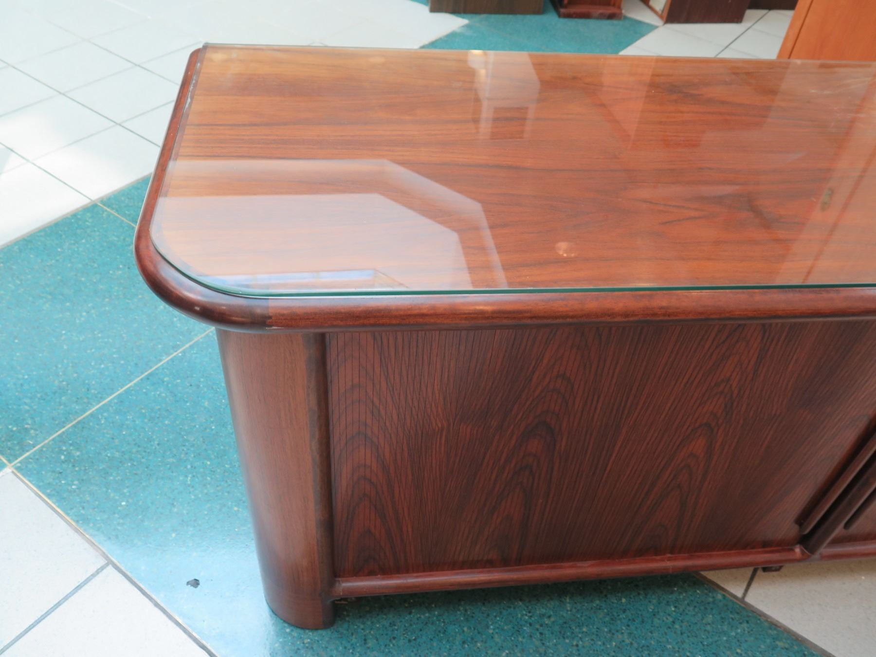 Kibaek Mobelfabrik Wooden Side Cabinet w/ Sliding Doors & Glass Top 77"x22"x30"