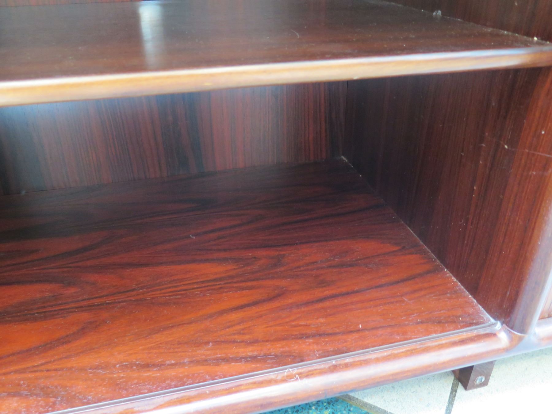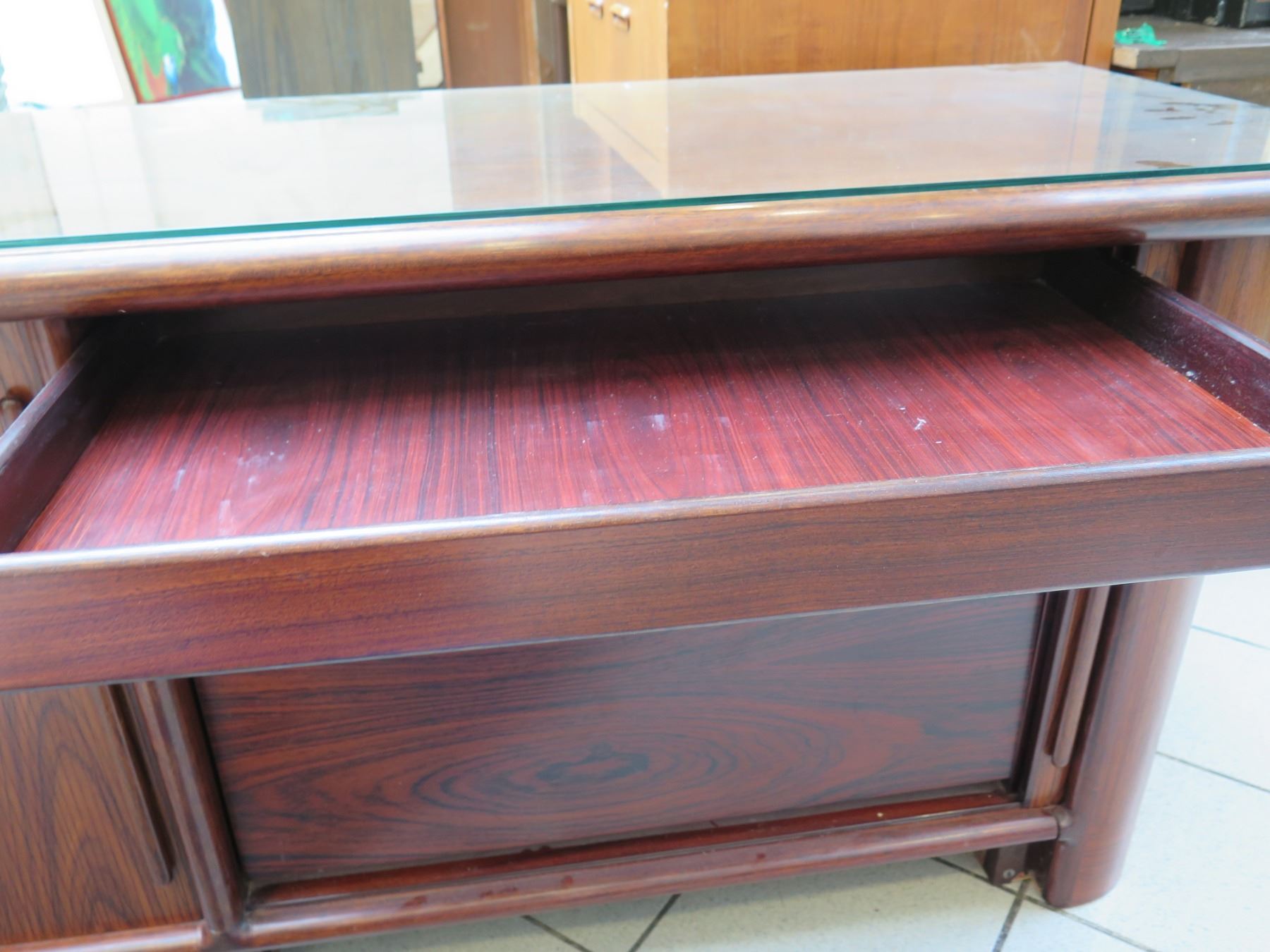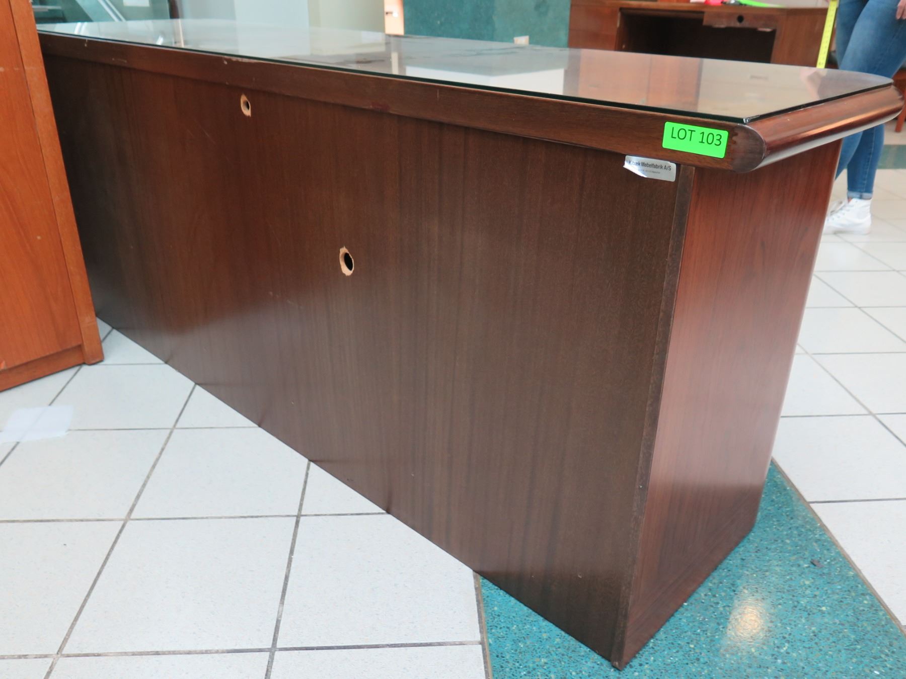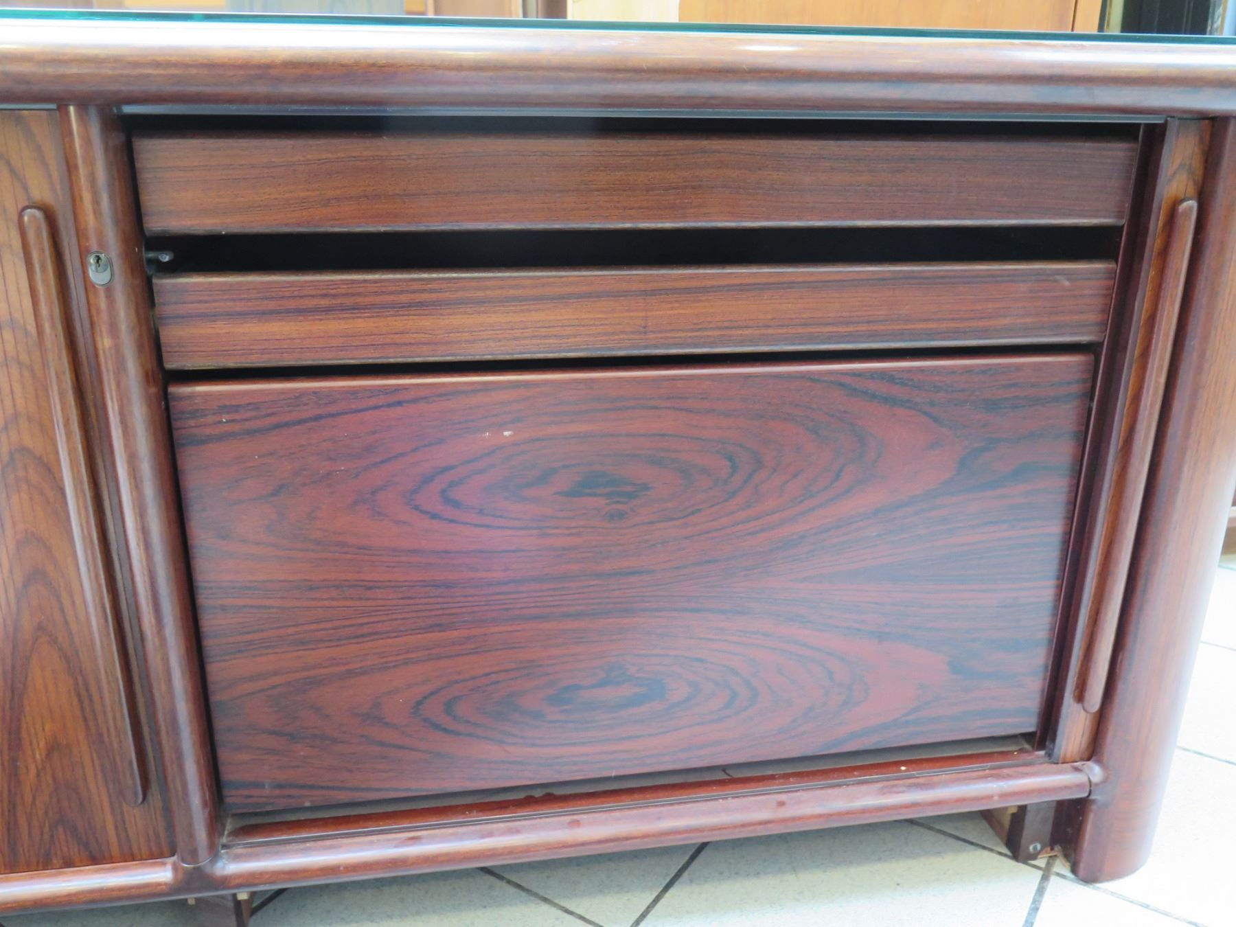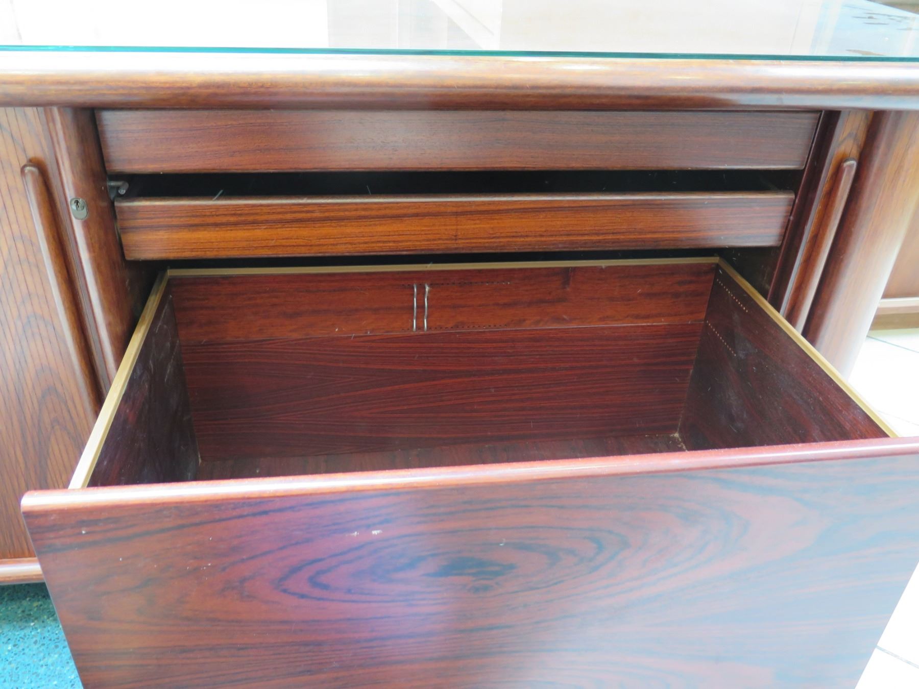 Kibaek Mobelfabrik Wooden Side Cabinet w/ Sliding Doors & Glass Top 77"x22"x30"