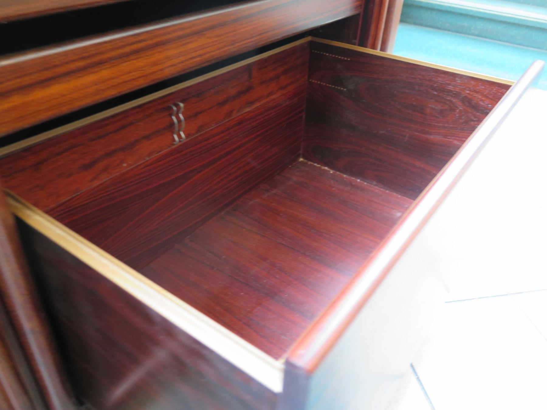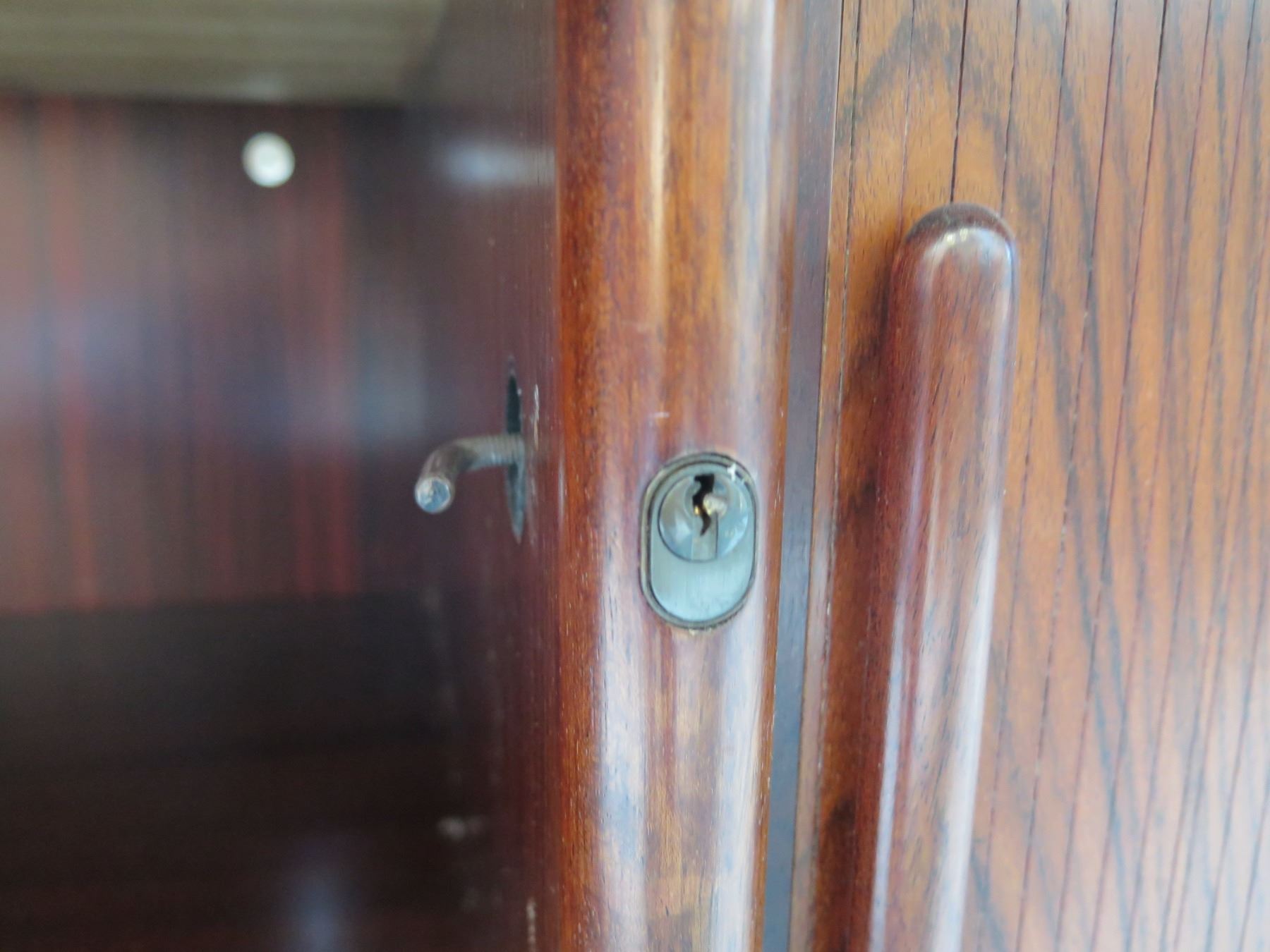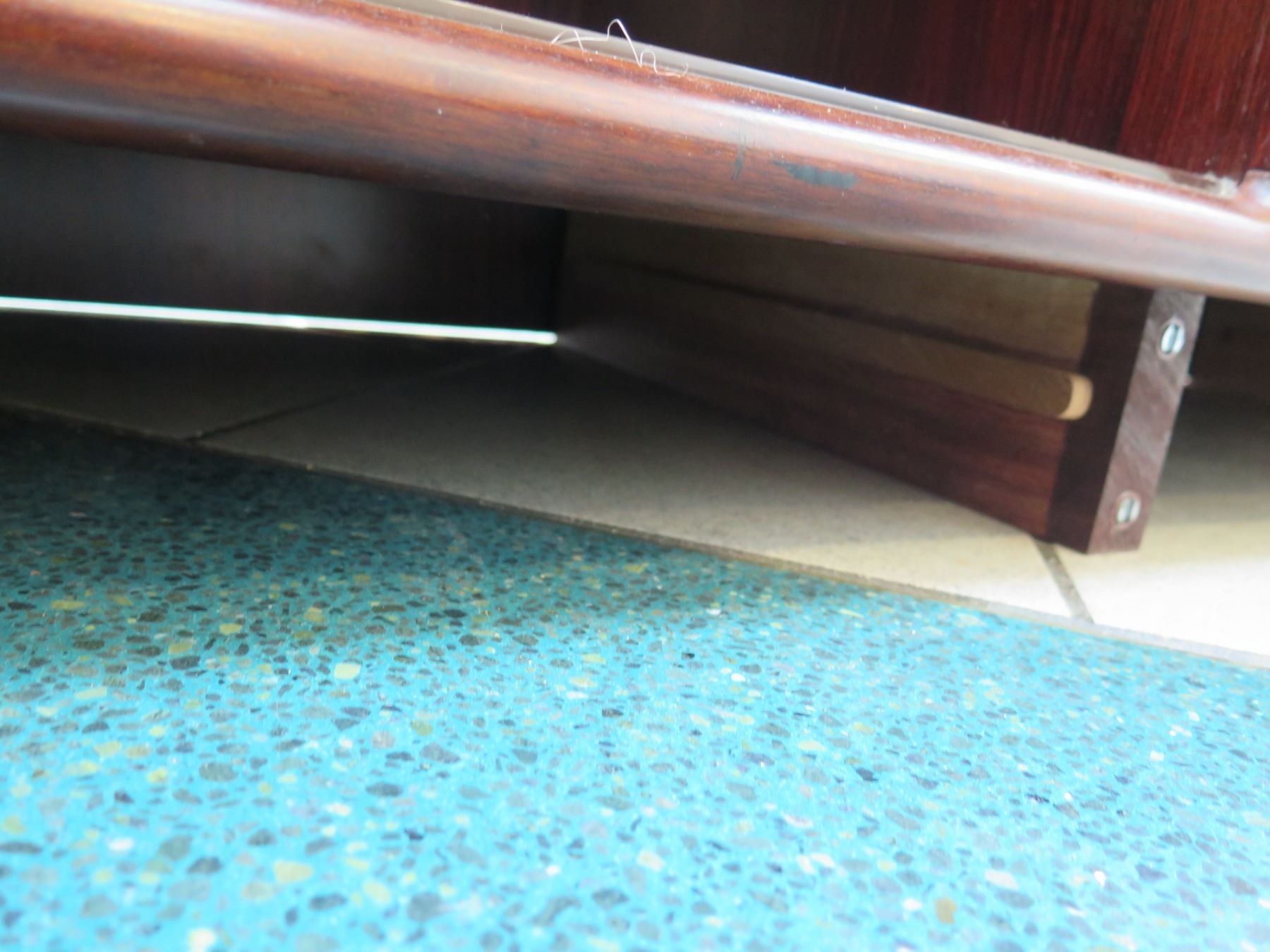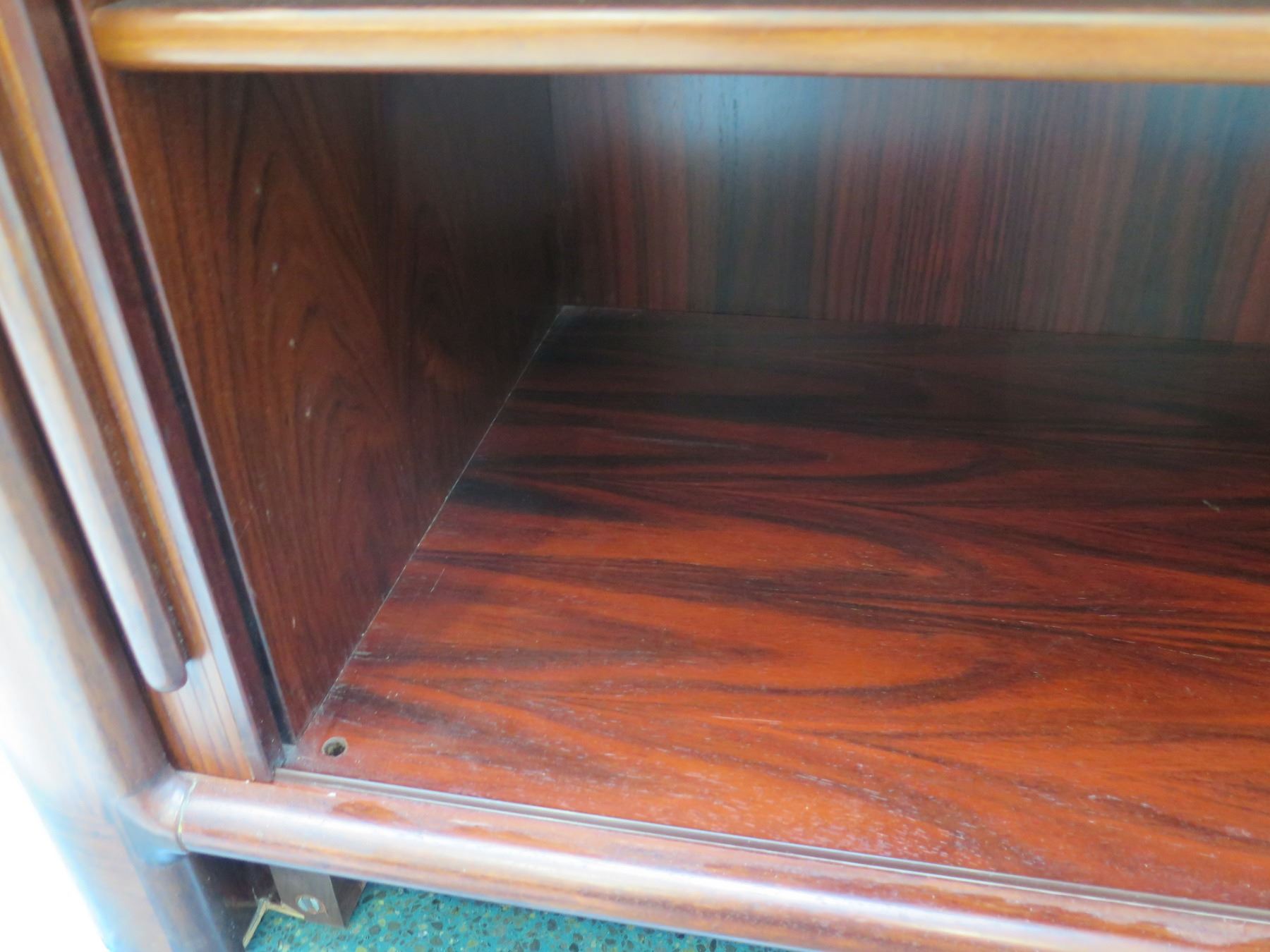 Kibaek Mobelfabrik Wooden Side Cabinet w/ Sliding Doors & Glass Top 77"x22"x30"