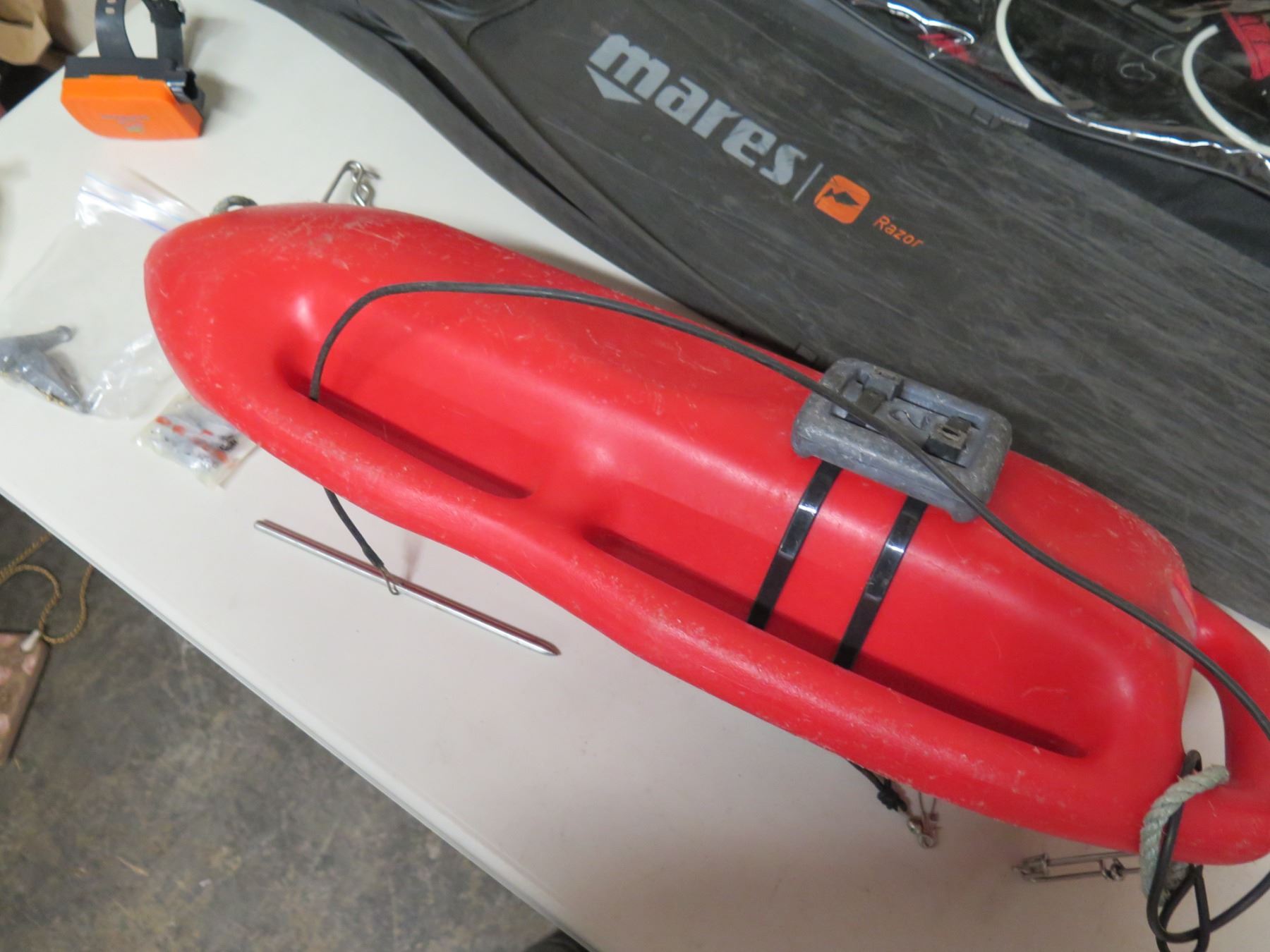 Kiefer Lifeguard Rescue Can, Mares Dive Fins, Cressi 2000HF Fins in Case, etc